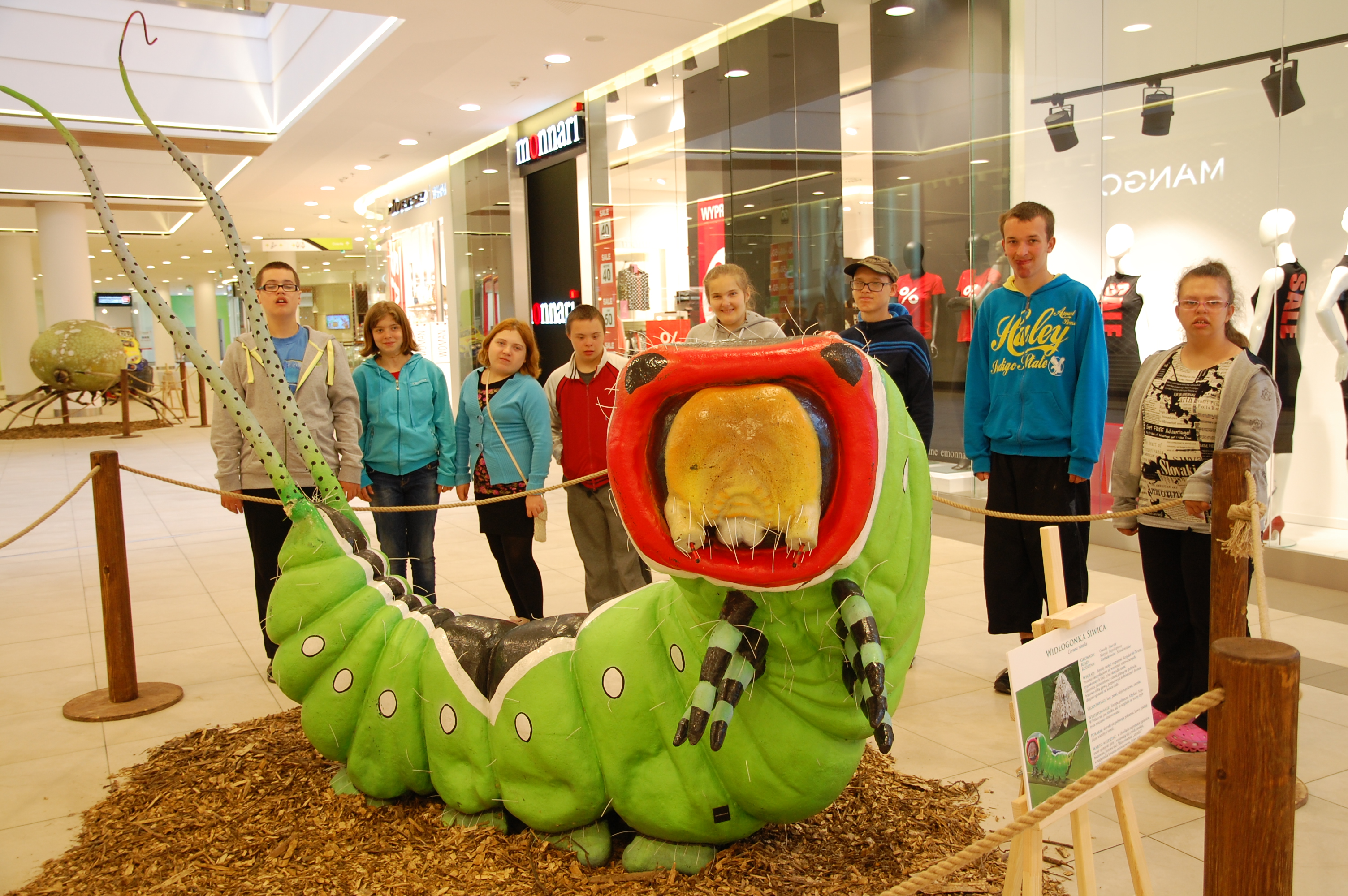 Wystawa gigantycznych owadów znajdująca się w Centrum „Ogrody”, przyciągnęła licznych odwiedzających. Byli nimi także uczniowie klasy II a i III c gimnazjum z e-t. Oko w oko stanęli z modelami różnych gatunków owadów. Zapoznali z szczegółami budowy anatomicznej, dowiedzieli się, jaki jest ich tryb życia. Najdłuższy owad na wystawie ma aż 4,5 metra, a najwyższy- 2,3 m. Ogromna biedronka z dużą ilością czarnych kropek zrobiła największe wrażenie na odwiedzających. A jakie były inne owady? Zdjęcia pokażą niektóre z nich.