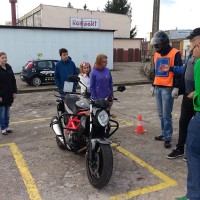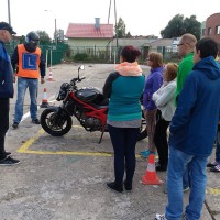Dnia 29 września wychowankowie Grup Wychowawczych odwiedzili Ośrodek Szkolenia Kierowców w Elblągu. Na wstępie instruktor przedstawił, jak obecnie wygląda egzamin na prawo jazdy różnych kategorii, jakie trzeba przejść badania i jakie są wymagania wobec przyszłych kierowców. Podczas zajęć młodzież mogła również uczestniczyć w pokazie pojazdów służących do szkolenia kandydatów na kierowców oraz obserwować szkolące się osoby w trakcie instruktażu. Największe zainteresowanie i emocje wśród uczniów wzbudził pokaz motoroweru, gdyż każdy z uczestników mógł spróbować swoich sił i zasiąść za jego kierownicą. Prowadzący przeprowadził krótki instruktaż, po czym odbyła się próbna jazda na placu manewrowym pod czujną opieką instruktora. Celem zajęć było wdrażanie nawyków i umiejętności związanych z bezpiecznym poruszaniu się po drodze, kształtowanie świadomego uczestnictwa w ruchu drogowym oraz uświadomienie obowiązku stosowania się do przepisów prawa ruchu drogowego. Uczniowie powtórzyli i poszerzyli wiadomości dotyczące przepisów, zwiększyli również wiedzę na temat zagrożeń, jakie mogą występować na drodze.