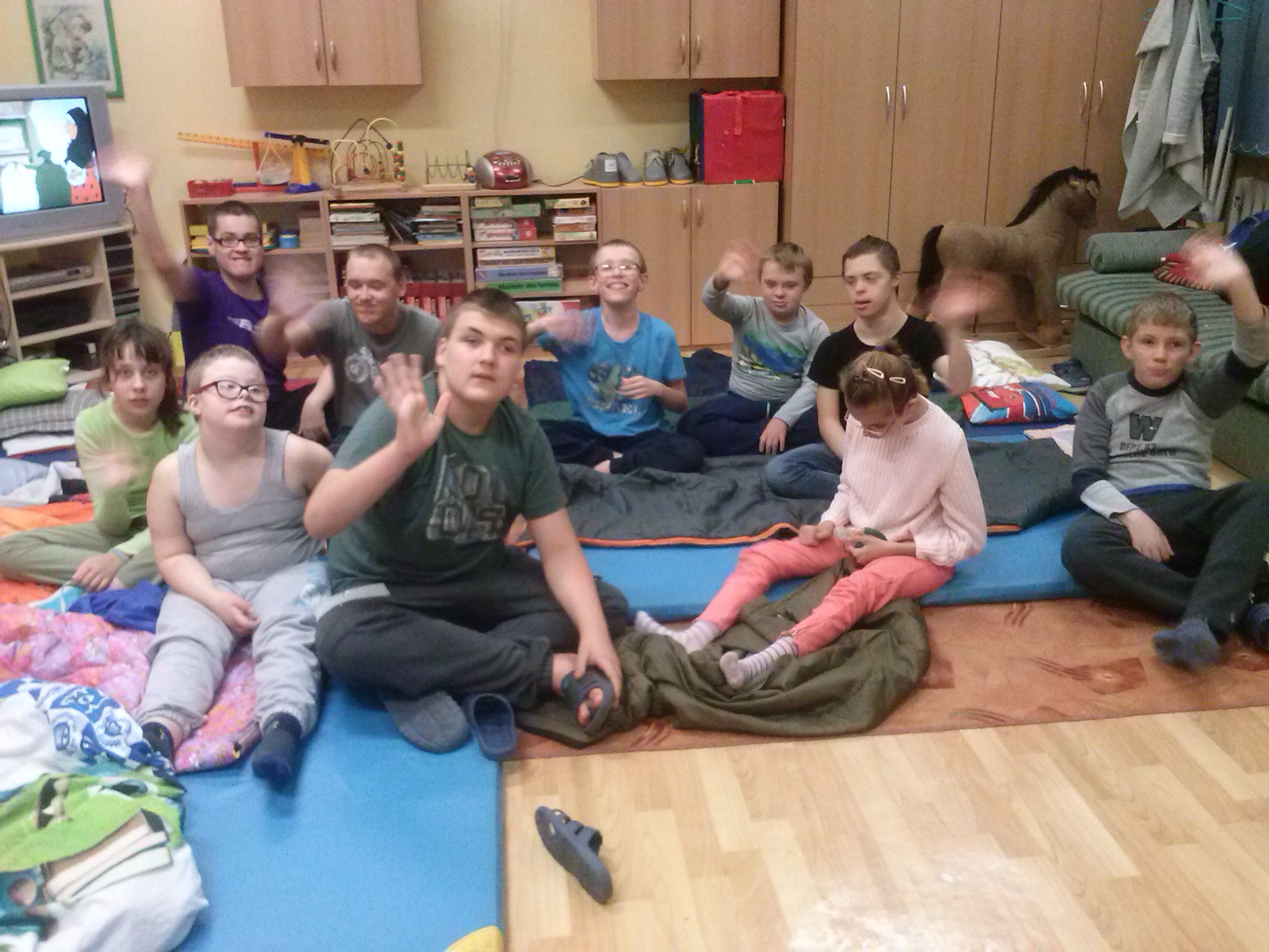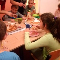Szkoła to nie tylko nauka i obowiązki. To również chwile wytchnienia, odpoczynku i wspólnej zabawy z kolegami. Przekonali się o tym uczniowie, którzy już kolejny raz spotkali się na tak lubianym, zarówno przez siebie, jak i rodziców, wspólnym nocowaniu właśnie w szkole. Tym razem obchodziliśmy Dzień Chłopaka. Były ciekawe rozmowy, zabawy, konkursy, a także niespodzianka, którą miałyśmy okazję zorganizować naszym podopiecznym dzięki uprzejmości Pizzerii Tattoo. Właściciele restauracji, w wyjątkowo atrakcyjnej cenie, przywieźli na kolację pizzę. Smakowała wyśmienicie! Grono uczniów realizujących program ,,Szkoła drugim domem” powiększa się z miesiąca na miesiąc, a na kolejne spotkanie , tym razem z tańcami i wróżbami, zapraszamy jeszcze tych niezdecydowanych uczniów wraz z wychowawcami, już w listopadzie.