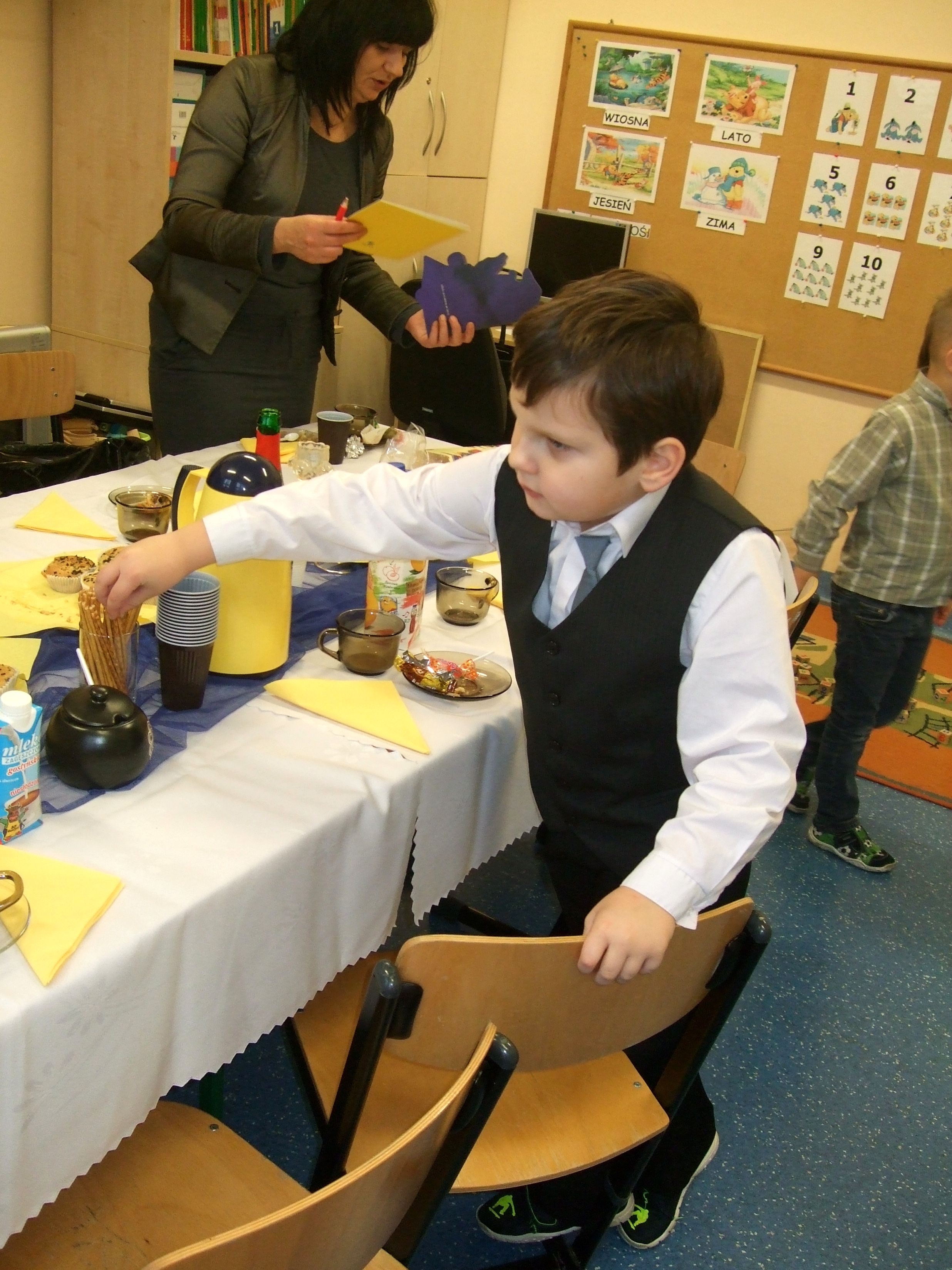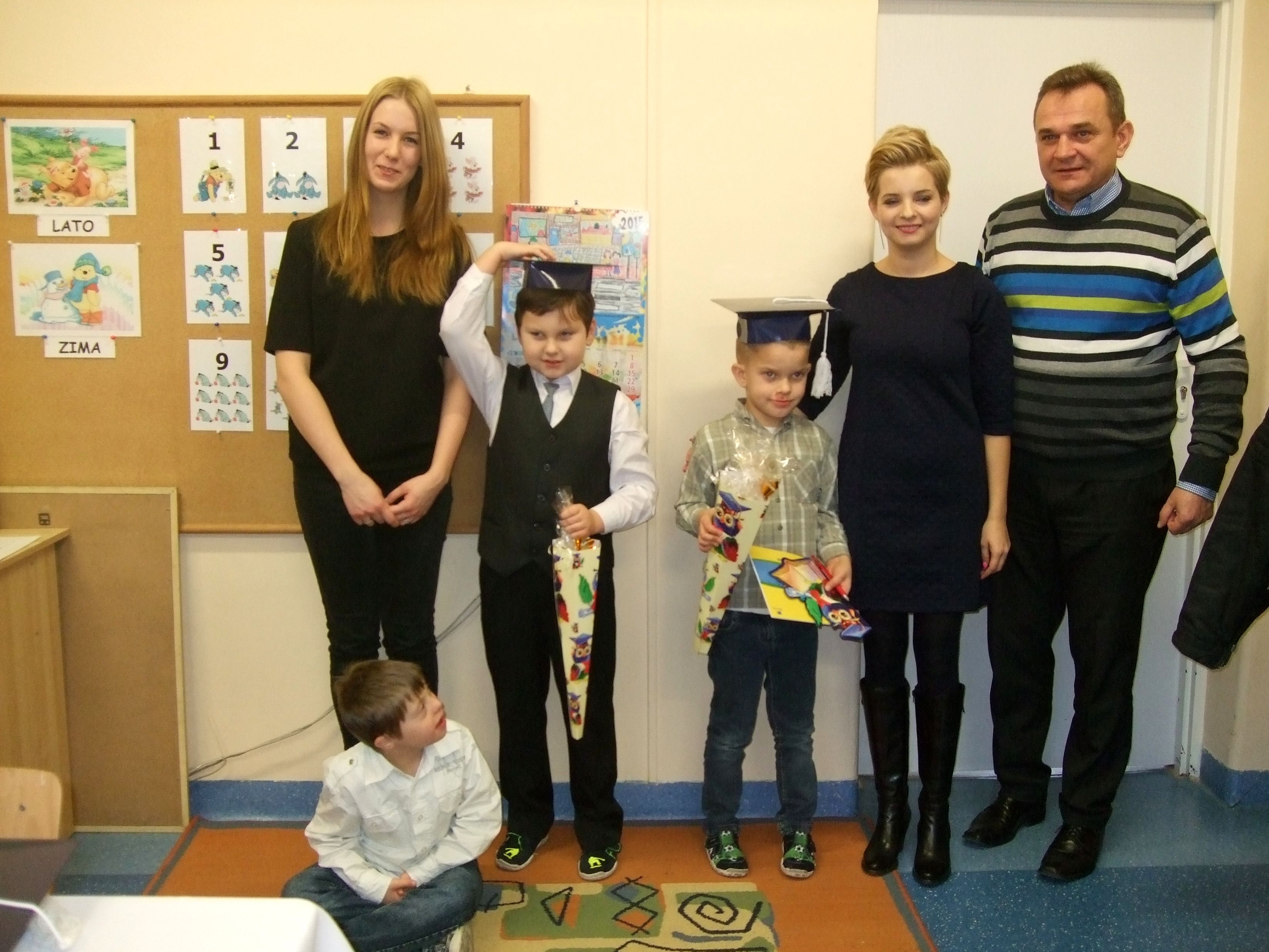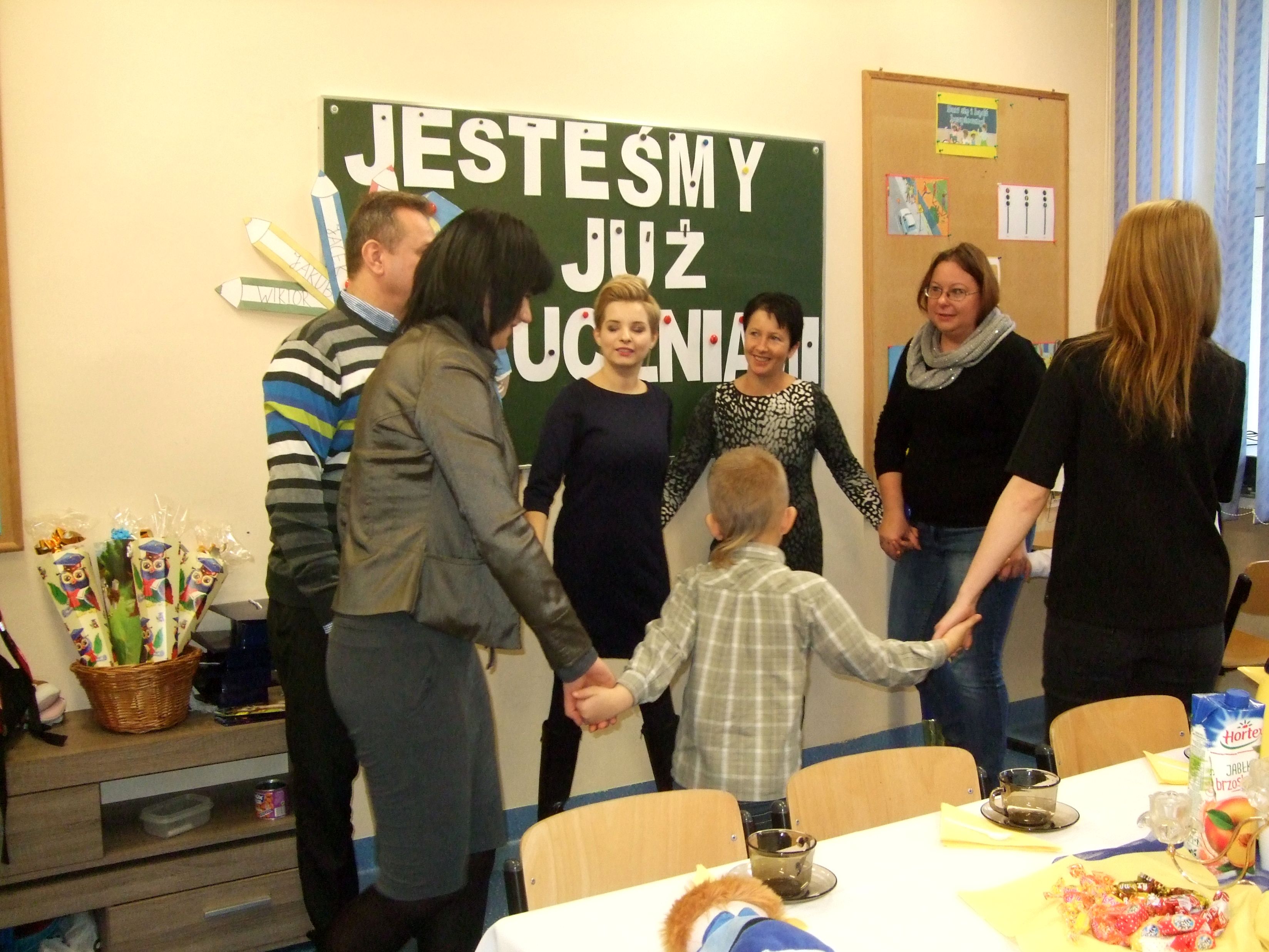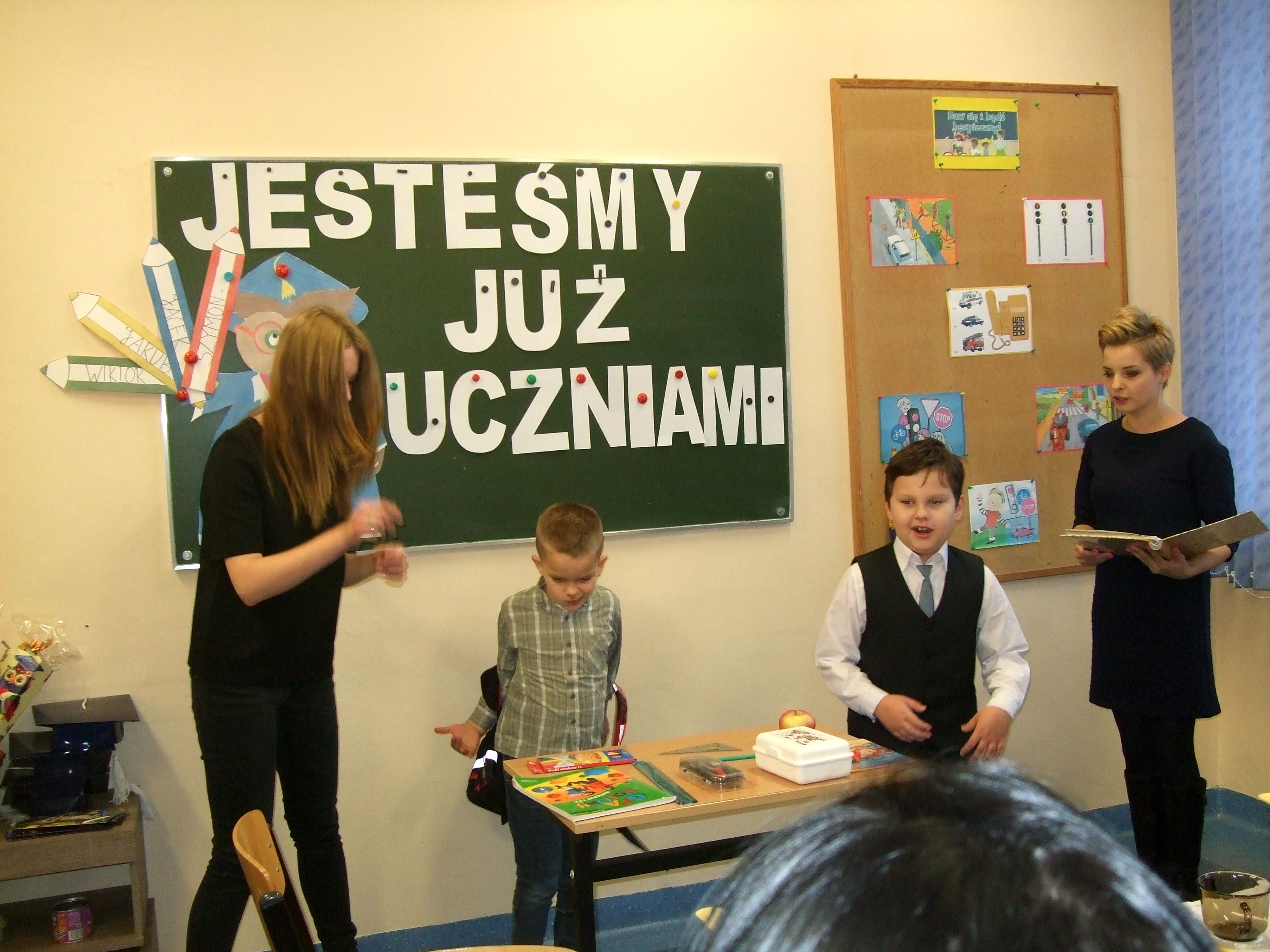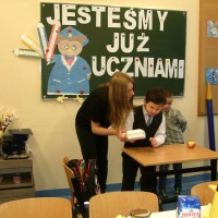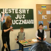 26.11.2015 r. w naszej szkole odbyło się uroczyste przyjęcie dzieci z klas pierwszych do społeczności uczniowskiej. To wielkie wydarzenie nie tylko dla samych pierwszaków, ale również dla ich rodziców. Uczniowie klasy pierwszej zaprezentowali swoje talenty i umiejętności w części artystycznej. Piosenkę „Walczyk” zatańczyli razem z rodzicami. Następnie odbyła się uroczysta ceremonia ślubowania przez Pana Dyrektora Leszka Iwańczuka, który wielkim ołówkiem mianował najmłodszych wychowanków na uczniów. Wszyscy pierwszoklasiści otrzymali dyplom, granatową biretkę oraz róg obfitości. Po części oficjalnej był czas na słodki poczęstunek.