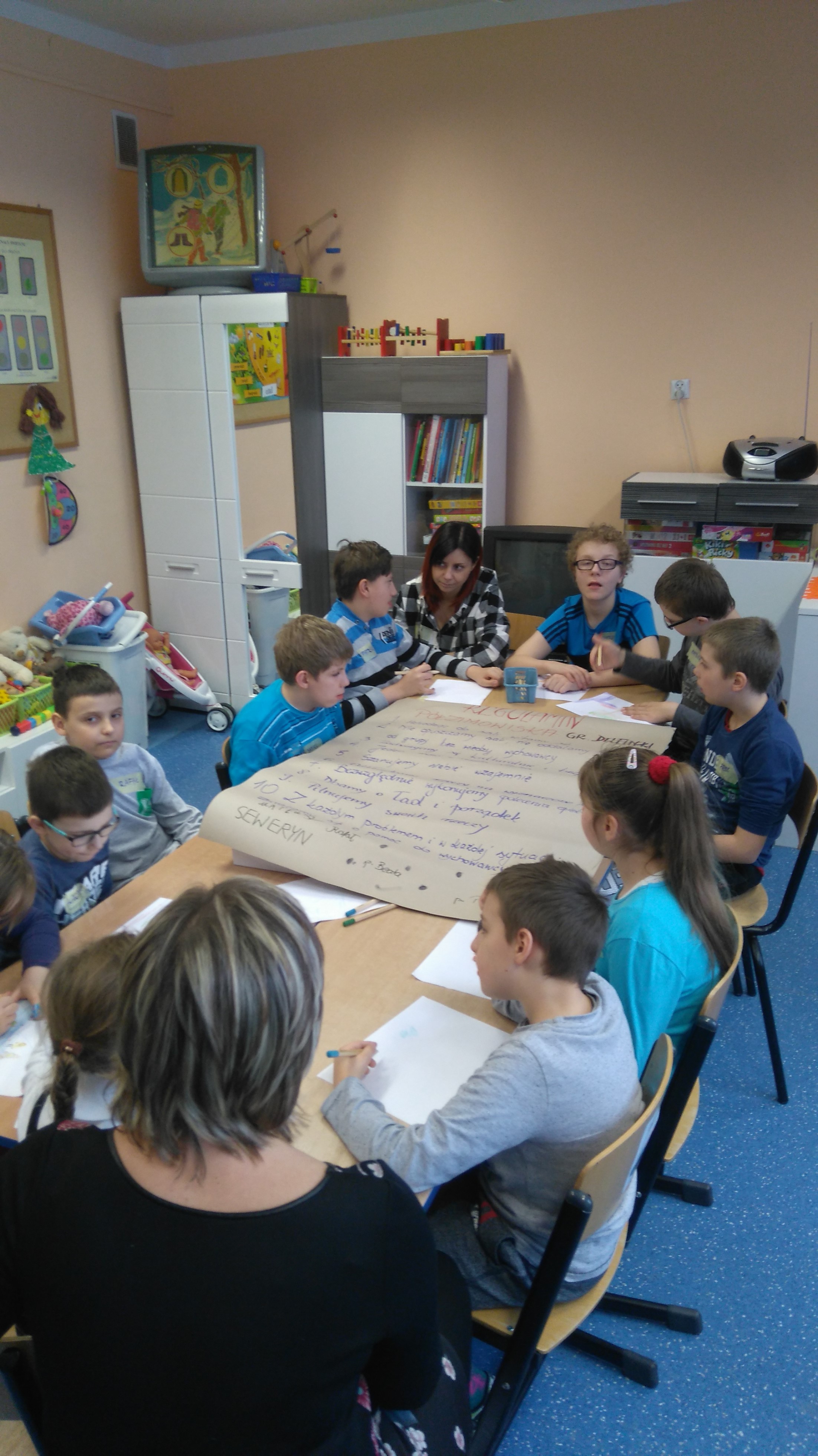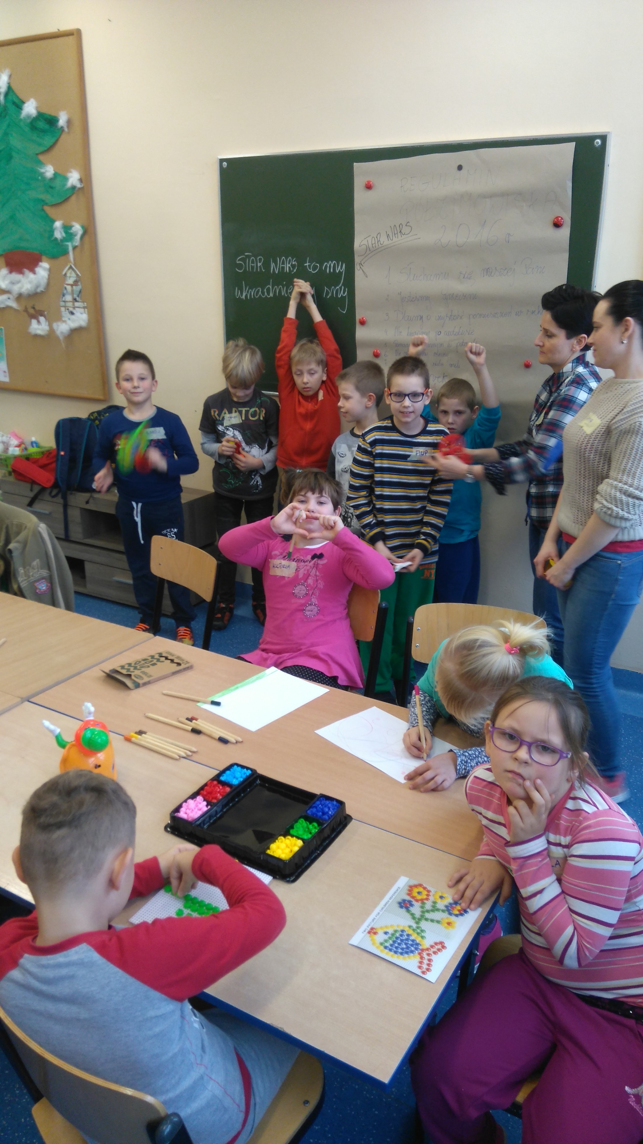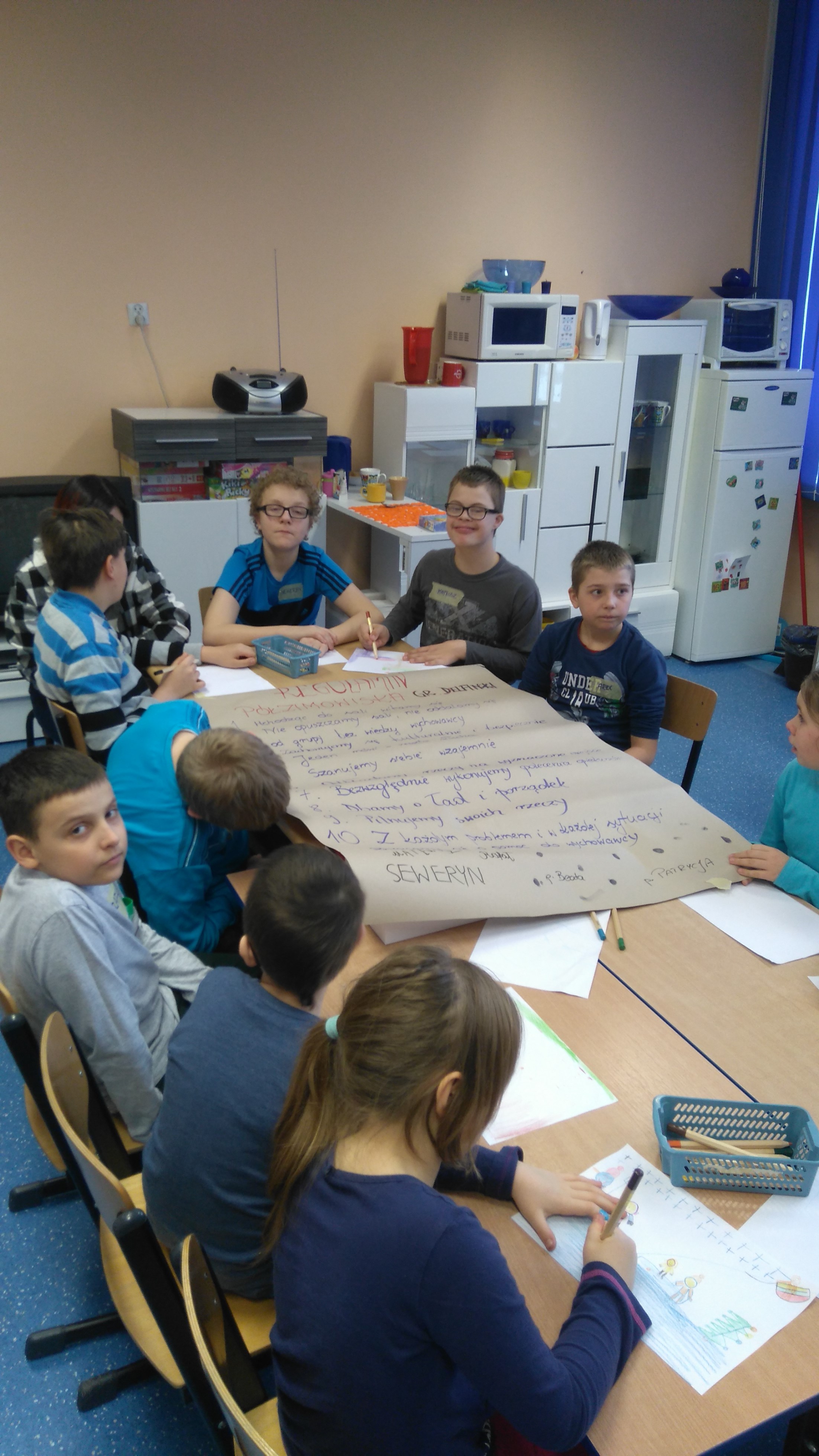 Dnia 25.01.2016 rozpoczęliśmy ferie, a dokładnie – półzimowisko w Ośrodku Szkolno-Wychowawczym nr 1. Nasi podopieczni poznali swoje imiona podczas zabaw integracyjnych, wspólnie opracowali regulamin w swoich grupach, pod którym złożyli własnoręczne podpisy. Ubaw co nie miara mieliśmy podczas wymyślania nazw dla grup, oraz piosenki grupowej. Następnie odwiedził nas Pan policjant, który wygłosił dzieciom pogadankę na temat bezpieczeństwa w czasie ferii, po czym powstały piękne prace plastyczne jako „Kodeks bezpiecznego uczestnika półzimowiska”. Zajęcia sportowe uwieczniły dzisiejszy pobyt. Dzieci pozytywnie wymęczone, ale zadowolone powróciły do swoich domów by zbierać siły na dalsze dni.