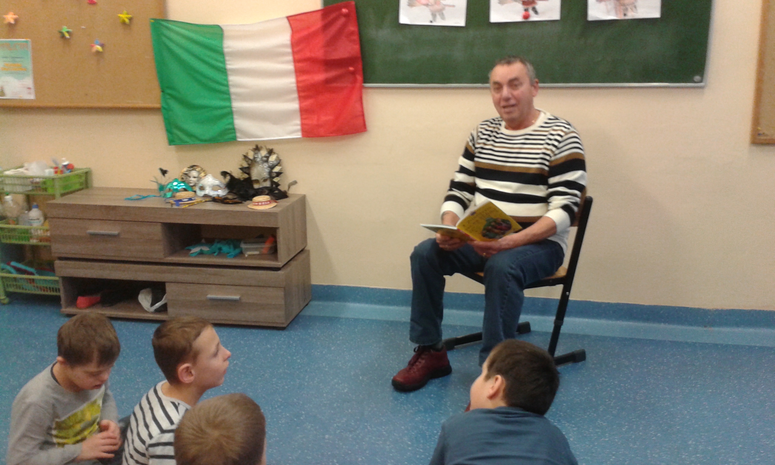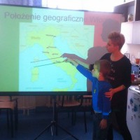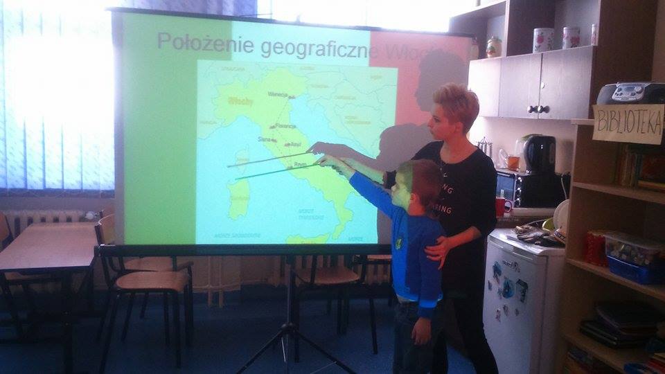 Uczniowie klasy I „a” i II „a” w ramach programu edukacyjnego „Warto czytać” odbyli „podróż do Włoch”. Dzieci poznały najbardziej znane miejsca i zabytki tego pięknego kraju. Uczniowie również osłuchali się z włoską muzyką, miały okazję zatańczyć do tradycyjnej włosmiej piosenki „Il ballo del Qua Qua”, czyli Kaczuchy, skosztować tradycyjnych, włoskich potraw i deserów. Najciekawczą atrakcją był pokaz erupcji Wulkanu, a także spotkanie z  włoskim Mikołajem – La Befaną, która przybyła do dzieci i podarowała im słodkości. W ostatnim dniu tego wspaniałego tygodnia mieliśmy zaszczyt gościć u nas gościa z Włoch, który przeczytał dzieciom fragment znanej bajki włoskiego autora Carla Colodi „Pinokio”.