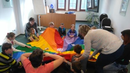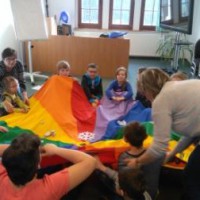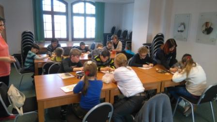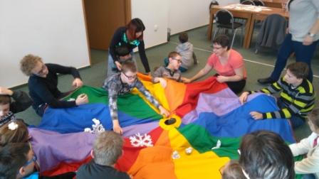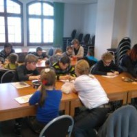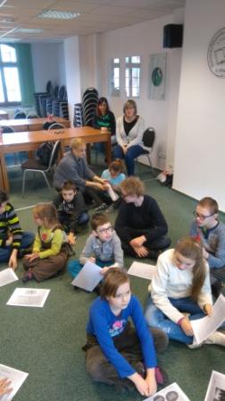 I grupa dzieci brała udział w zajęciach w Bibliotece Pedagogicznej. Zajęcia przebiegały pod hasłem ,,Zima”. Dzieci rozwiązywały  zadania z przygotowanych kart pracy o tematyce zimowej, kolorowały rysunki oraz uczestniczyły w zabawach ruchowych.