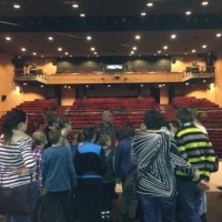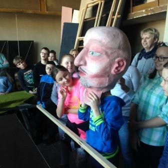 Dzieci zwiedzały teatr im. Aleksandra Sewruka w Elblągu od kulis. Miały okazję zobaczyć pracownię malarsko-butaforską, dużą scenę oraz podziemia teatru. Dzieci były pod dużym wrażeniem.