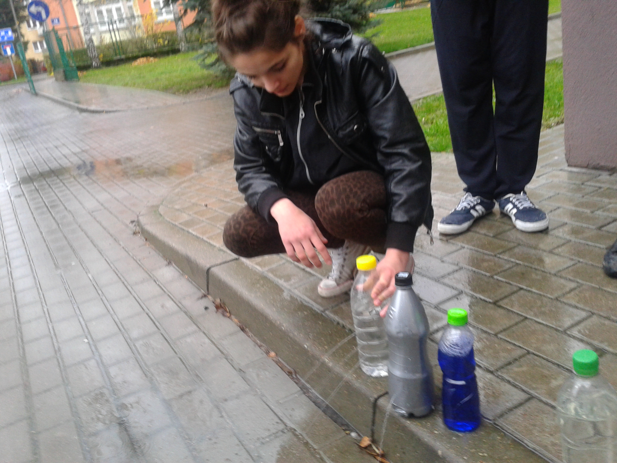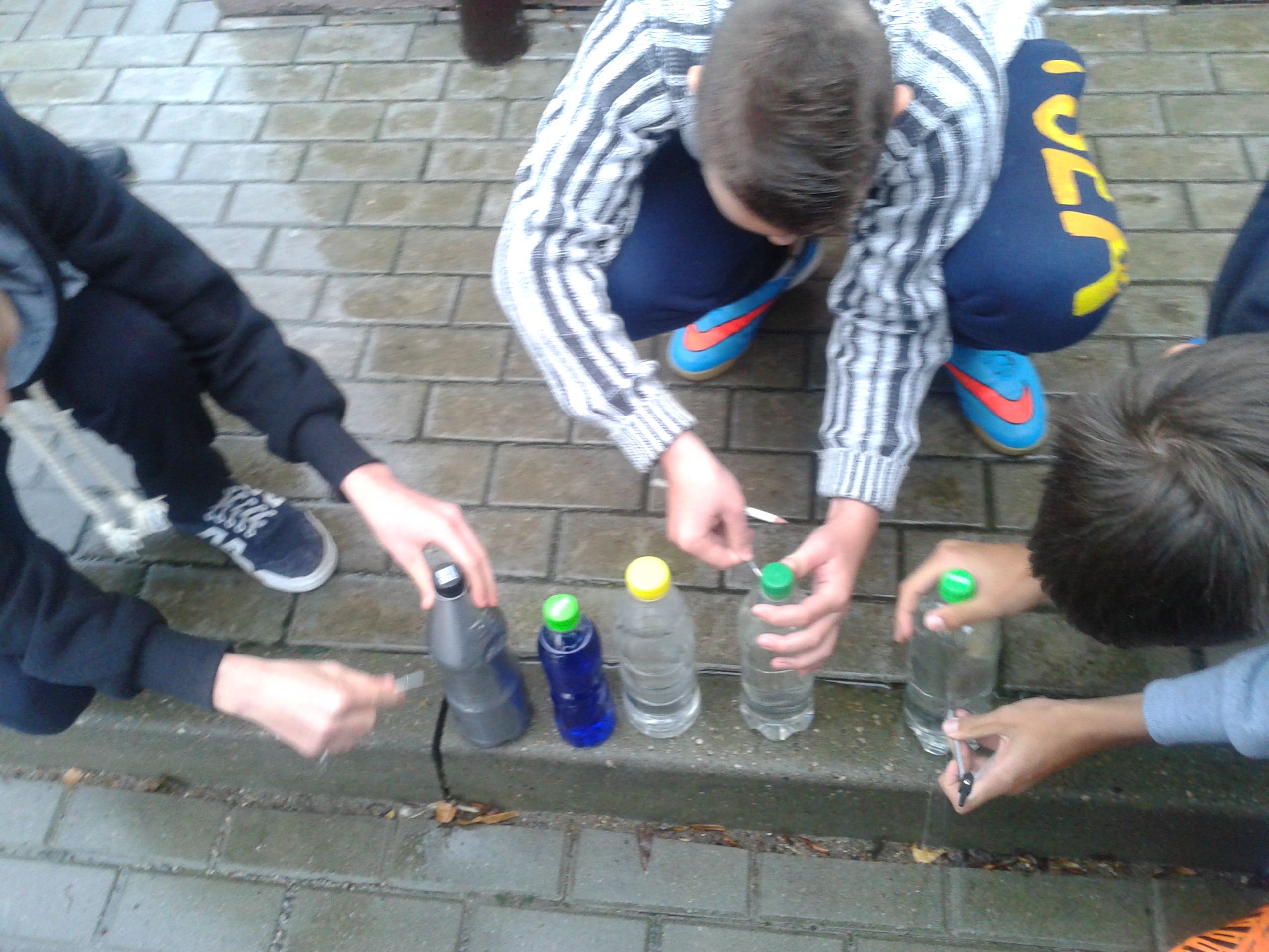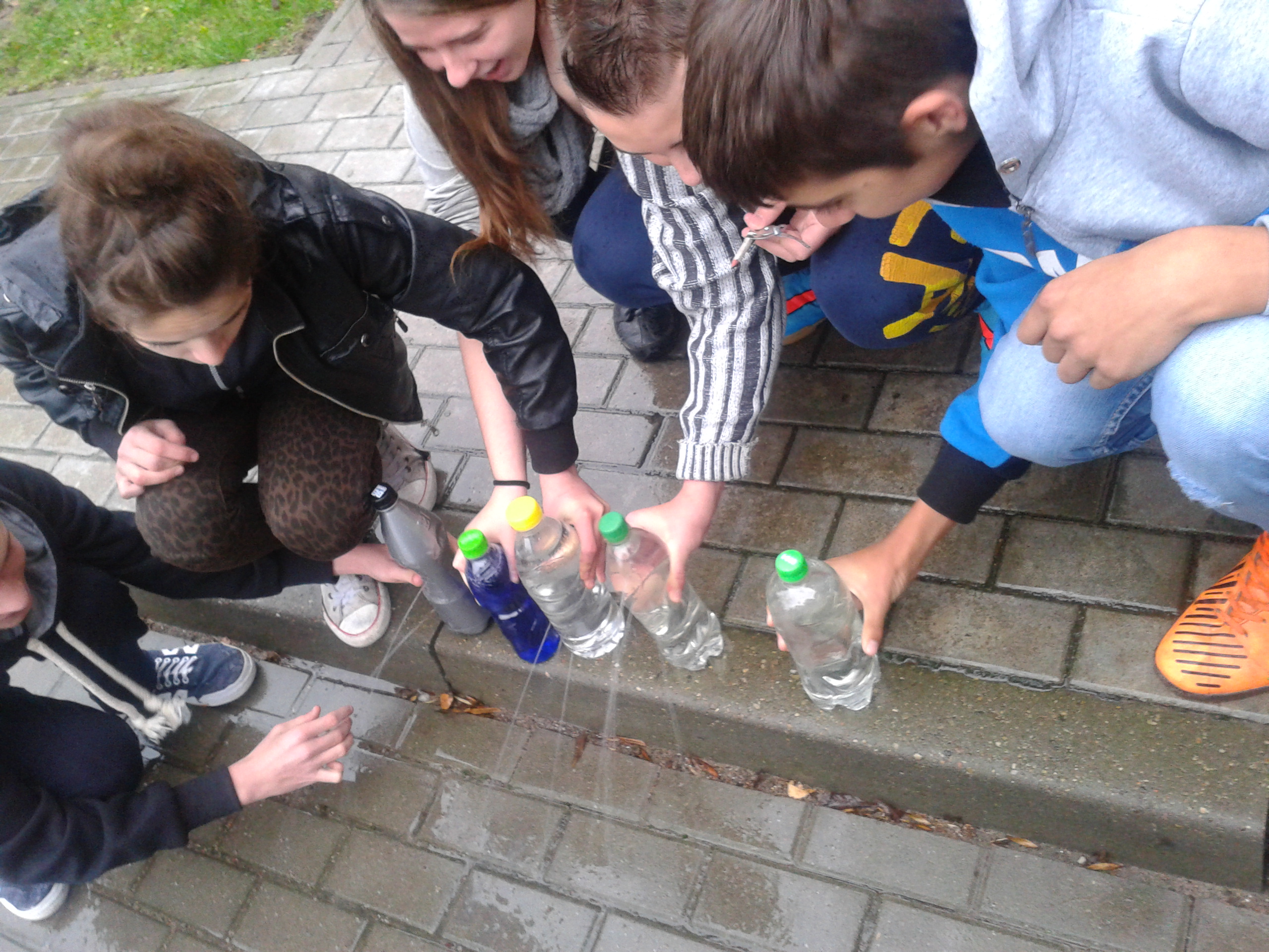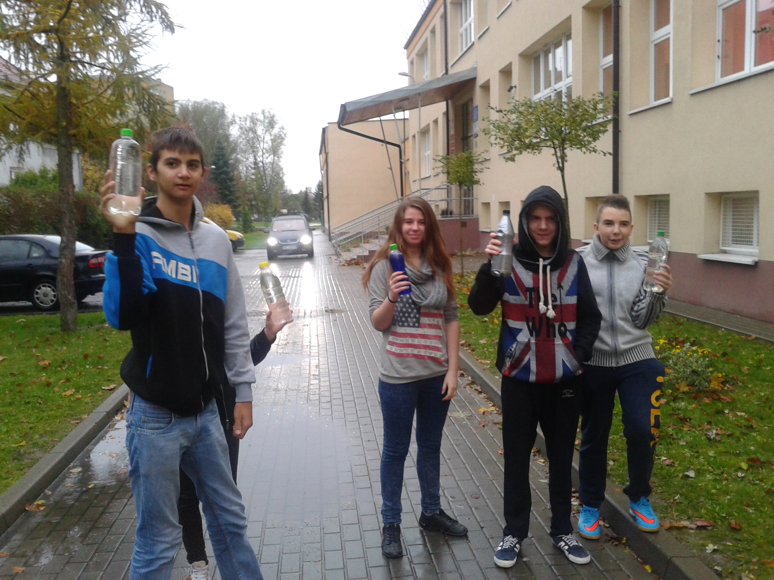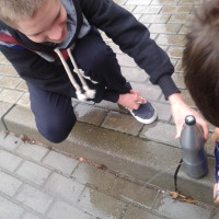 Uczniowie klasy 2A gimnazjum wraz z nauczycielem wybrali się na lekcję fizyki w terenie, podczas której sprawdzali: