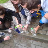 Ciekawostką było przeprowadzenie pokazu mającego na celu znaleźć odpowiedź na pytanie: Od czego zależy ciśnienie panujące w danym miejscu cieczy.