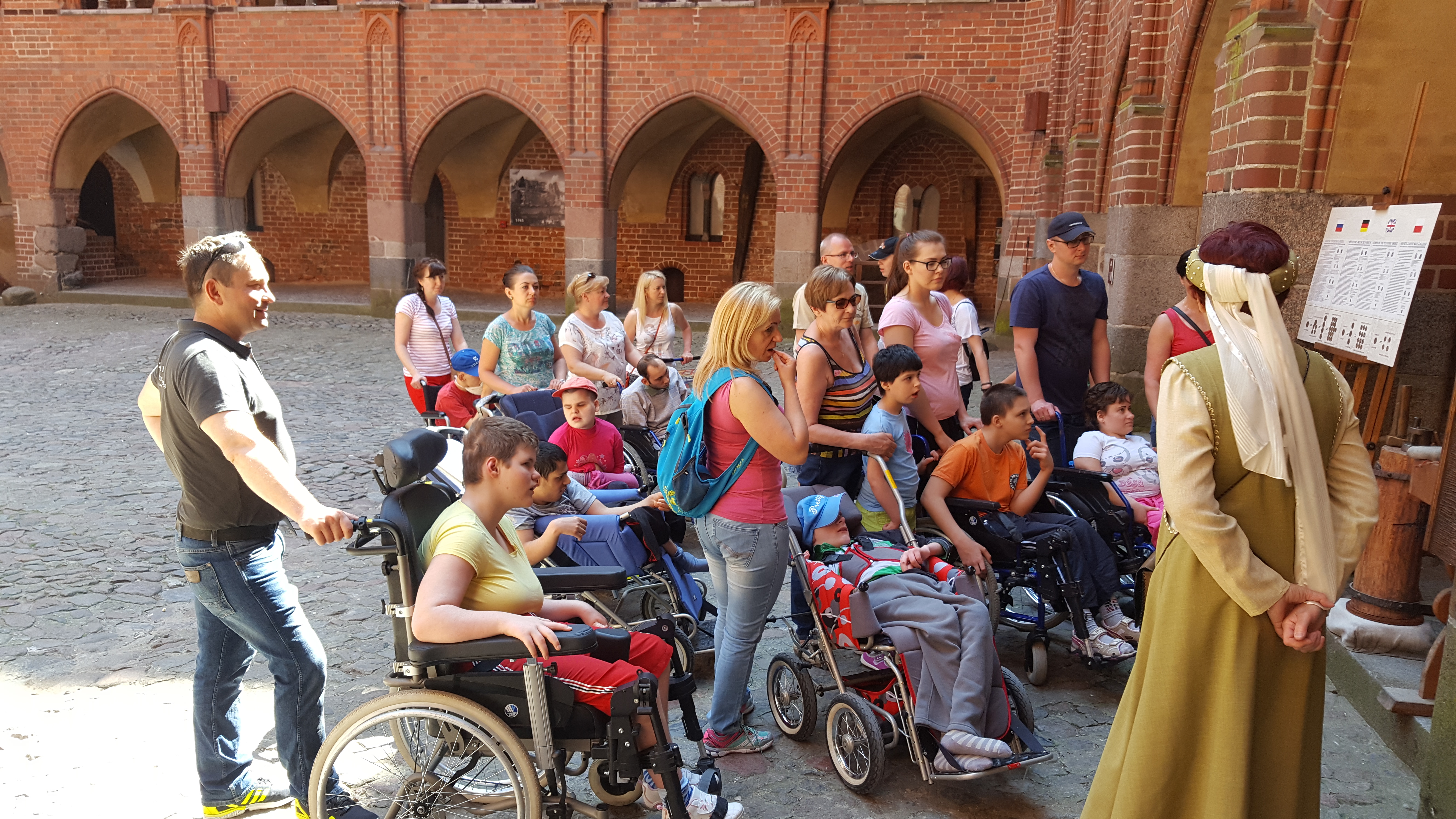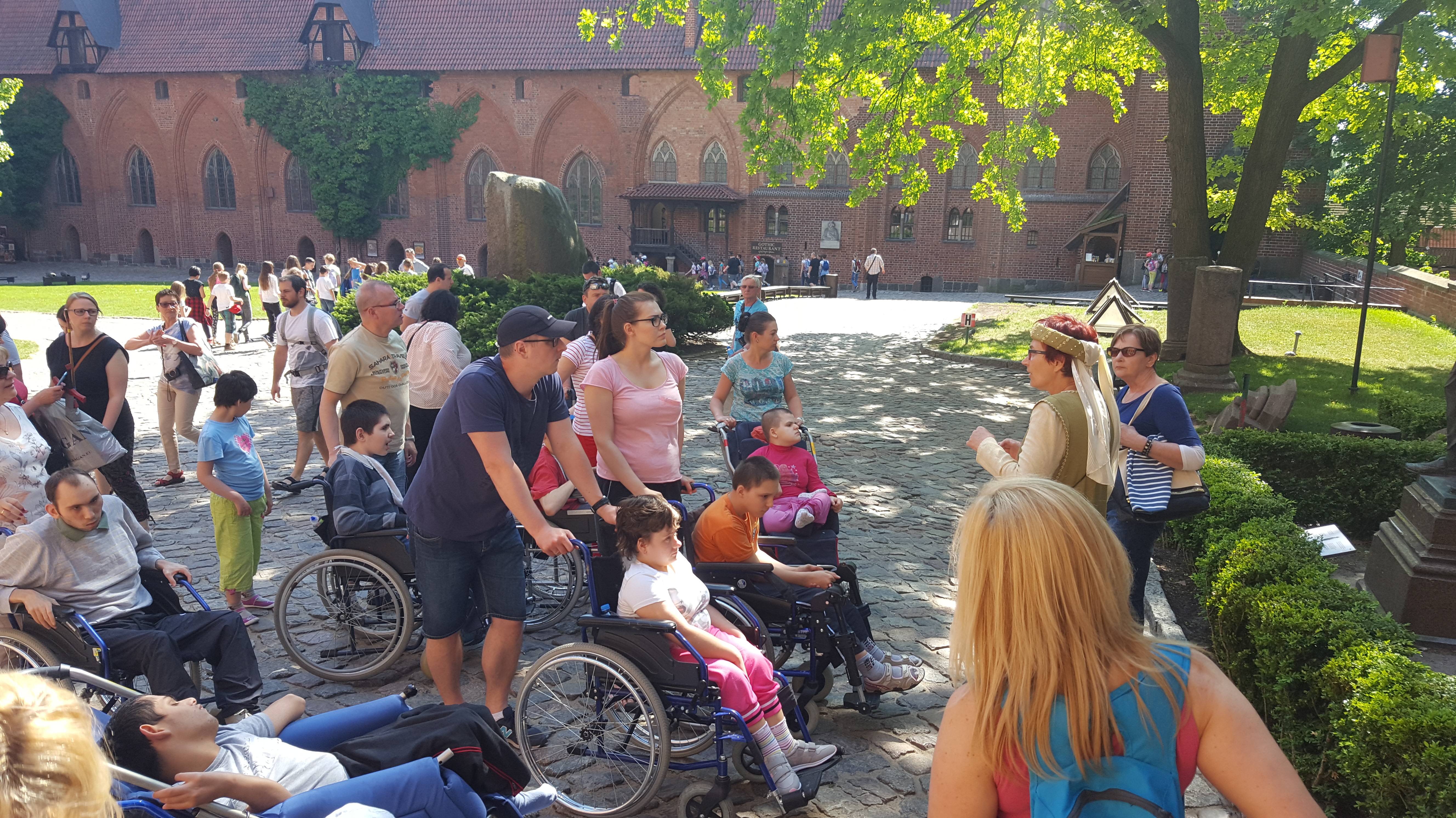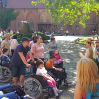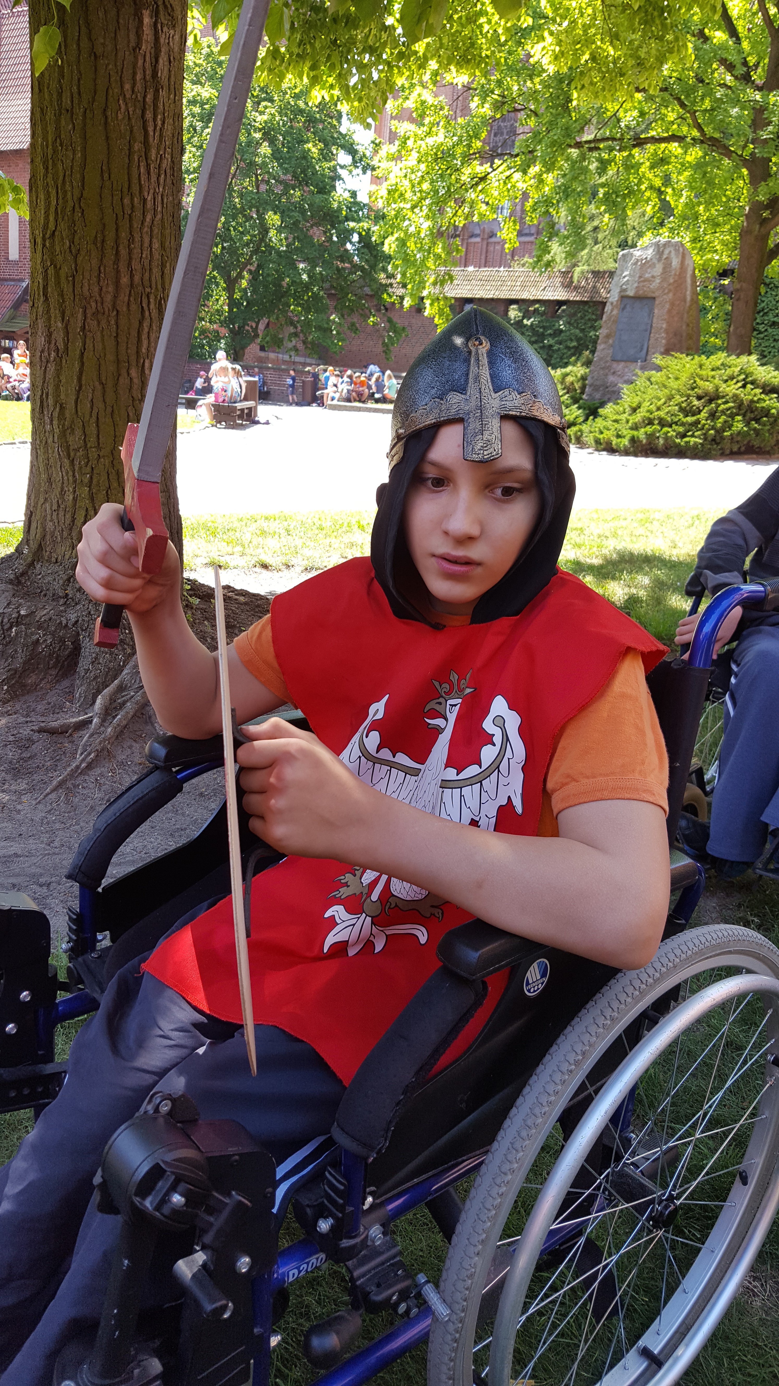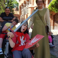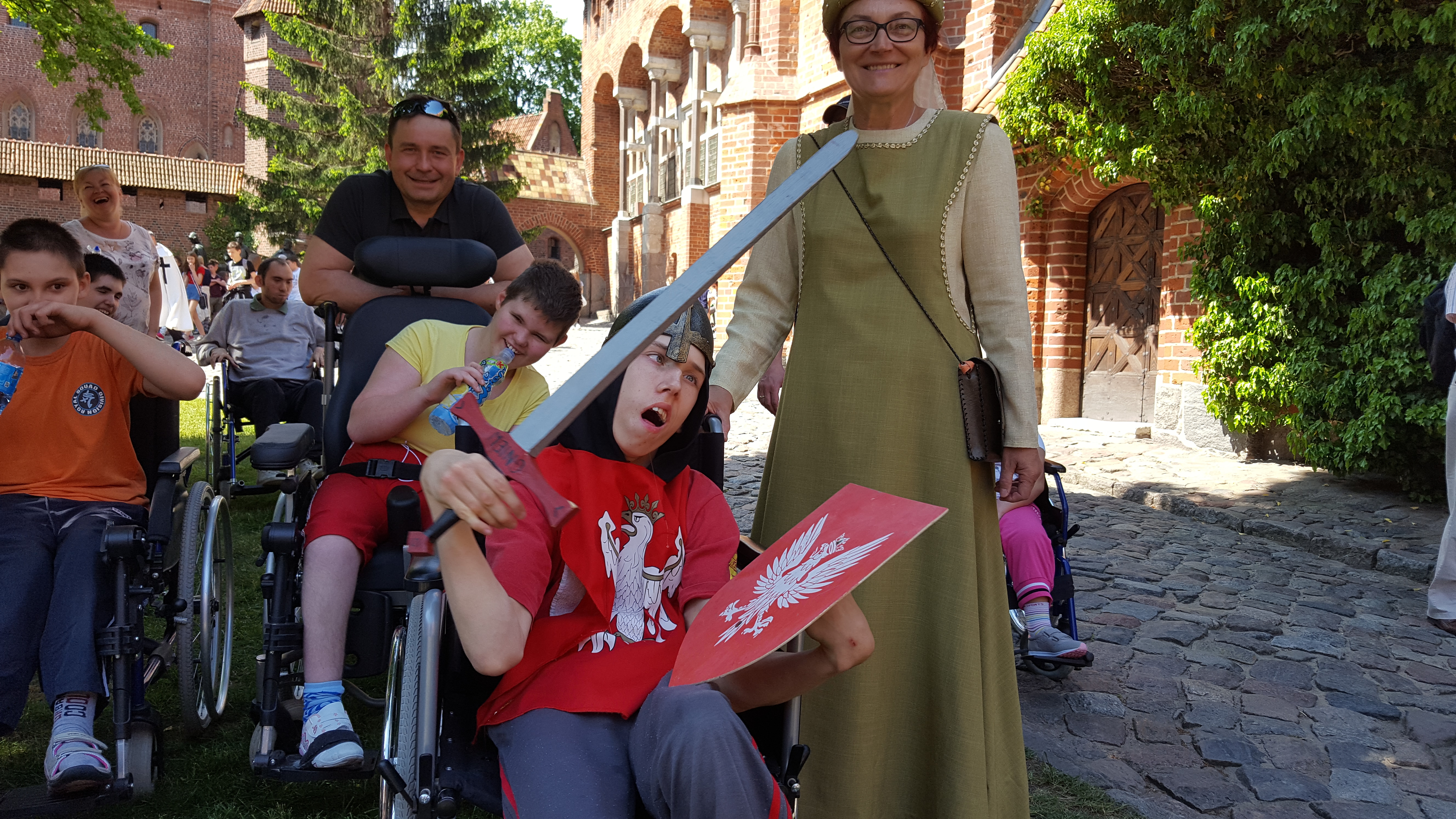 Czas zamków i rycerzy – to projekt realizowany w DPS przy współpracy z firmą Simens. Wycieczka do zamku w Malborku była jednym z punktów do zrealizowania w ramach tego projektu. W wycieczce wzięło udział 13 dzieci i 12 nauczycieli SOSW oraz wolontariusze. Dzięki przychylności pracowników zamku oraz przesympatycznej pani przewodnik ubranej w strój historyczny dzieci mogły poznać różne ciekawe miejsca grodu. Przewodnik wprowadził Uczestników wycieczki w klimat średniowieczny. Dzięki pobytowi w murach zamku dzieci zgromadziły nowe doświadczenia. Rozwijały swoją wrażliwość dotykową, słuchową, wzrokową. Poznały historię zamku, zwiedzały Wielki Refektarz, kuchnię i izbę kuchmistrza, kaplicę św. Anny, celę Witolda, zapoznały się ze średniowiecznym systemem grzewczym. Na koniec każde dziecko mogło poczuć się jak prawdziwy rycerz ubierając strój rycerski, zakładając przyłbicę, trzymając miecz i tarczę. Uczestnicy wypoczęci i zrelaksowani bo dopisała piękna pogoda wrócili do domu.