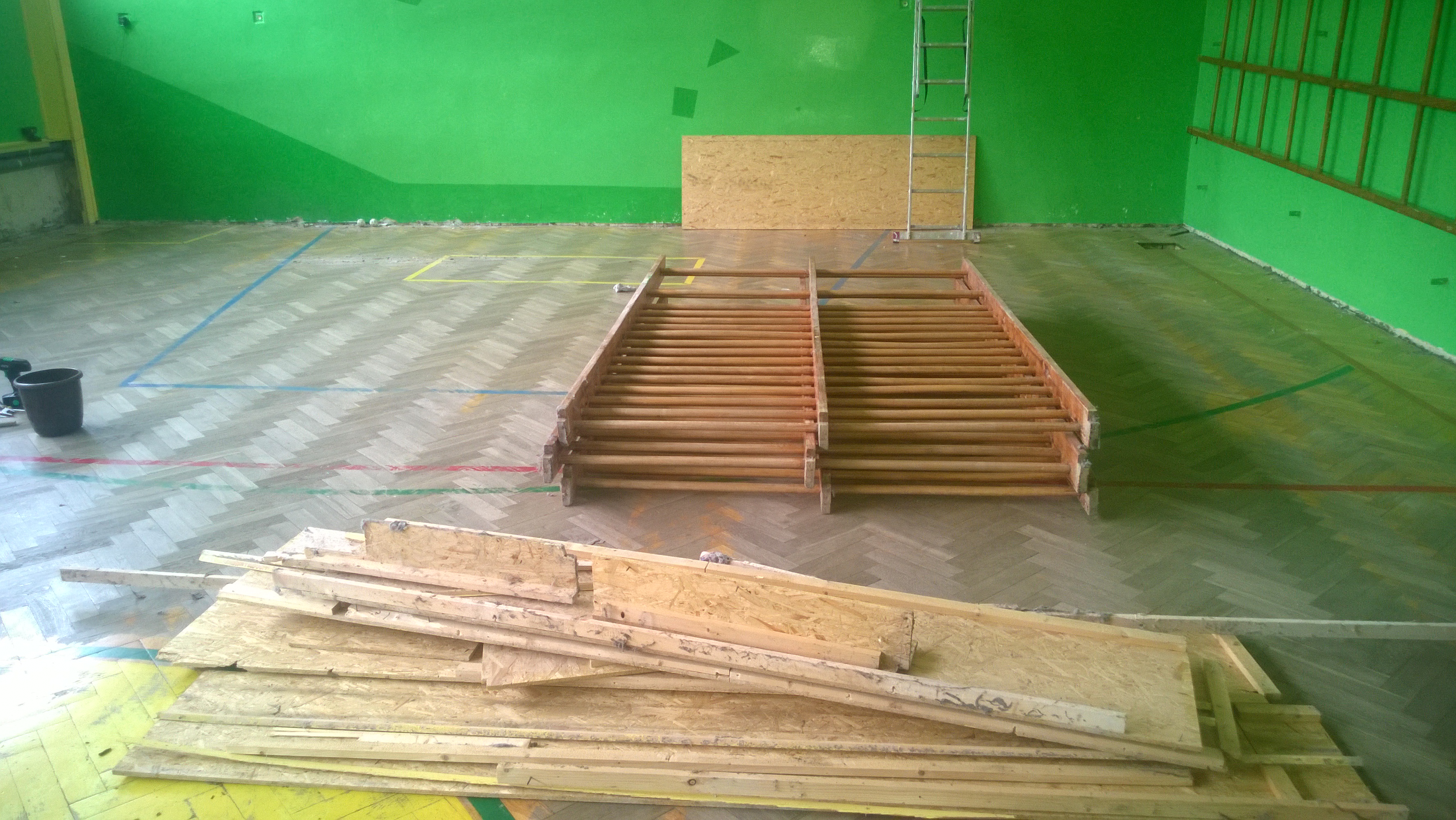Dzięki dużemu wsparciu organu prowadzącego rozpoczęliśmy dzisiaj remont sali gimnastycznej. Nadchodzą kolejne wakacje pod znakiem modernizowania Ośrodka. Sporo prac wykonamy we własnym zakresie. Wymianą podłogi zajmie się specjalistyczna firma z Bielska Białej. Być może uda się również wymienić oświetlenie.