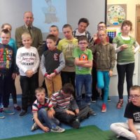 Pan Jarosław, pracownik Nadleśnictwa Elbląg, z pasją opowiadał, podczas prezentacji multimedialnej, o pracy leśnika i ochronie środowiska. Dzieci z zainteresowaniem słuchały, a co najbardziej ucieszyło nauczycieli, udzielały informacji zwrotnej odpowiadając na pytania naszego gościa.