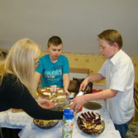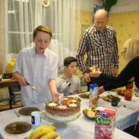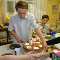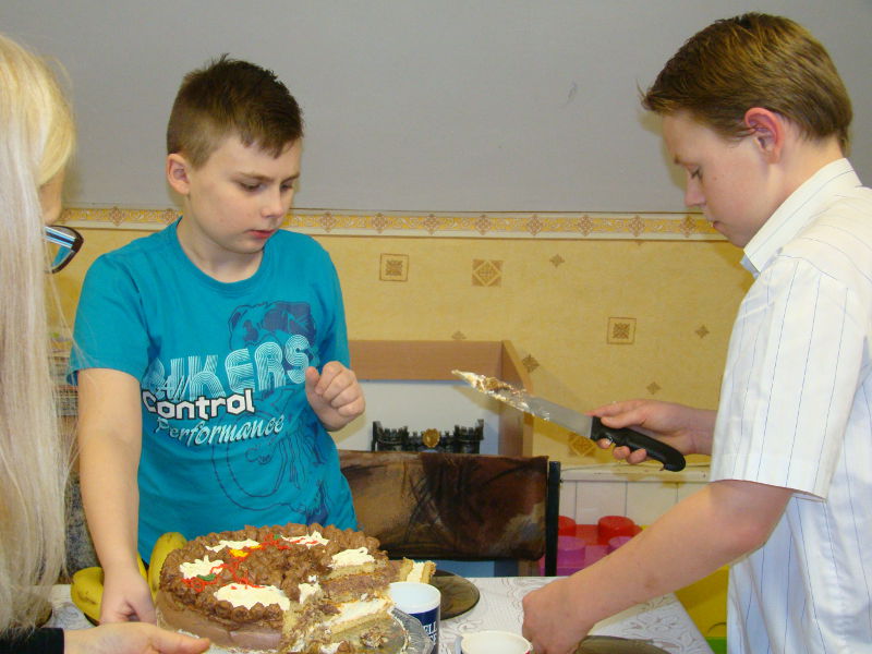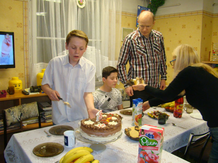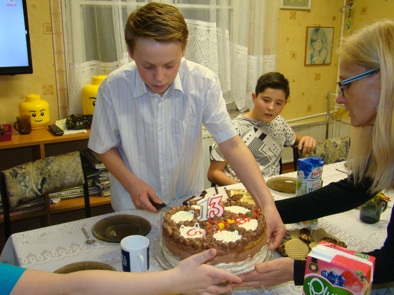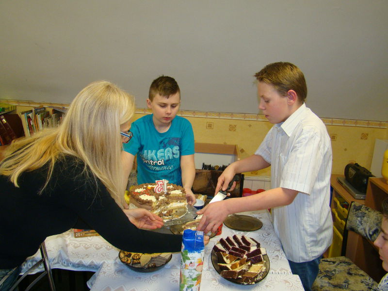 Dnia 26 XI 2016r. jeden z naszych podopiecznych, Sebastian Piróg, obchodził 13 urodziny. Z tej okazji przygotował dla swoich kolegów i koleżanek oraz zaproszonych gości słodką niespodziankę. Przywiózł ciasta i inne łakocie, którymi wszystkich poczęstował. Aby tradycji stało się zadość, nie zabrakło tortu, życzeń i rozmaitych prezentów. Towarzyszyła nam muzyka i dobry nastrój. Każdy z uśmiechem na twarzy i pełnym brzuchem zakończył ten uroczysty dzień.