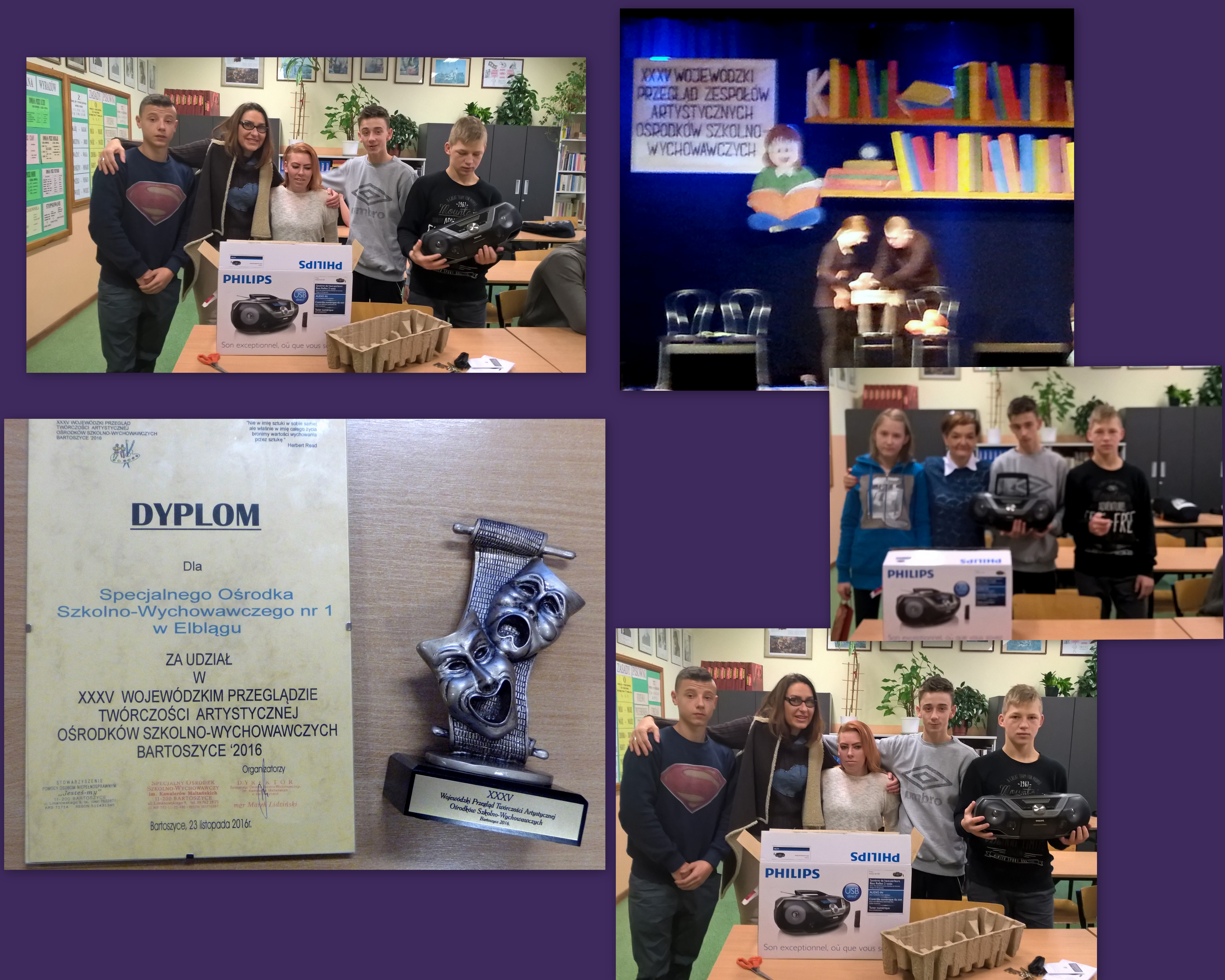 Występ naszych podopiecznych( przedstawiciele kl. I/II b gim. i Koła Przyjaciół Biblioteki) w Bartoszyckim Domu Kultury nagrodzono pamiątkowym dyplomem, statuetką oraz atrakcyjną nagrodą rzeczową. Młodzieży gratulujemy, a wszystkim trzymającym za nas kciuki, dziękujemy,