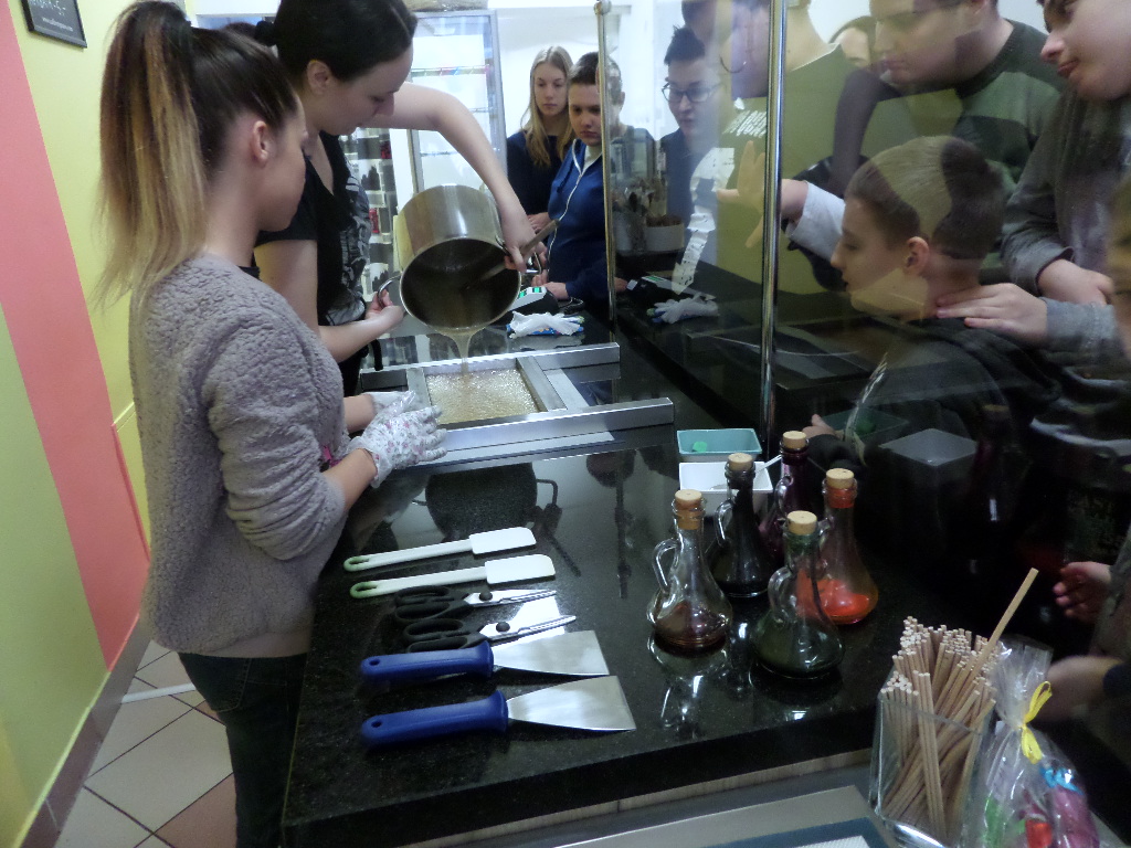 - 2 grudnia wybraliśmy się do Manufaktury Słodyczy na Stare Miasto- oglądaliśmy pokaz ręcznego tworzenia słodyczy, degustowaliśmy ciepłe cukierki, każdy z nas wykonał własnego Było „cukierkowo”.