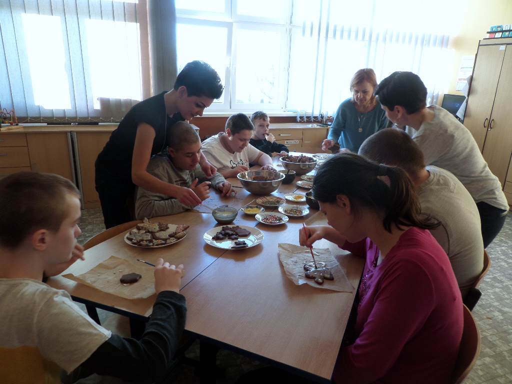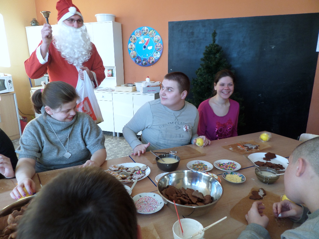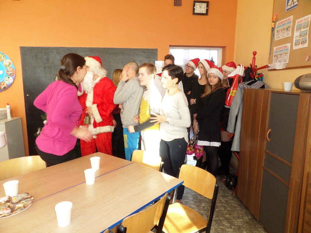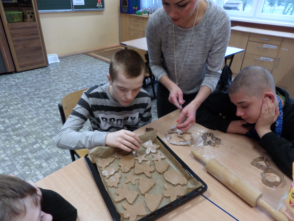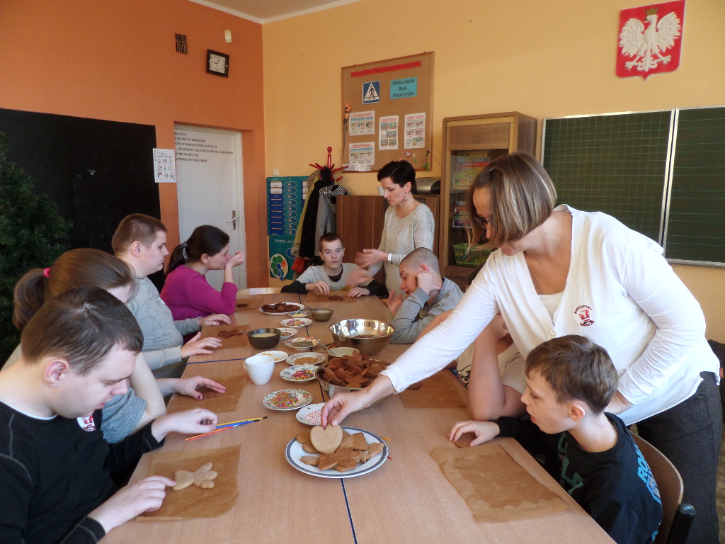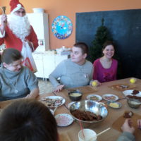 - 6 grudnia 2016 roku- wspólnie dekorowaliśmy pierniki, a potem…była pyszna Wysłuchaliśmy koncertu pastorałek i kolęd w wykonaniu uczniów Zespołu Szkół Pijarskich w Elblągu. Odwiedził nas Mikołaj i obdarował prezentami. Na zakończenie kolędowaliśmy wspólnie z mamą naszego ucznia Panią Martą Wasiak.