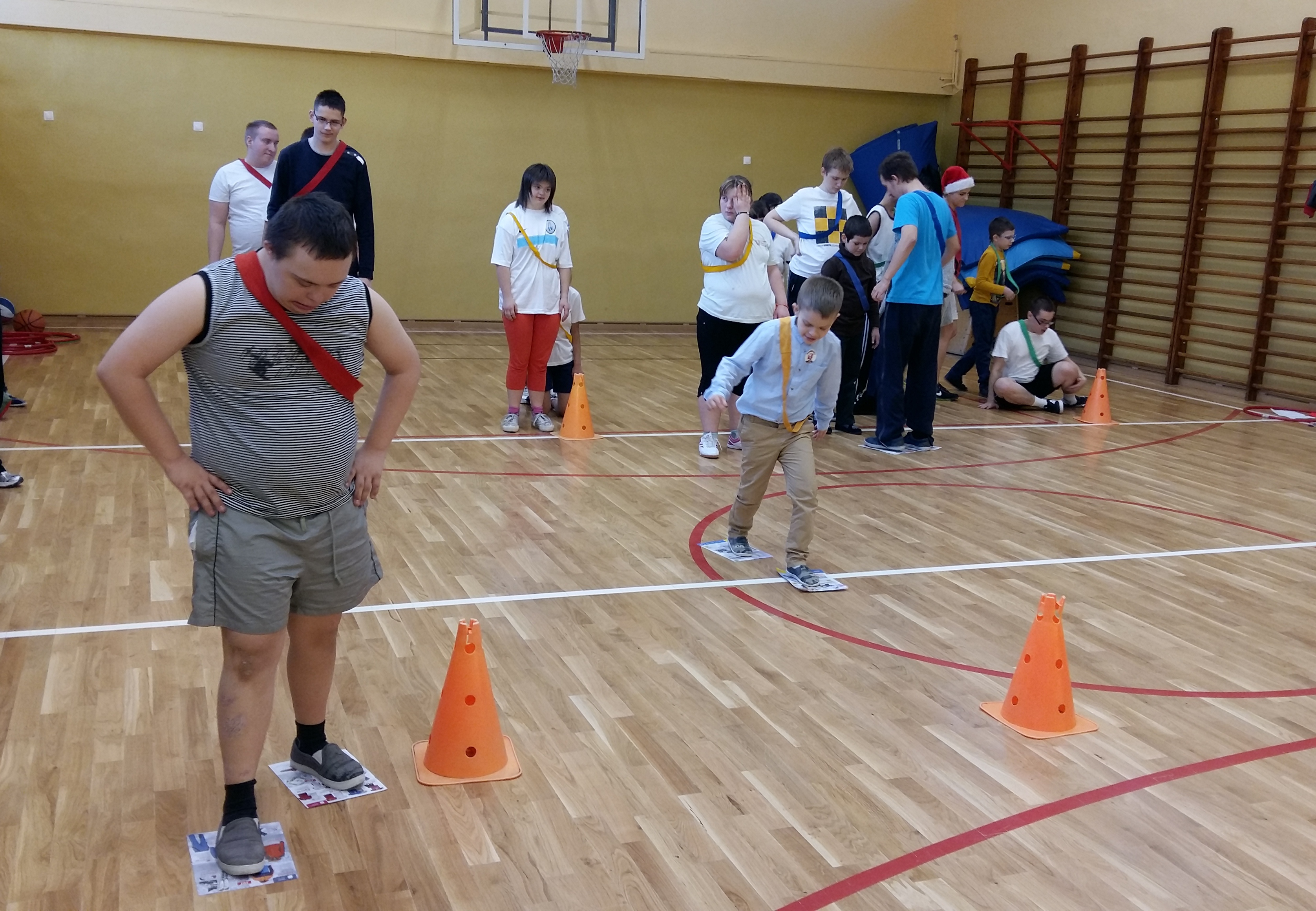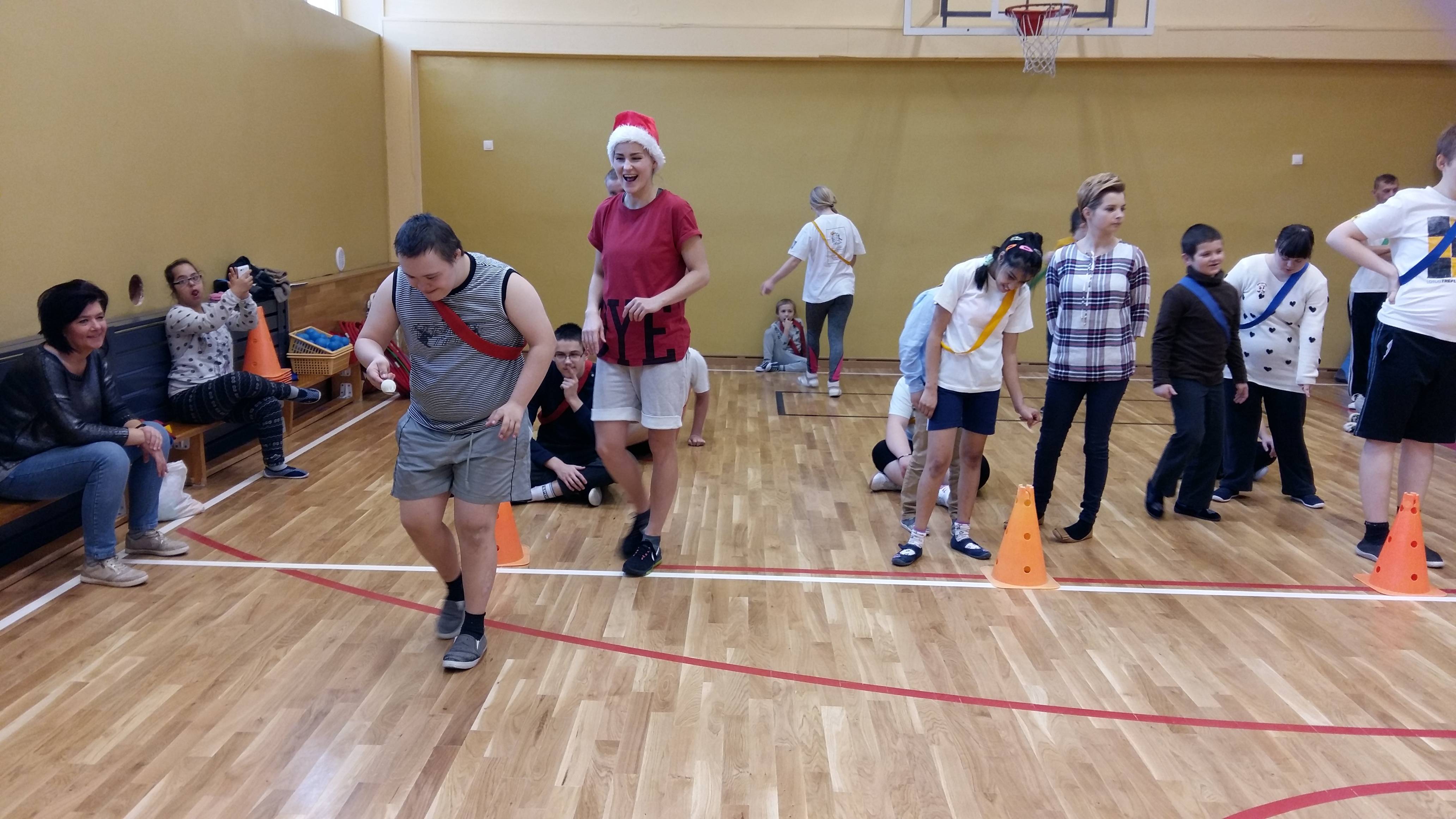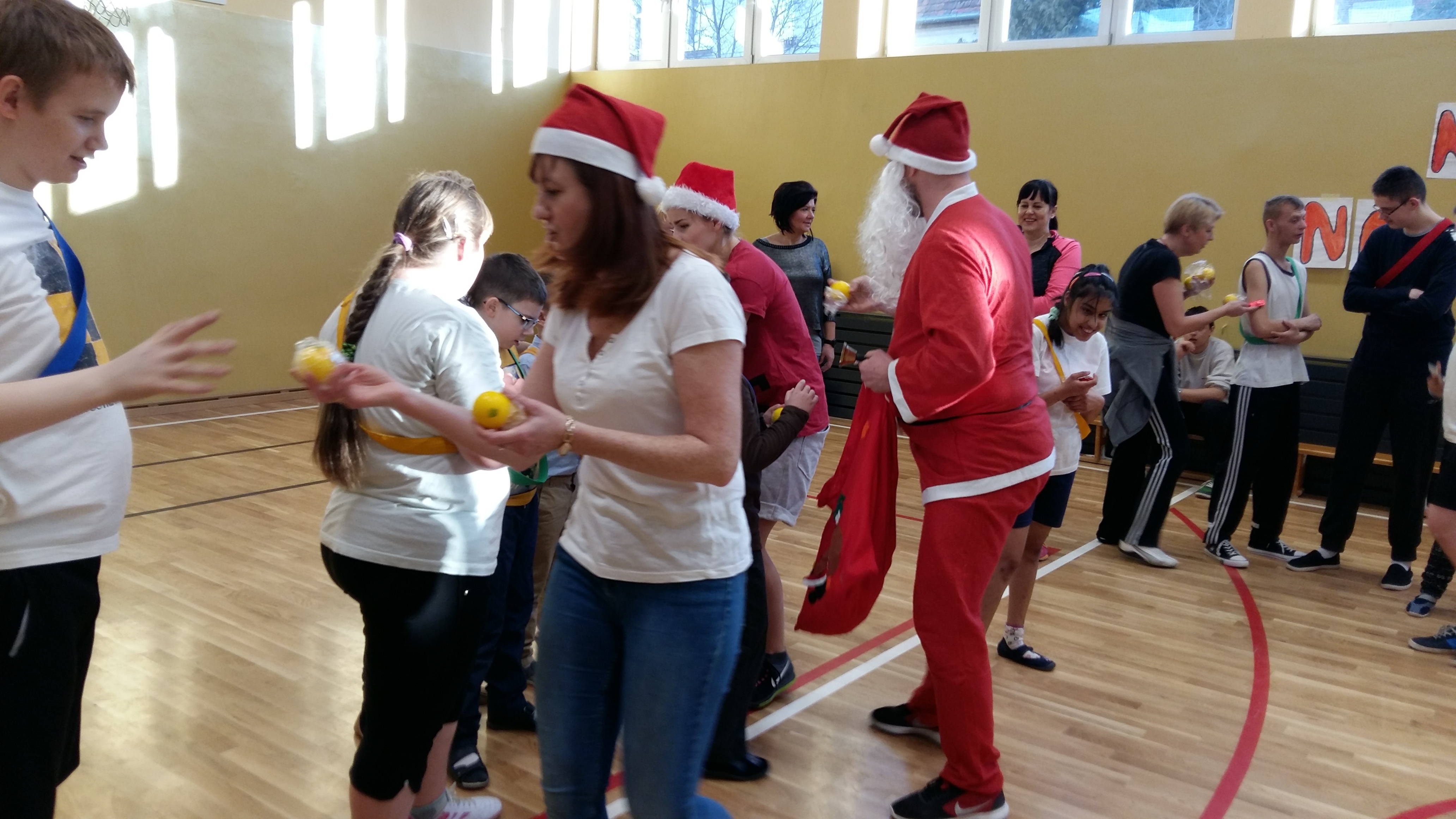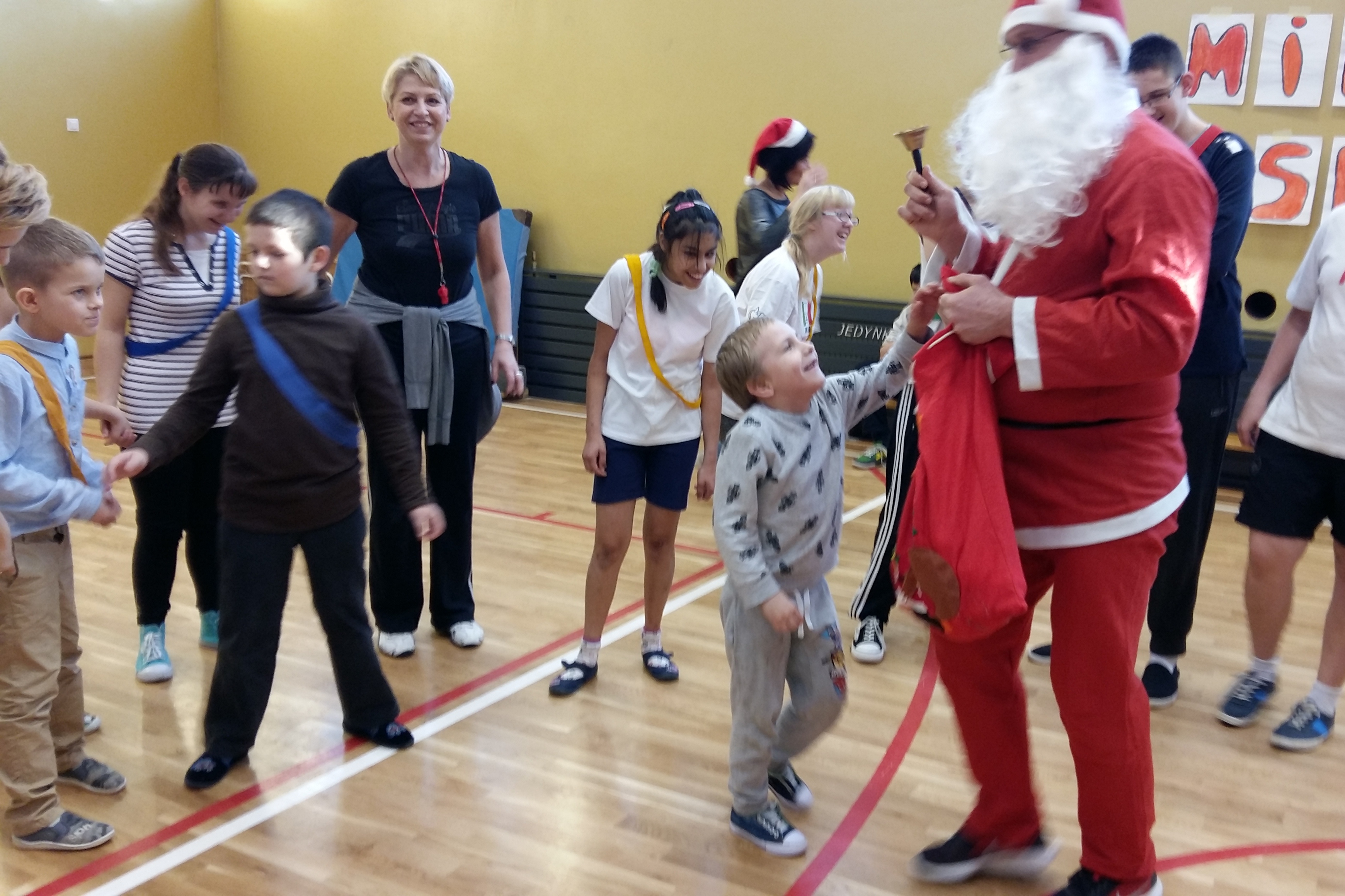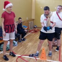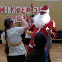 Mikołajki to dobra okazja do wspólnej zabawy. 6 grudnia w sali gimnastycznej odbyły się „Mikołajki na sportowo” dla klas Zespołów Edukacyjno- Terapeutycznych. W sportowych zmaganiach udział wzięli uczniowie: klas IA SP, IIA SP, IIIA Gim, IC PdP, IIA PdP, IIIB PdP. Zawodnicy zostali podzieleni na rzędy i mieli szansę sprawdzić się w ślizgach na nartach, przenoszeniu bombki na łyżce, toczeniu kuli śnieżnej, czy przechodzeniu z workiem przez komin. Konkurencje zostały przeprowadzone w formie zabawy. W tym dniu nie liczyła się wygrana, lecz dobra zabawa i satysfakcja ze wspólnie spędzonego czasu. Uczniowie byli bardzo zaangażowani i pełni radosnej energii. Wszyscy byliśmy tego dnia bardzo grzeczni, dlatego odwiedził nas święty Mikołaj i każdemu wręczył mały prezent.
