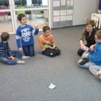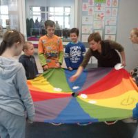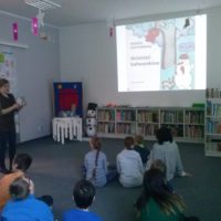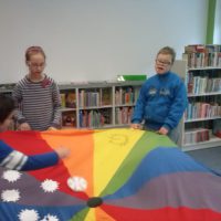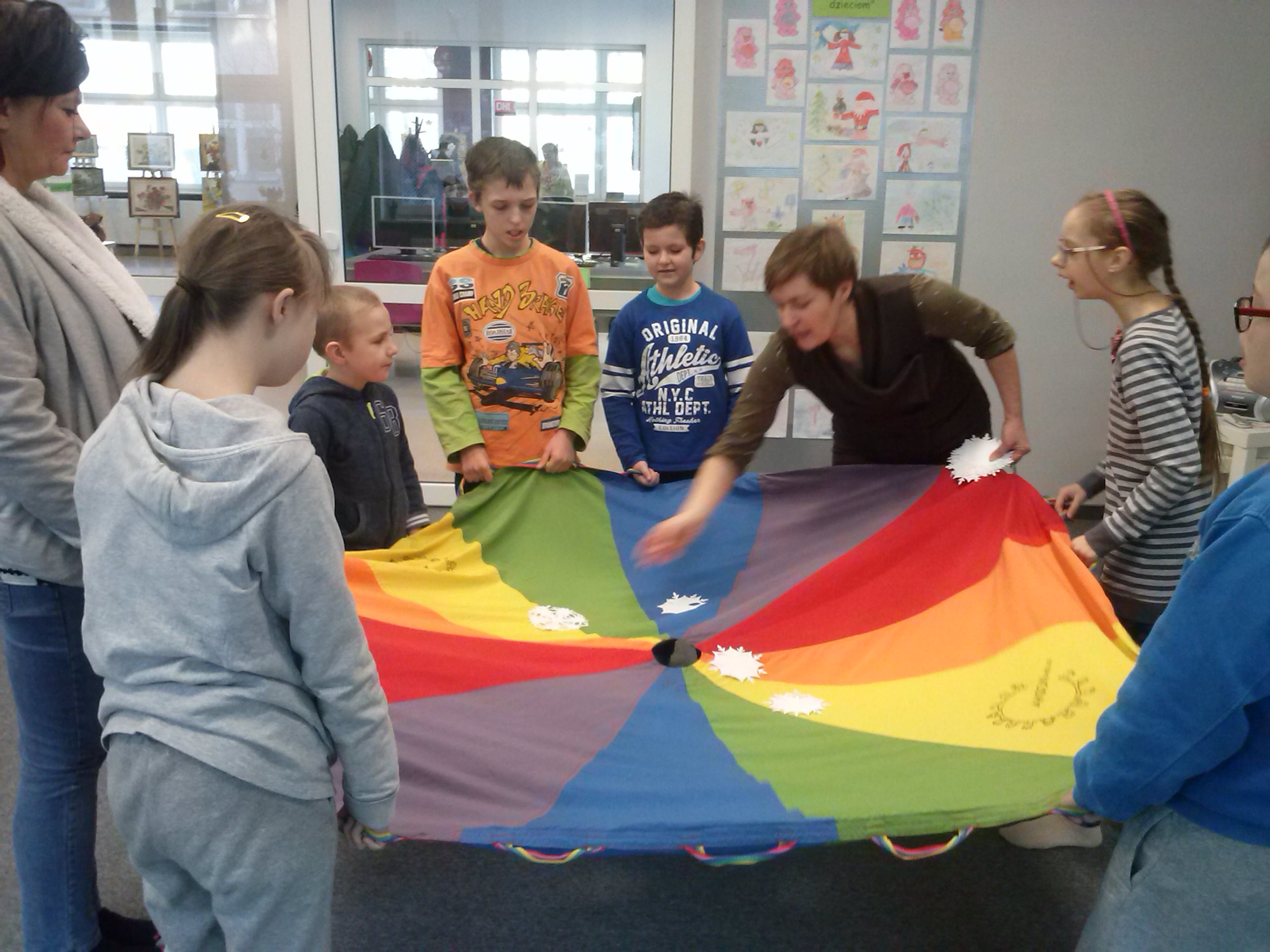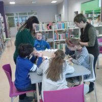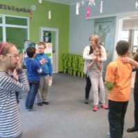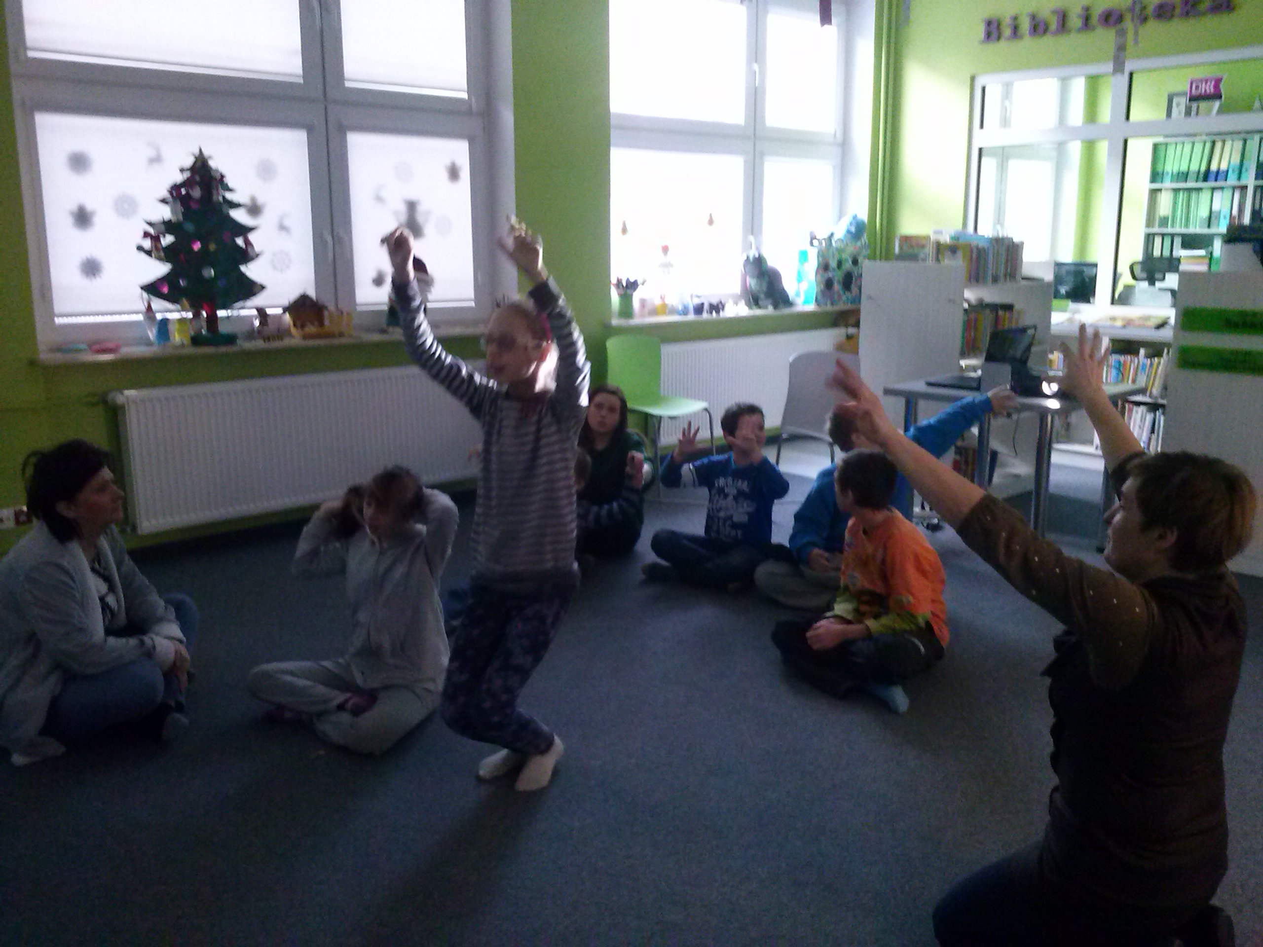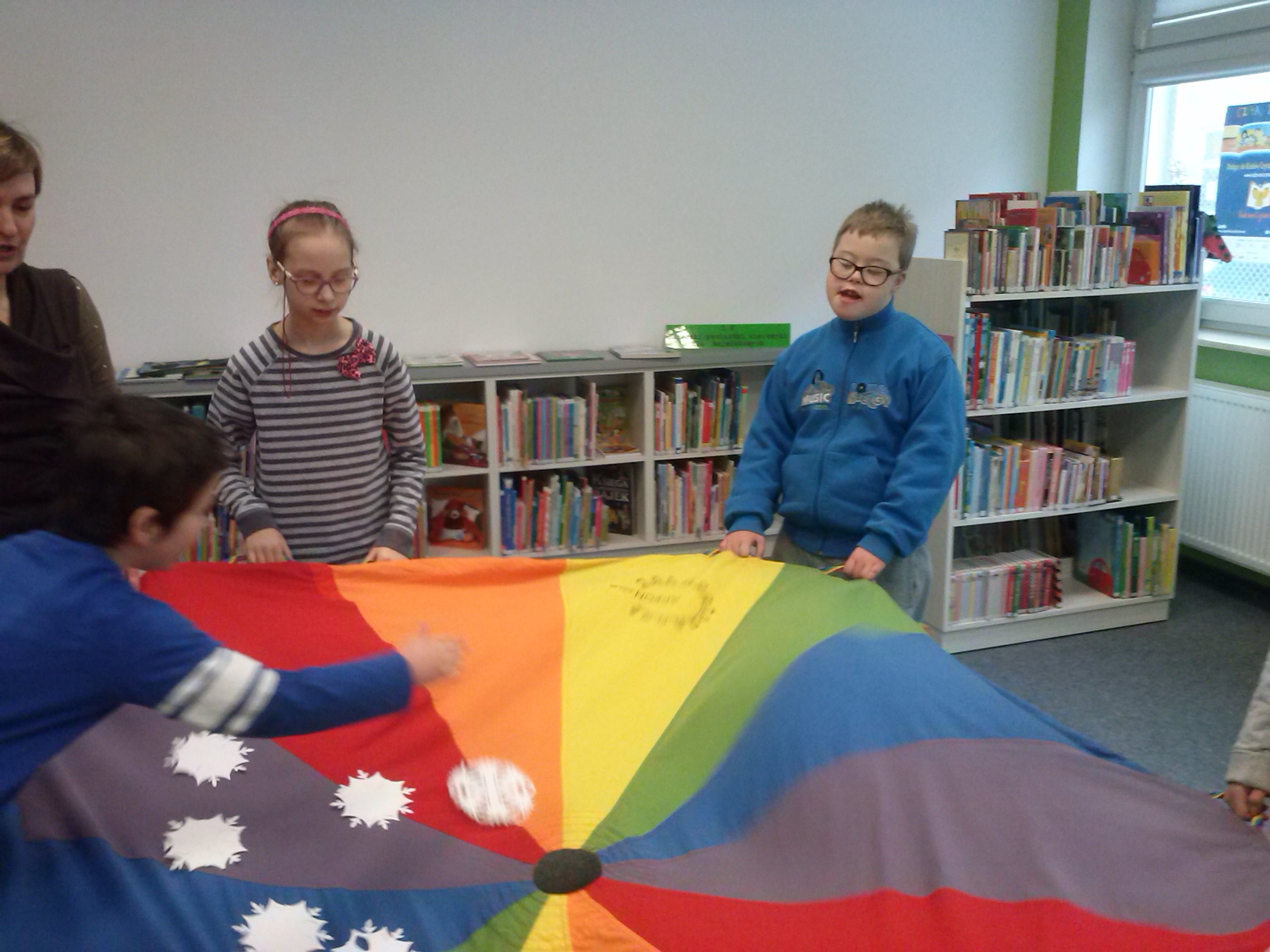 W dniu dzisiejszym uczniowie I a i V a zespołów edukacyjno – terapeutycznych uczestniczyli, kolejny już raz, w zajęciach zorganizowanych w Filii Nr 5 Biblioteki Elbląskiej. Tym razem Pani Małgosia zaproponowała naszym podopiecznym zajęcia związane z aktualną porą roku, czyli zimą. Na wstępie, w rytm muzyki, rozgrzewaliśmy się po zimowym spacerze. Następnie, w oparciu o wiersz Wandy Chotomskiej ,,Dziesięć Bałwanków”, doskonaliliśmy technikę liczenia w zakresie dziesięciu oraz bawiliśmy się śnieżynkami i śnieżnymi kulami. Kolejnym etapem spotkania było wspólne wyklejanie bałwana, którego podziwiać można na korytarzu klas młodszych. Nieco przemarznięci, ale bardzo zadowoleni, wróciliśmy do szkoły.
