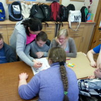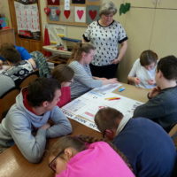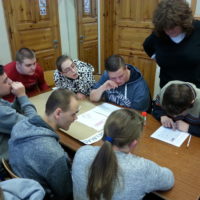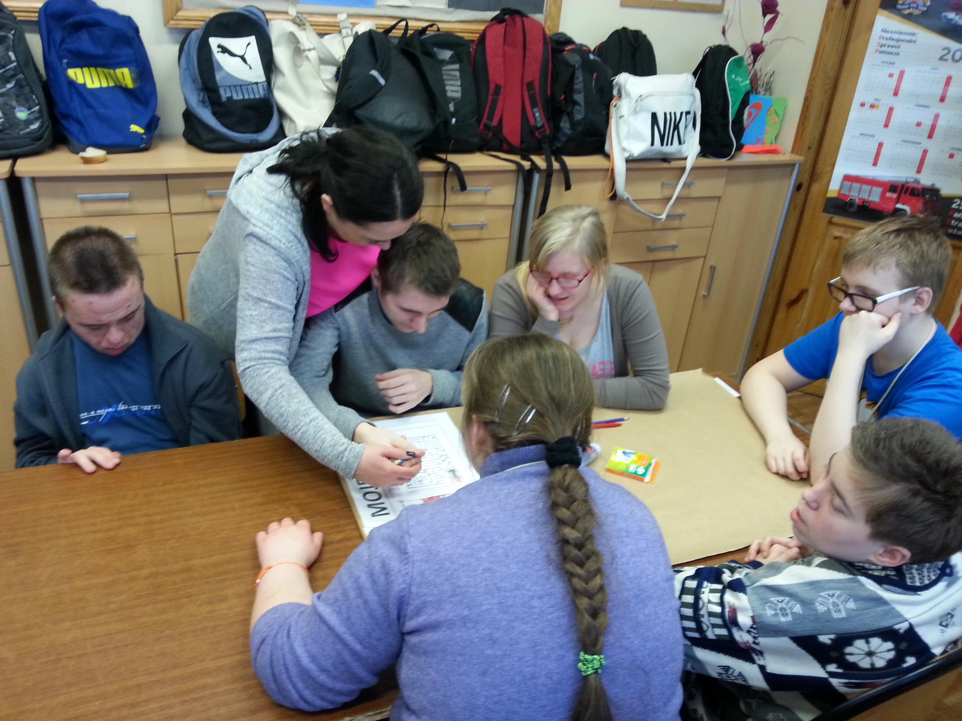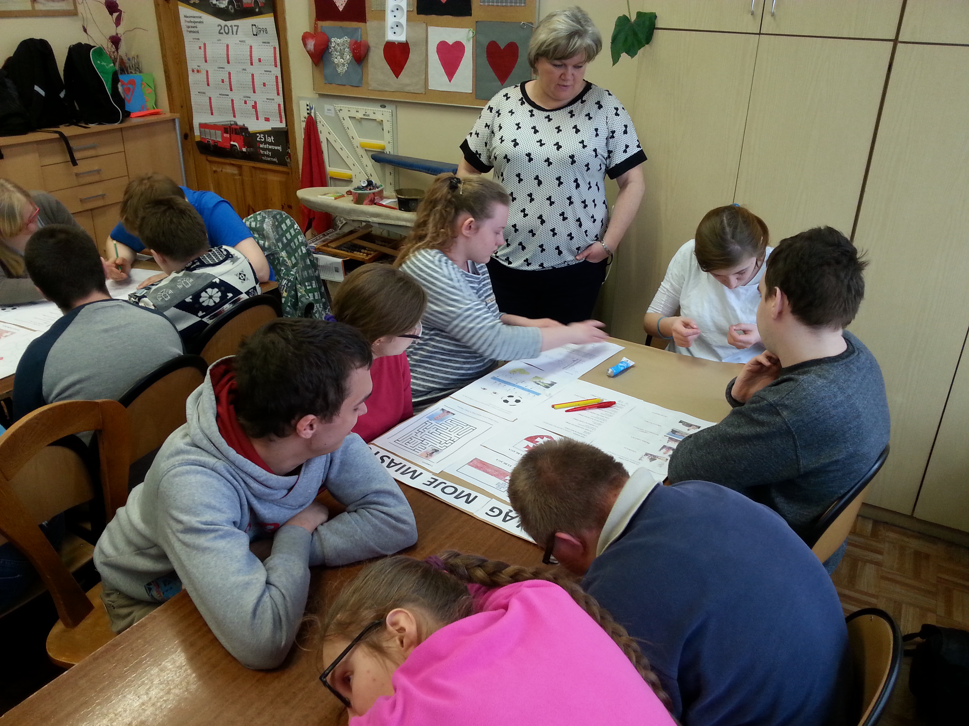 Młodzież rozwiązywała przygotowane zadania z wielkim zapałem i zainteresowaniem. Lekcja zawierała kolejno następujące próby zadaniowe: