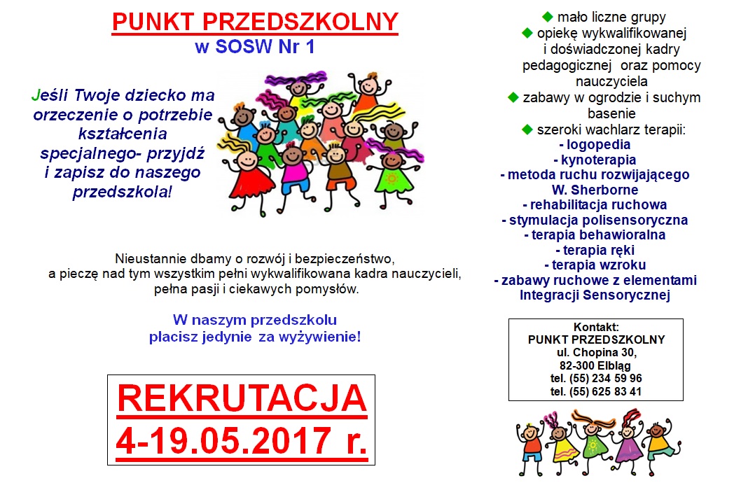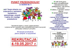 Rekrutacja dla nowo przyjmowanych dzieci rozpocznie się od 4 maja 2017 r.