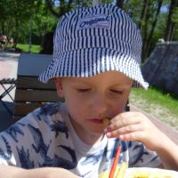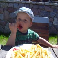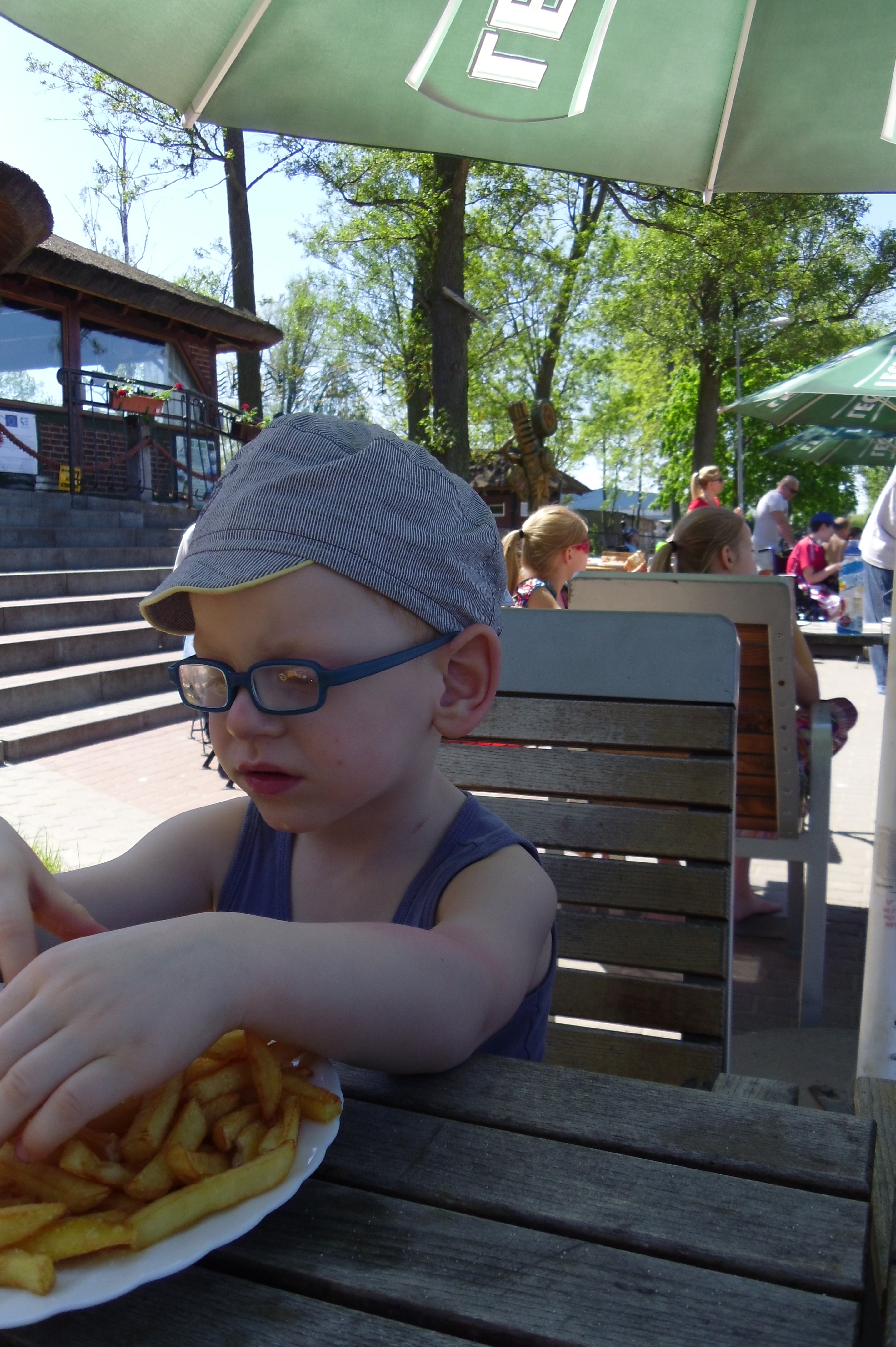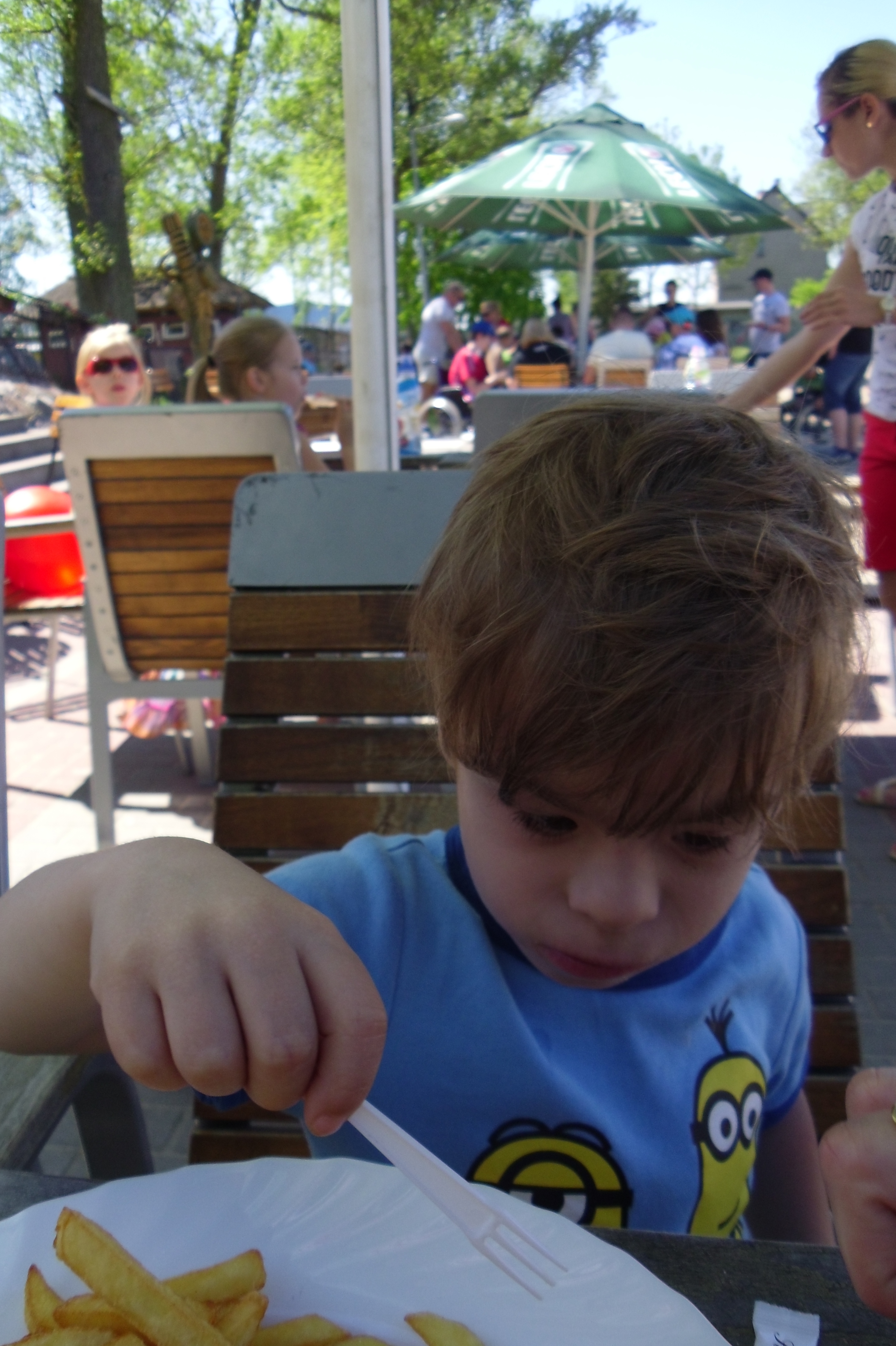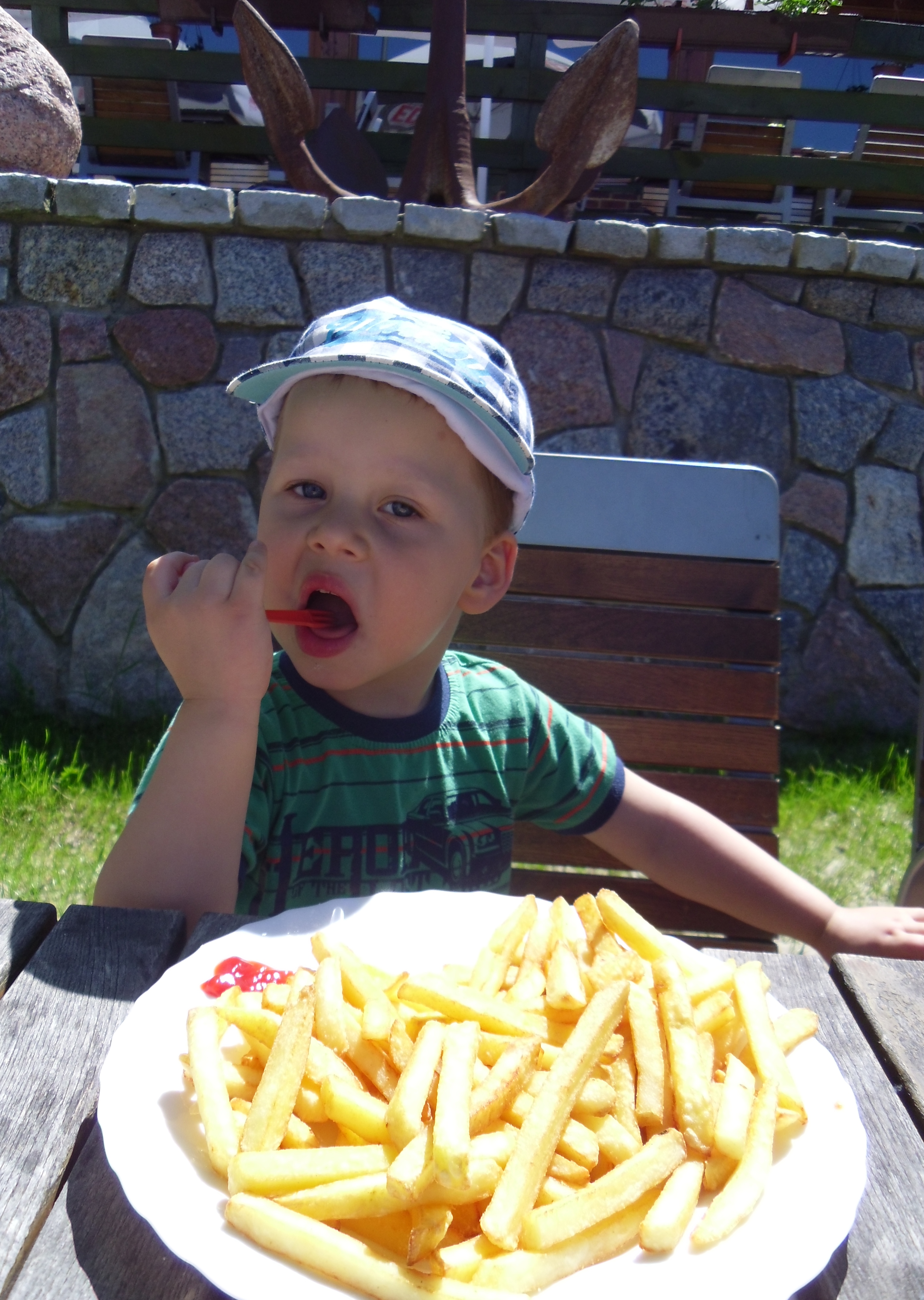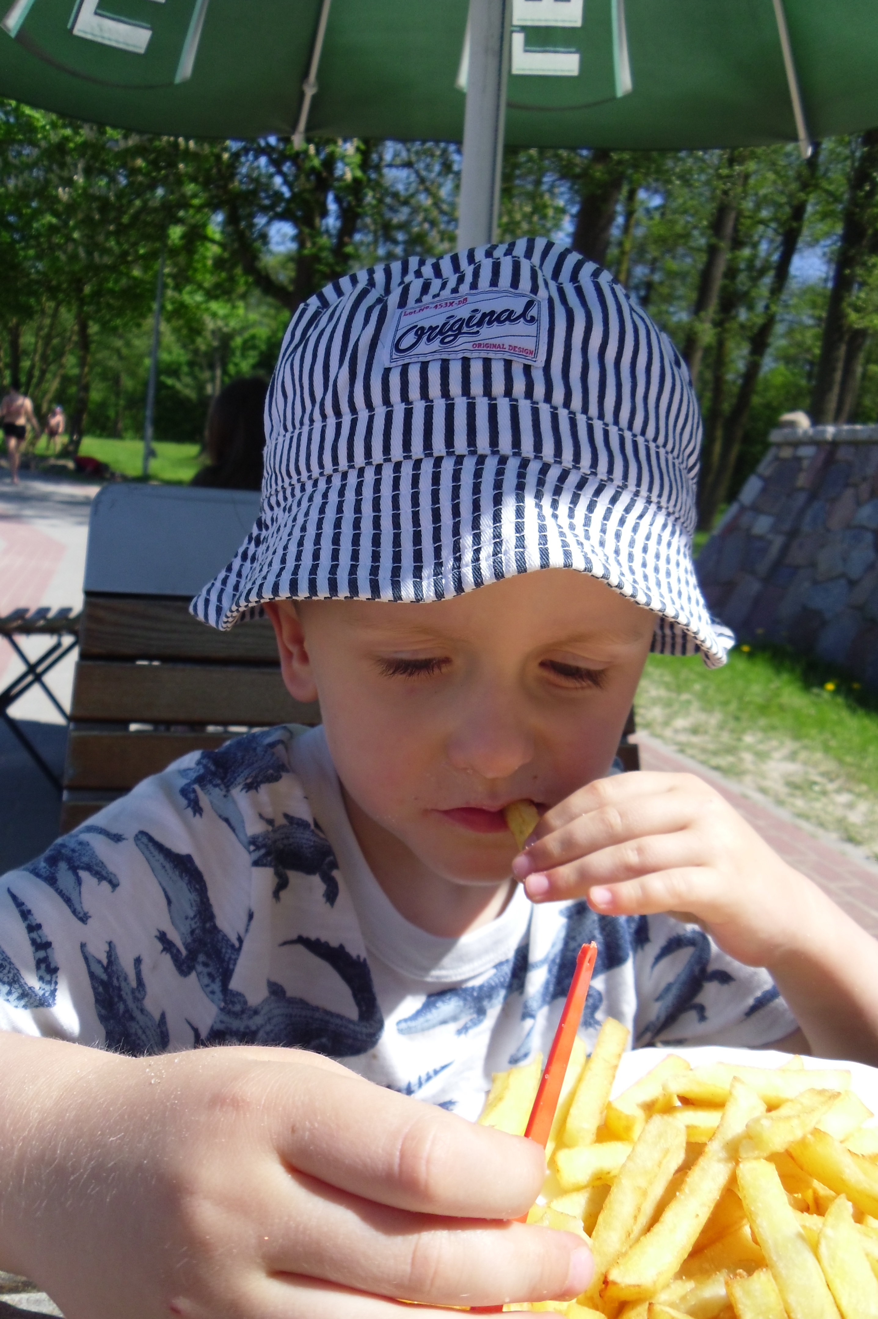 Pod koniec wycieczki przedszkolaki ze smakiem zajadały frytki, smażoną rybę i gofry w tawernie „Fregata”.