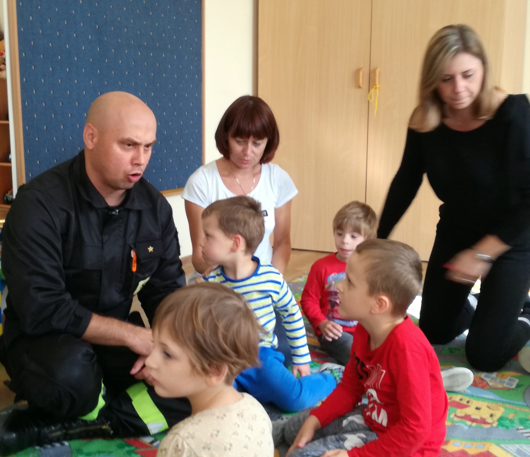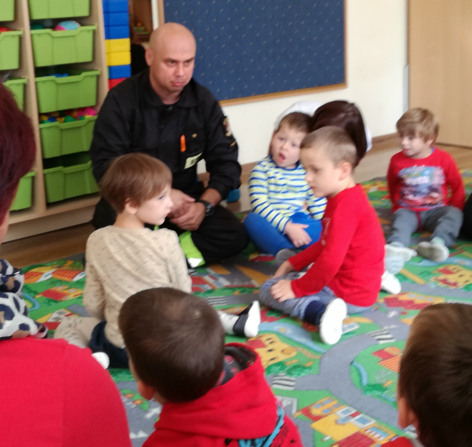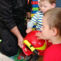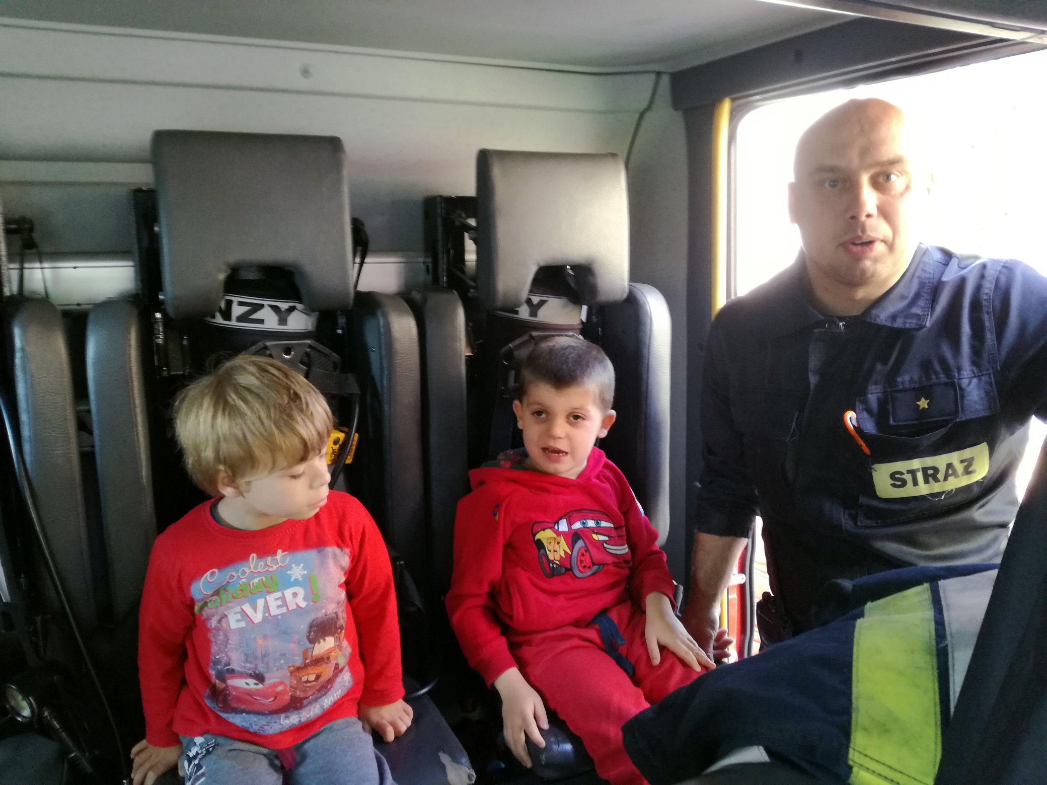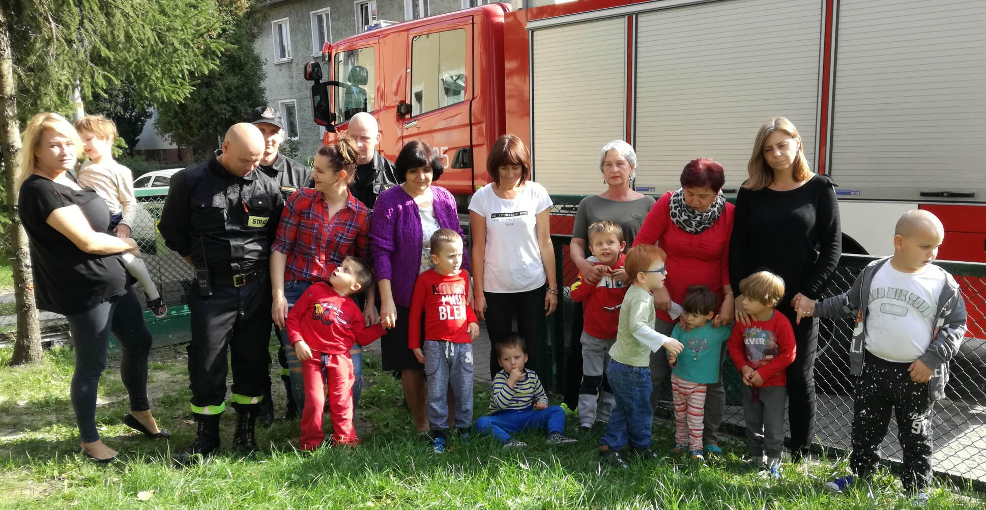 Po ” tygodniu niebieskim”, w którym nasze najmłodsze pociechy aktywnie uczestniczyły w spotkaniach z Policją i Strażą Miejską, przyszedł czas na „tydzień czerwony”. W dniu dzisiejszym odwiedzili nas przedstawiciele Państwowej Straży Pożarnej. Dzieci zapoznały się ze sposobami bezpiecznego zachowania się w czasie zagrożenia pożarowego.Poznały wyposażenie strażaka oraz miały możliwość obejrzeć od wewnątrz wóz strażacki.
