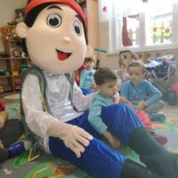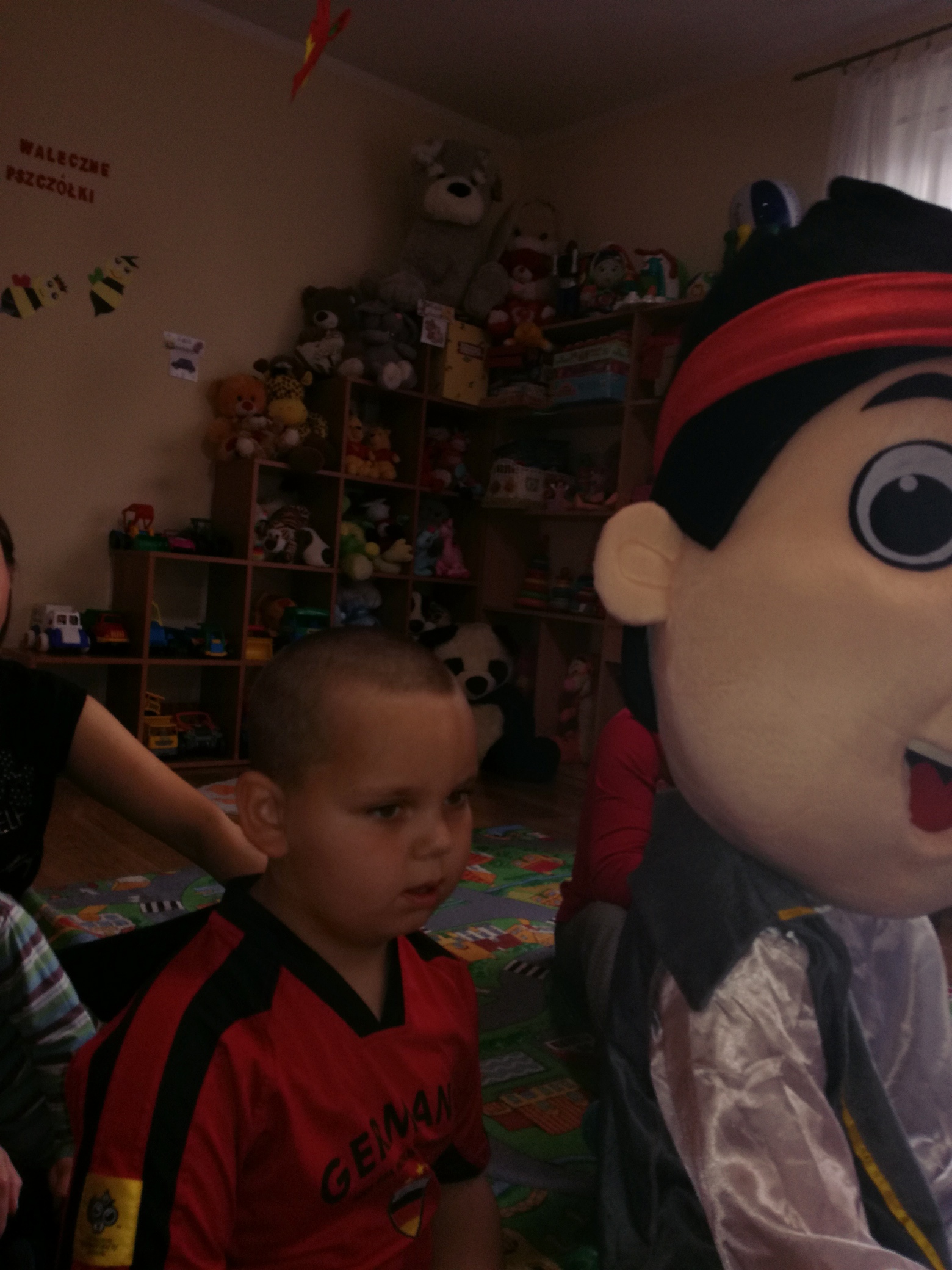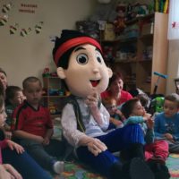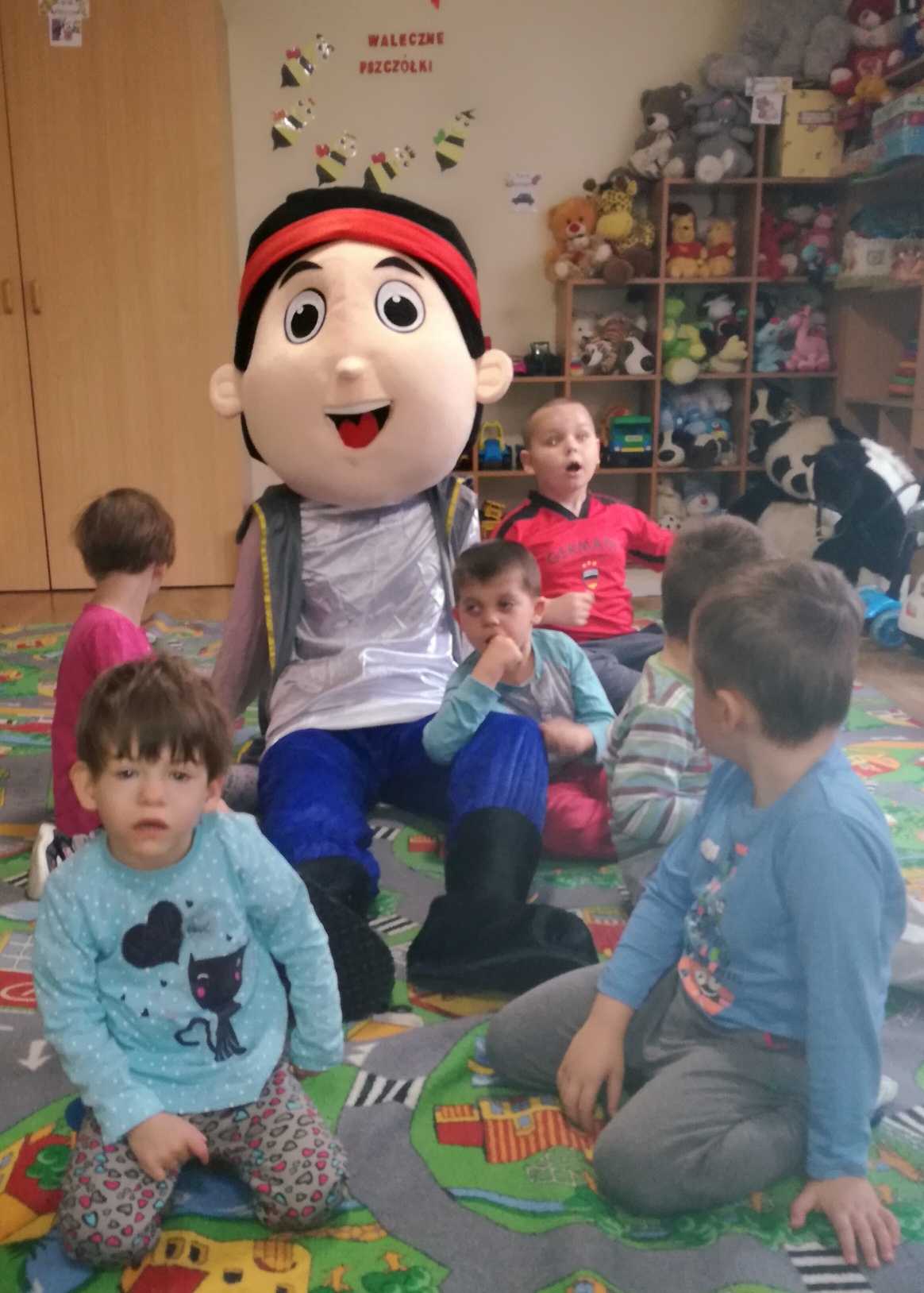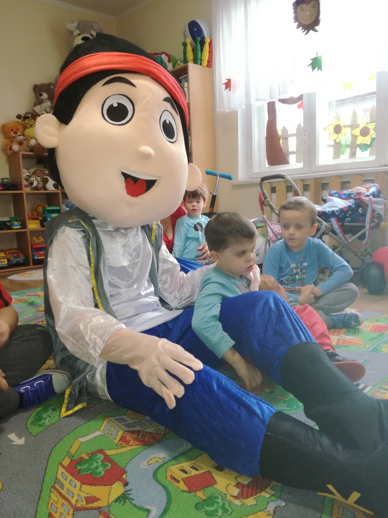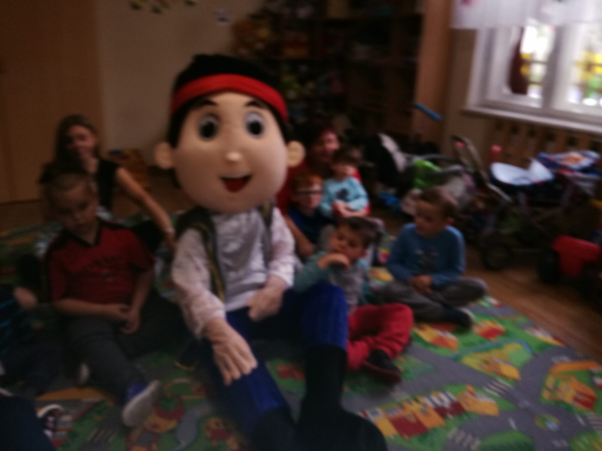 Dzięki uprzejmości uczniów z Kamionka, w dniu dzisiejszym nasze przedszkole odwiedził Pirat Jake z Nibylandii. Podczas spotkania dzieci miały okazję posłuchać opowieści o przygodach pirata oraz wziąć udział w zabawie muzycznej.
