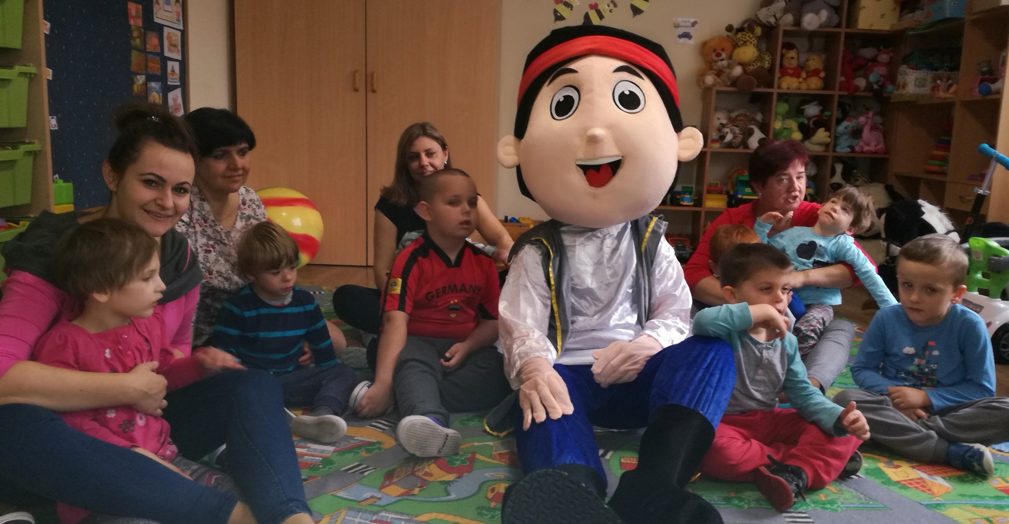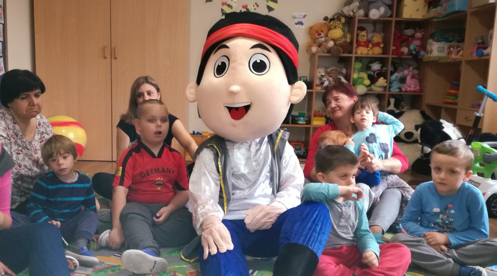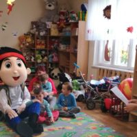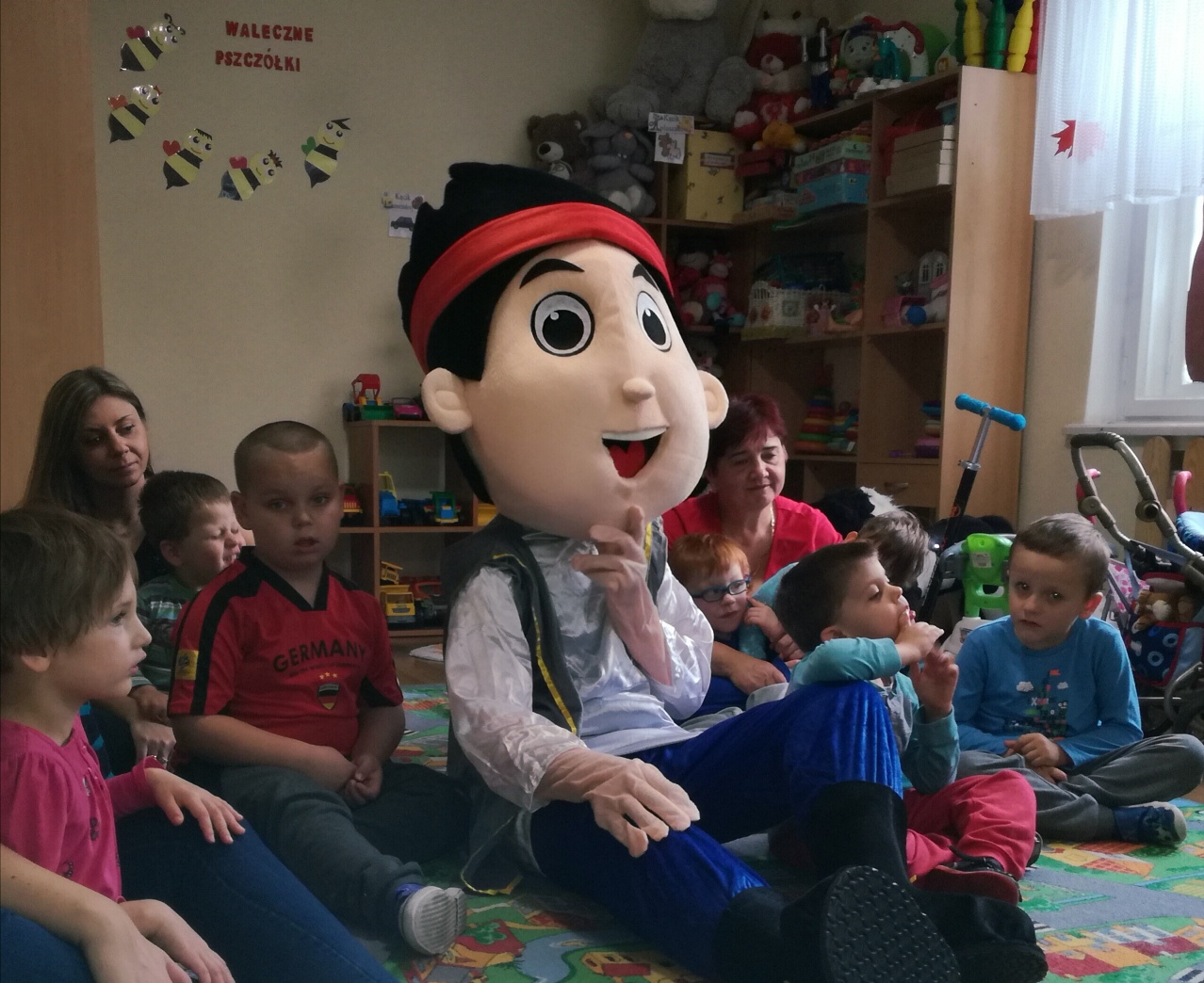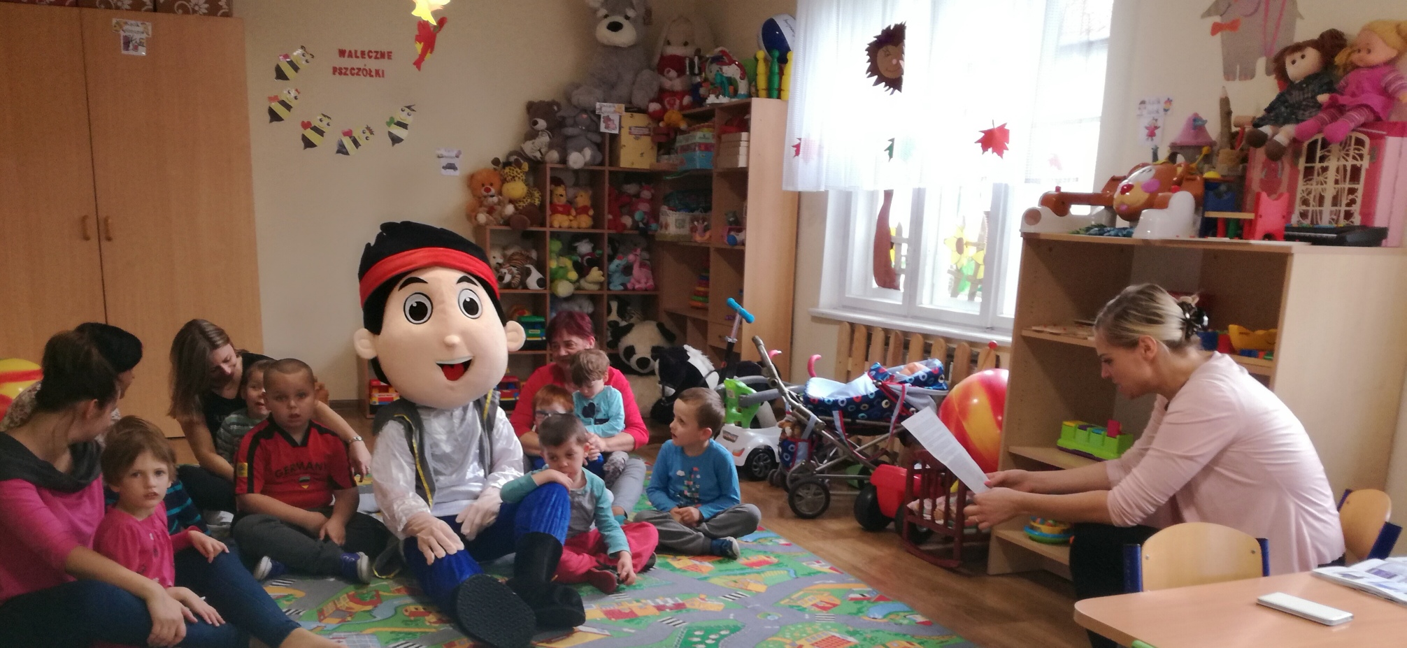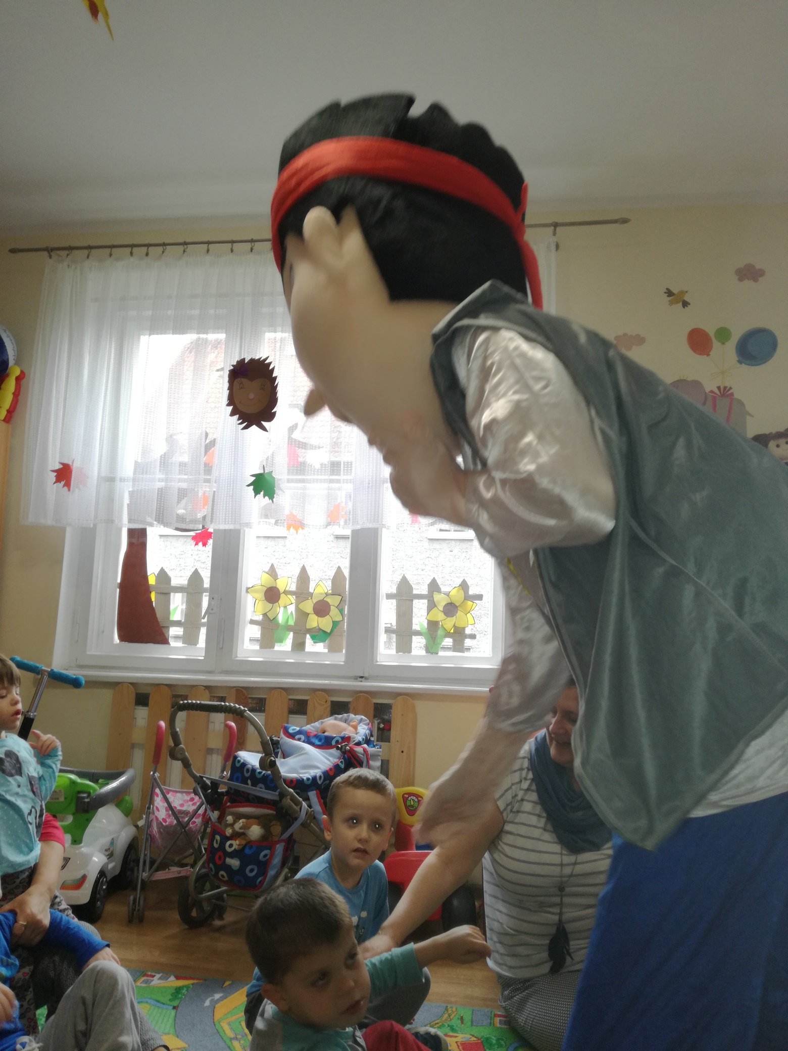 Dzięki uprzejmości uczniów z Kamionka, w dniu dzisiejszym nasze przedszkole odwiedził Pirat Jake z Nibylandii. Podczas spotkania dzieci miały okazję posłuchać opowieści o przygodach pirata oraz wziąć udział w zabawie muzycznej.