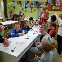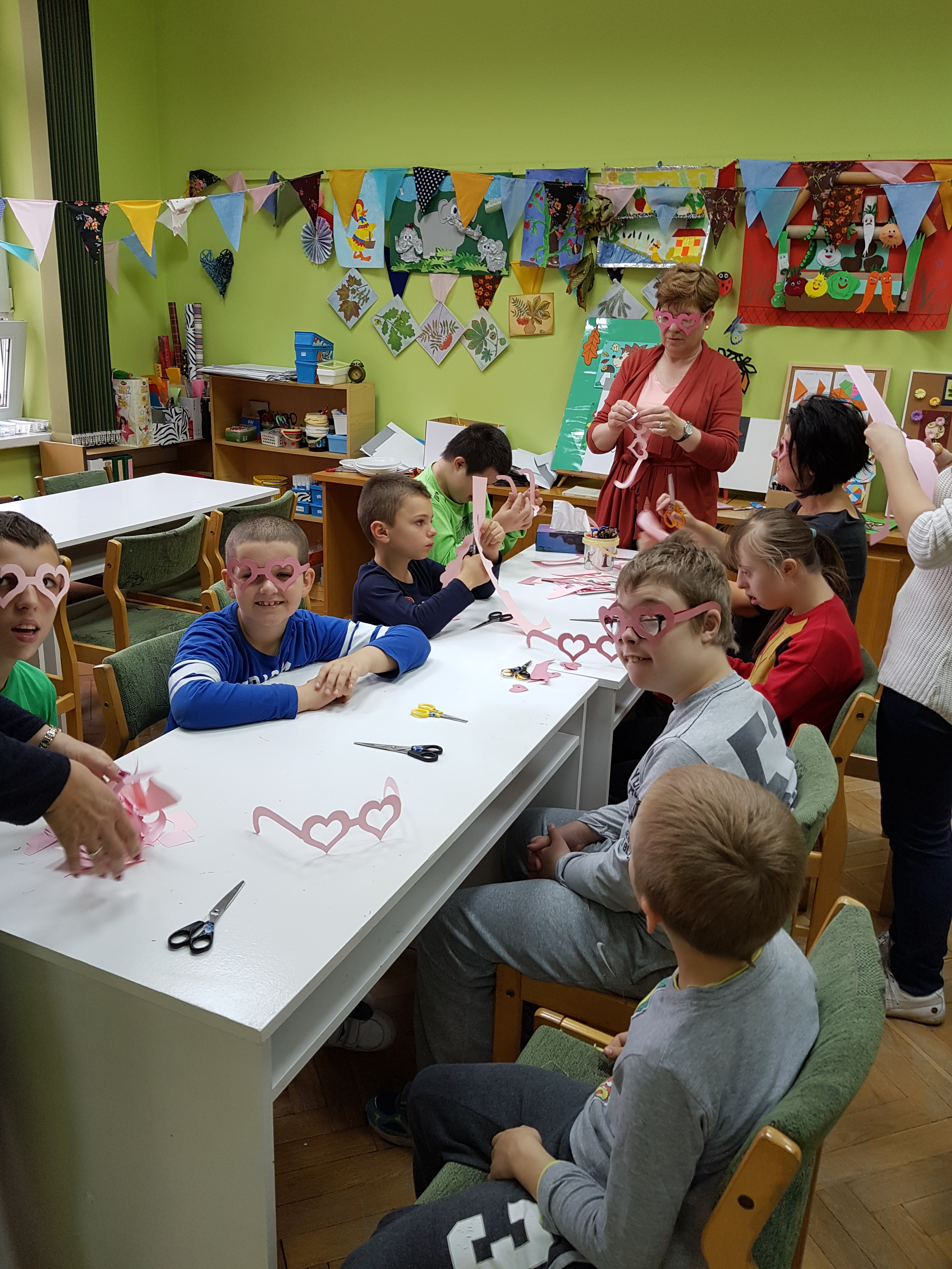 Czy świat widziany przez różowe okulary naprawdę jest piękniejszy? Ależ tak! Mogli się o tym przekonać uczniowie II a i V/VI c zespołów edukacyjno – terapeutycznych na zajęciach, które odbyły się w Filii nr 6 Biblioteki Elbląskiej. Spotkanie w bibliotece zorganizowała, jak zawsze miła i uśmiechnięta, Pani Bożenka. W oparciu o opowiadanie Joanny Krzyżanek pt .,,Helenka i różowe okulary”, udowodniła nam, że nawet w tak pochmurny i deszczowy dzień, może być wesoło i zabawnie, a wystarczy tak niewiele – trochę optymizmu, wiary w siebie i … własnoręcznie wykonane różowe okulary.