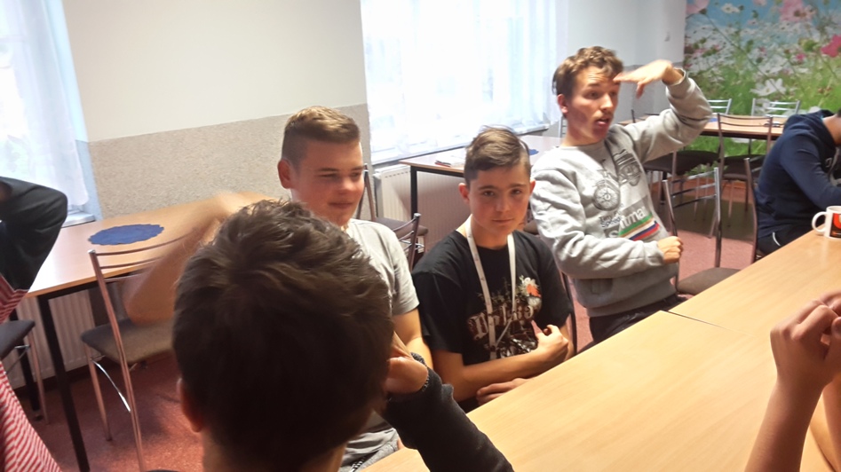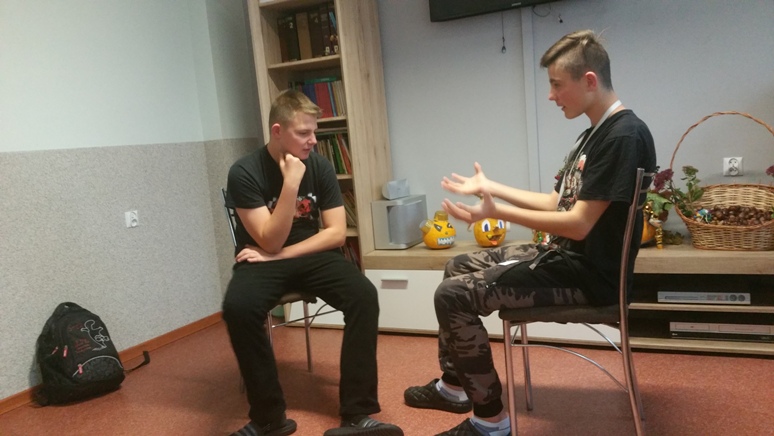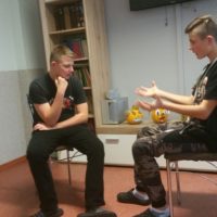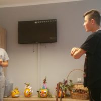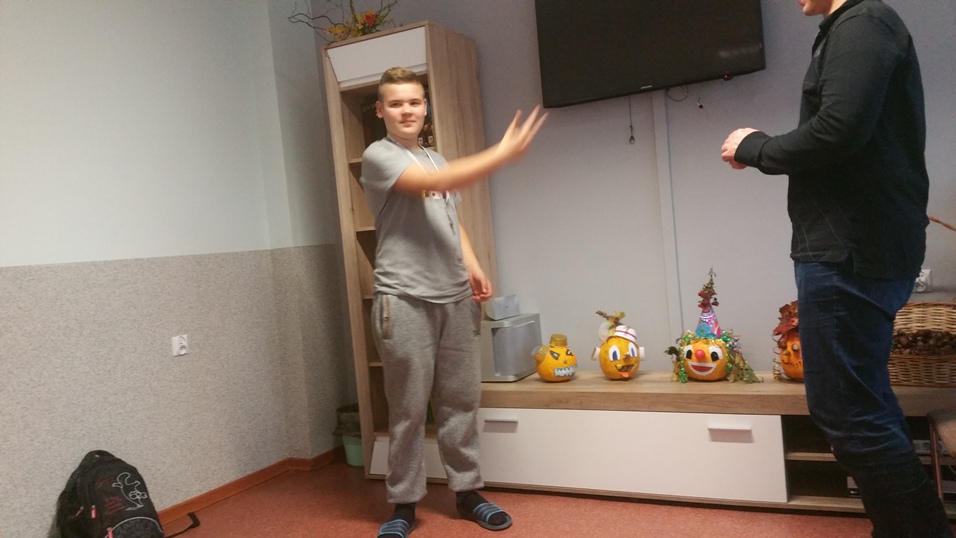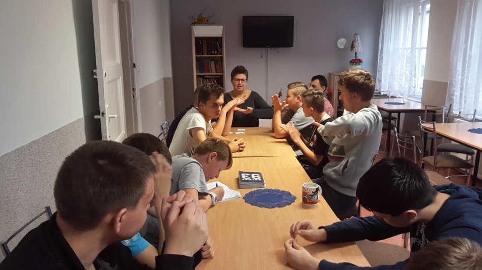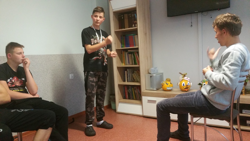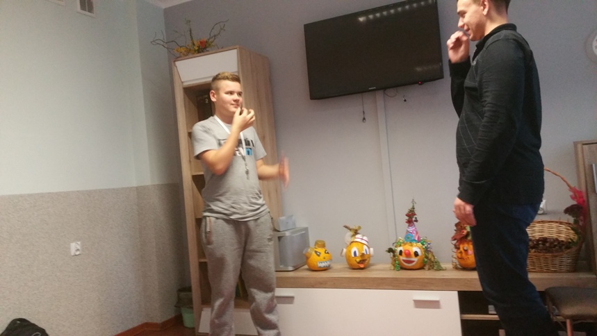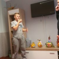 W dniu 17 października 2017 roku w ramach wtorkowych „Spotkań ze sztuką” w III i IV Grupie Wychowawczej uczyliśmy się podstawowych gestów języka migowego, by solidaryzując się z osobami niemówiącymi obchodzić „Październik miesiącem AAC”. Dla wszystkich było to ciekawe doświadczenie budowania i odbioru komunikatów bez użycia słów, a jedynie przy pomocy alternatywnych metod porozumiewania się. Wychowankowie bardzo szybko przyswajali gesty, bez oporu wykorzystywali je spontanicznie przez resztę dnia.