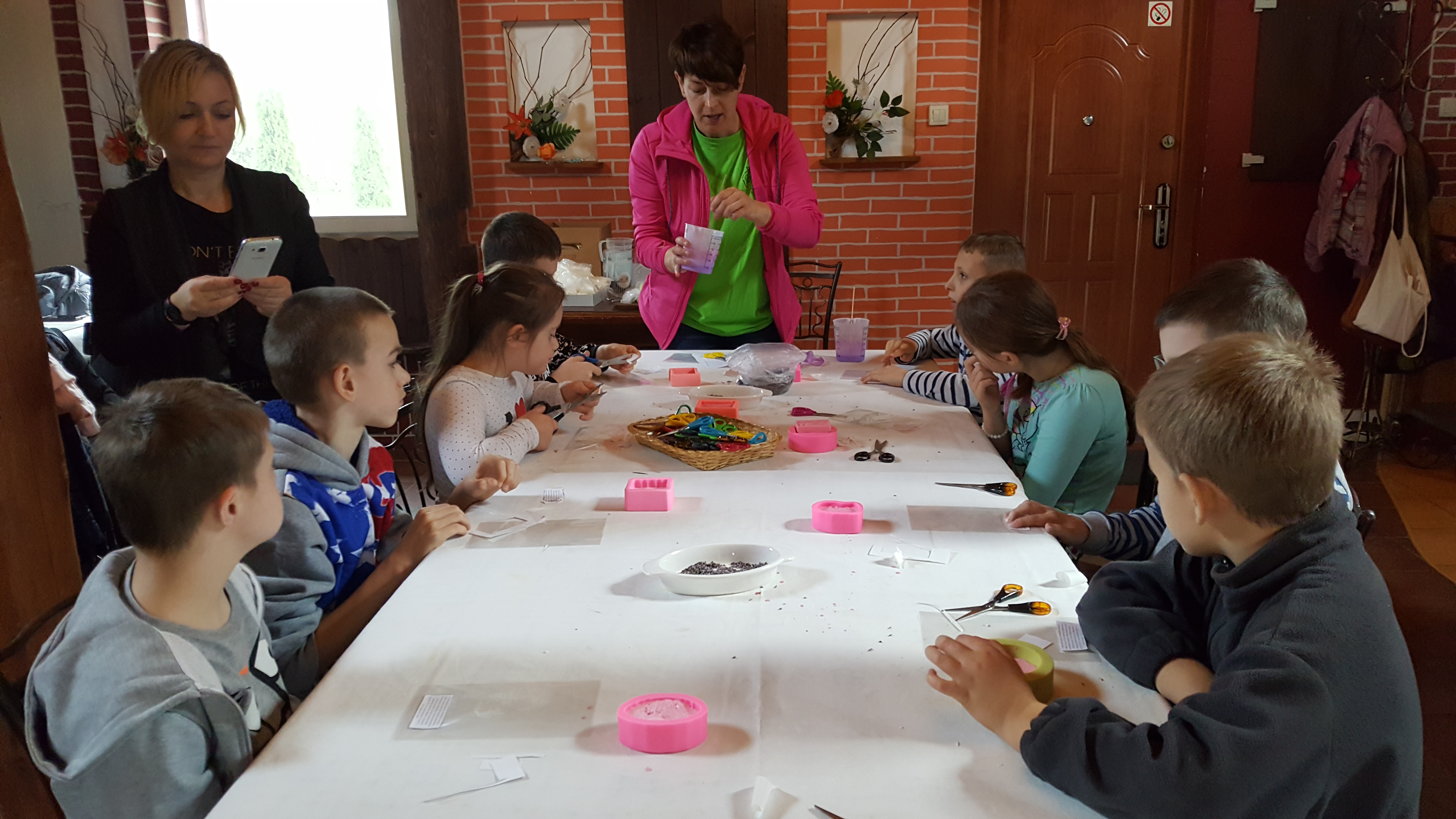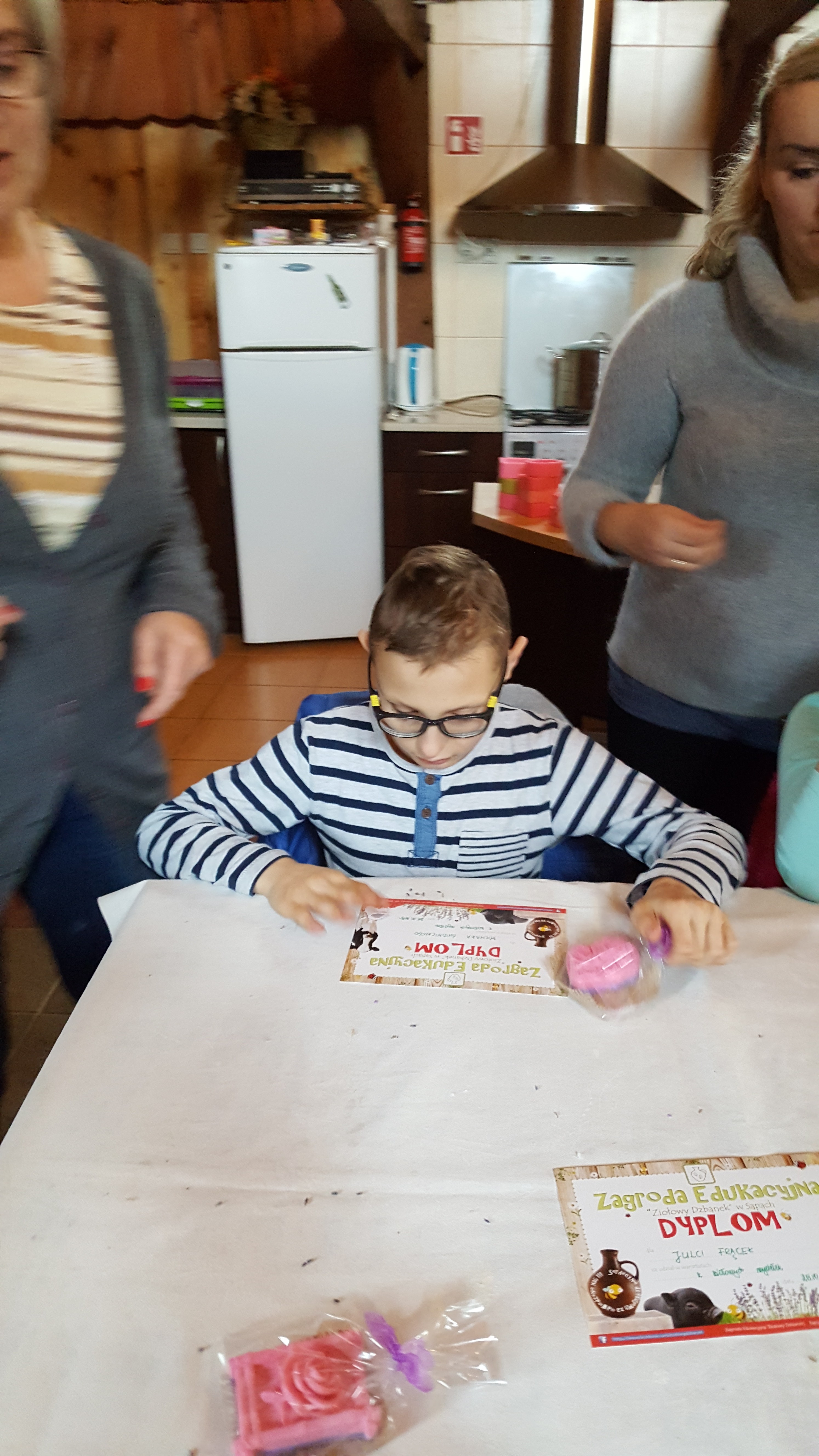 W dniu 26.10.2017 r. klasy: III a, b odbyły wycieczkę do Zagrody Edukacyjnej w Sąpach. Było cudnie, nawet pogoda mam dopisała. Niezapomnianych wrażeń dostarczyła uczniom możliwość samodzielnego wykonania, pachnących różą i lawendą, mydełek. Radość na twarzach dzieci wywołały także zwierzątka -świnka, kózki i kaczki. Przemiła gospodyni-pani Ewa poczęstowała swojskim kompotem i pysznymi babeczkami. Pobyt w „Ziołowym Dzbanku” był magiczny i relaksujący wśród cudnie pachnących ziół i przy ciepłym blasku kominka. Aż, nie chciało się wracać… 🙂