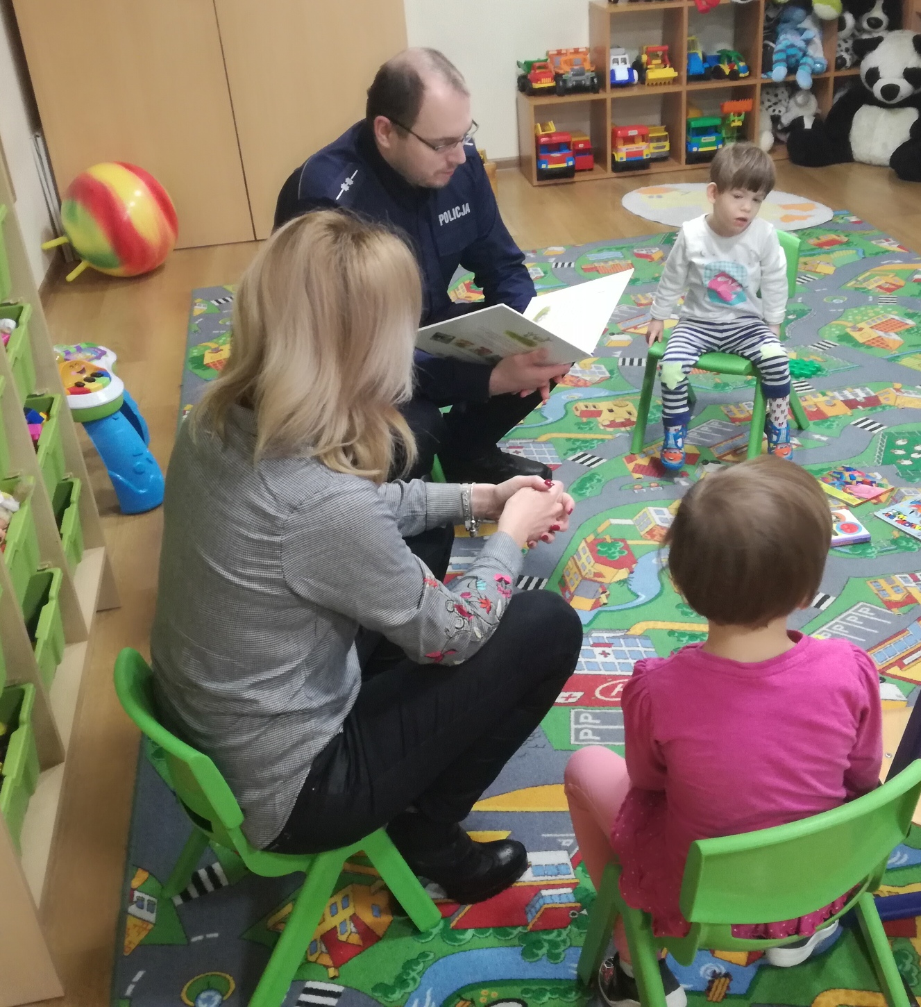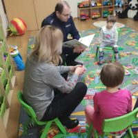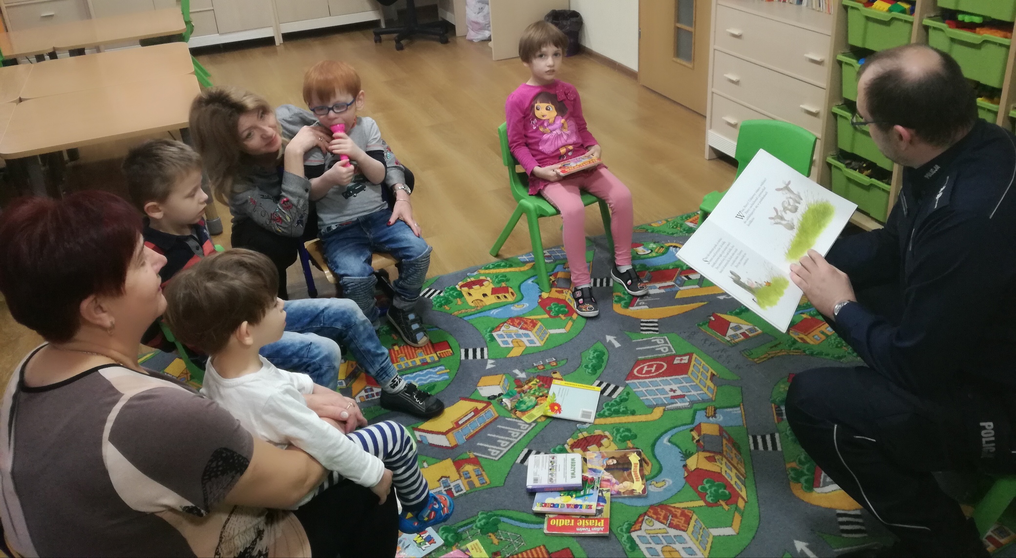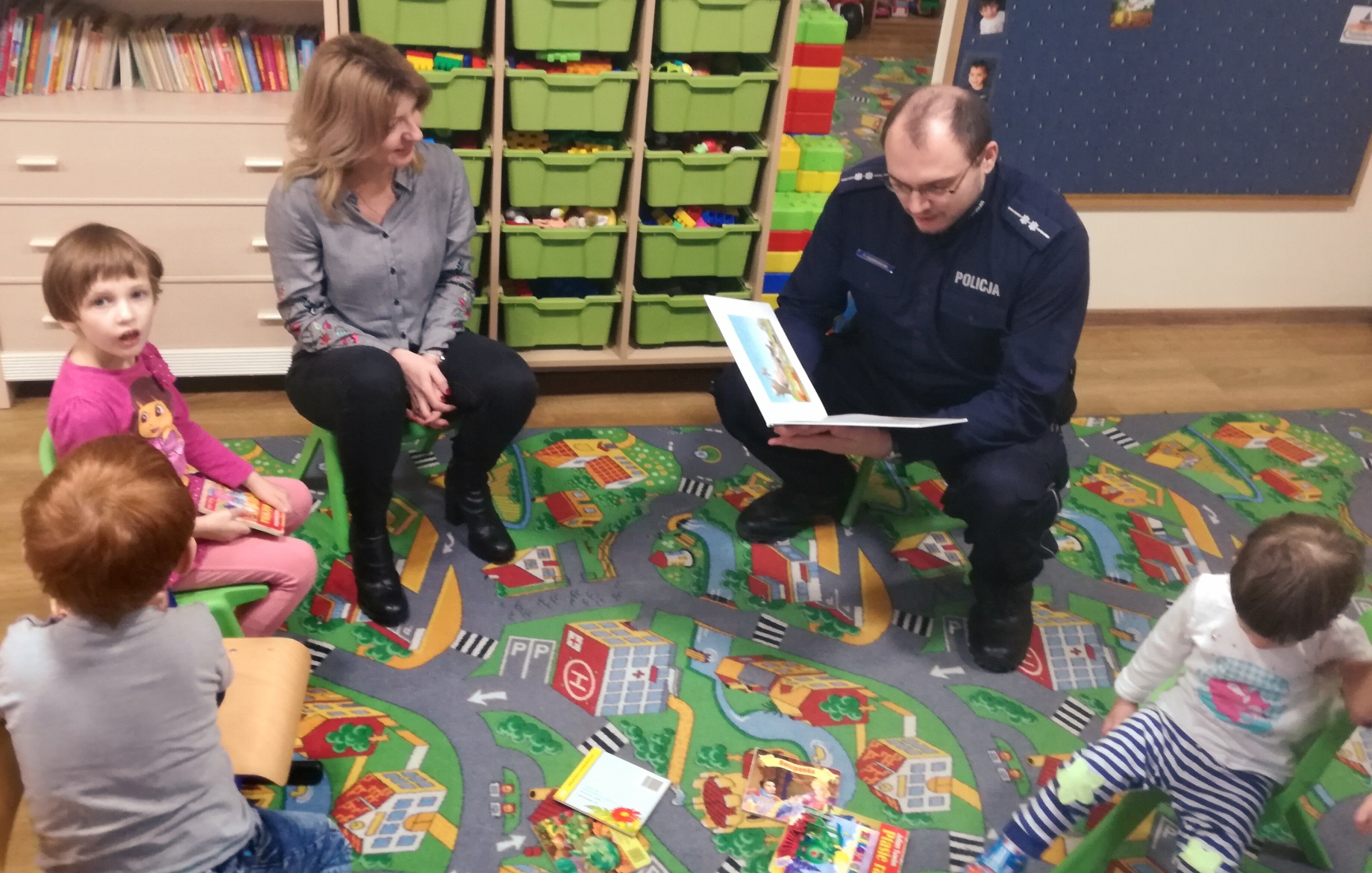 Nie do przecenienia jest rola, jaką w wychowaniu i rozwoju człowieka, i to już od najmłodszych lat, odgrywa kontakt z książką, rozwijając wrażliwość i wpływając na rozwój intelektualny młodego słuchacza i czytelnika. Rozumiejąc tego istotę -” Waleczne Pszczółki ” biorą udział w społecznej kampanii pn.„Cała Polska czyta dzieciom” . W dniu dzisiejszym odwiedził nas pan policjant. Mundurowy w ramach kampanii przeczytał przedszkolakom opowiadanie pod wymownym tytułem „Wyprawa ratunkowa”. Spotkanie było też doskonałą okazją do kształtowania prawidłowych postaw i bezpiecznych zachowań, jakie powinny towarzyszyć najmłodszym w codziennym życiu. Dzieci z pewnością na długo zapamiętają tę niecodzienną wizytę policjanta w swoim przedszkolu.