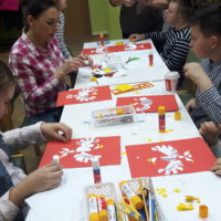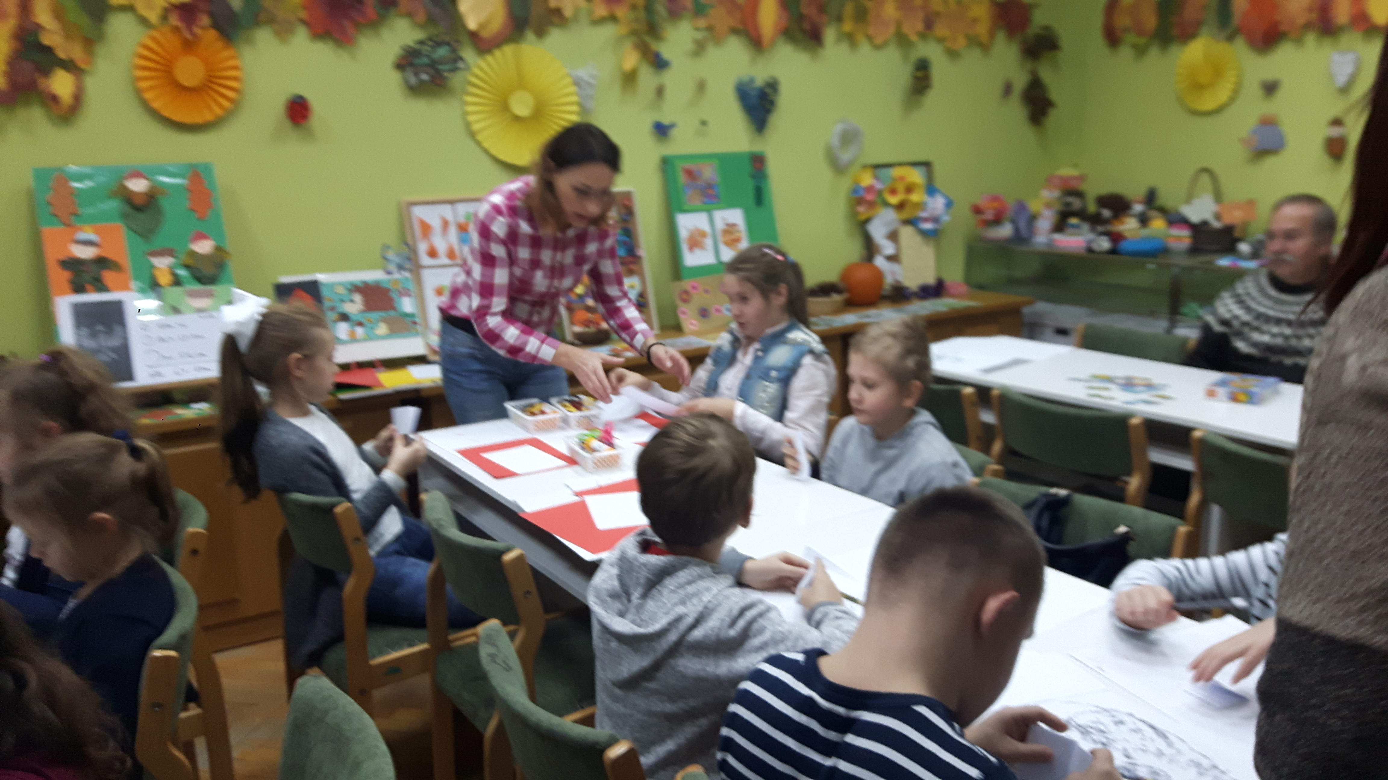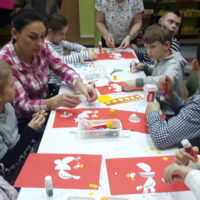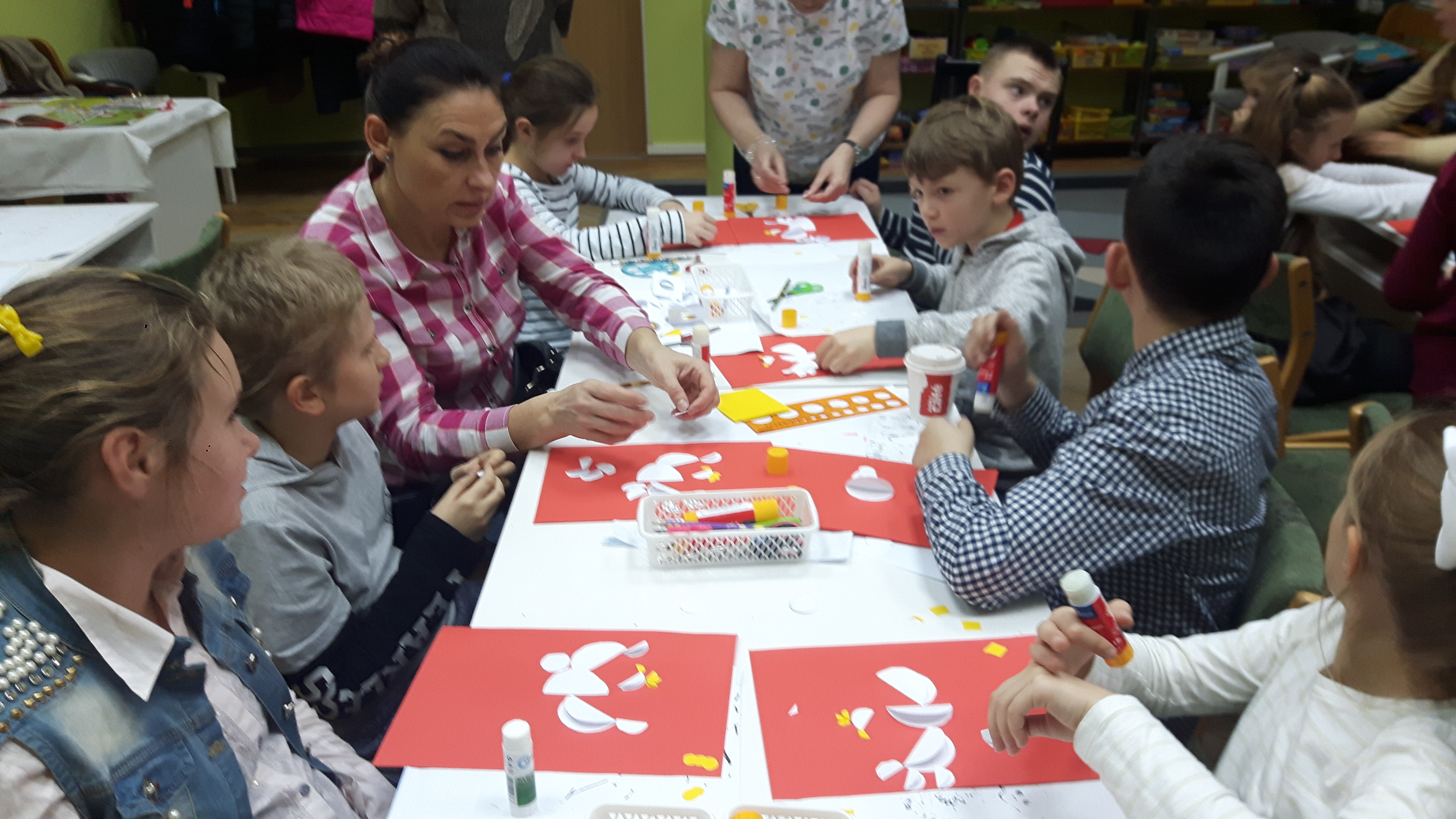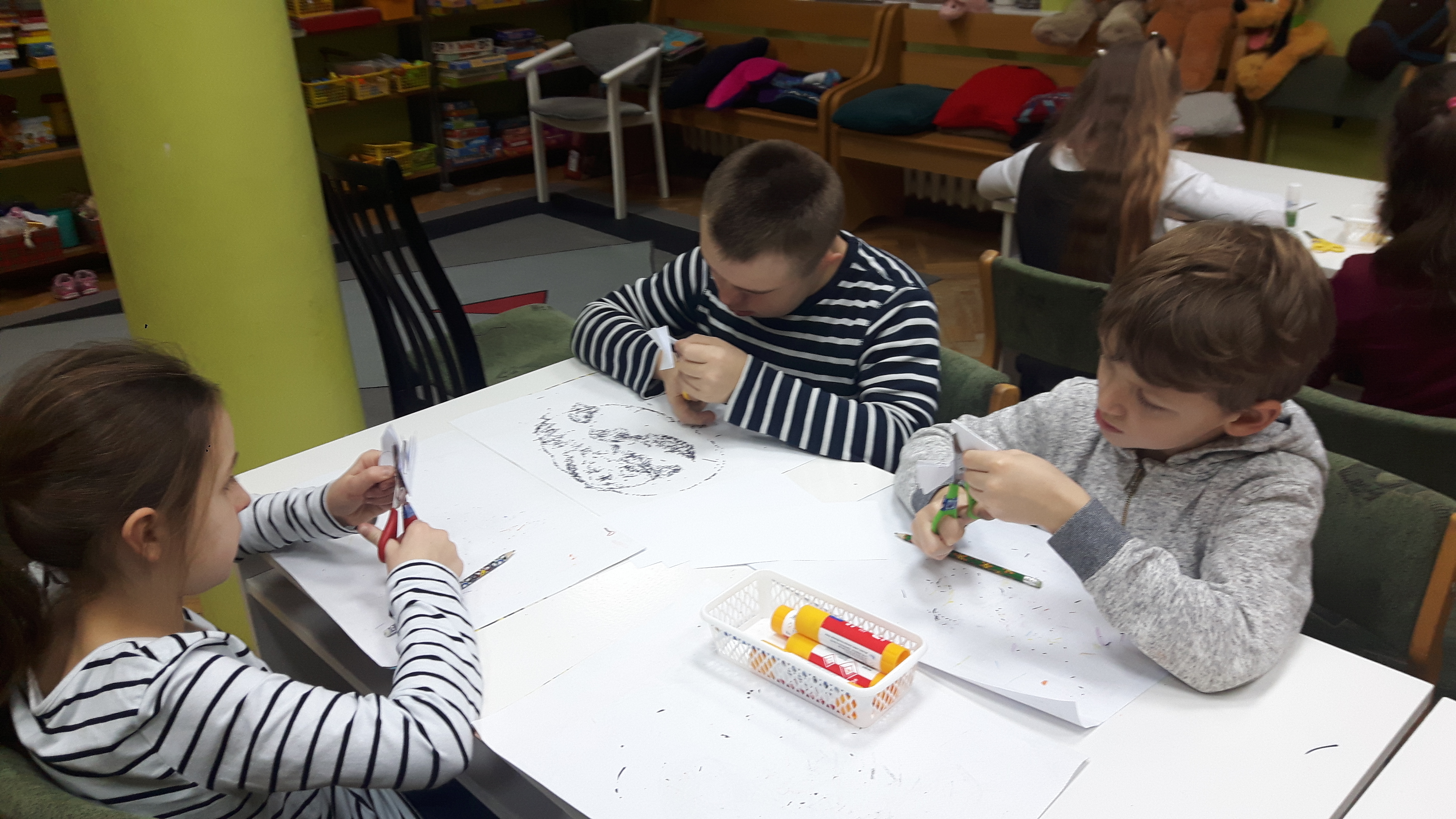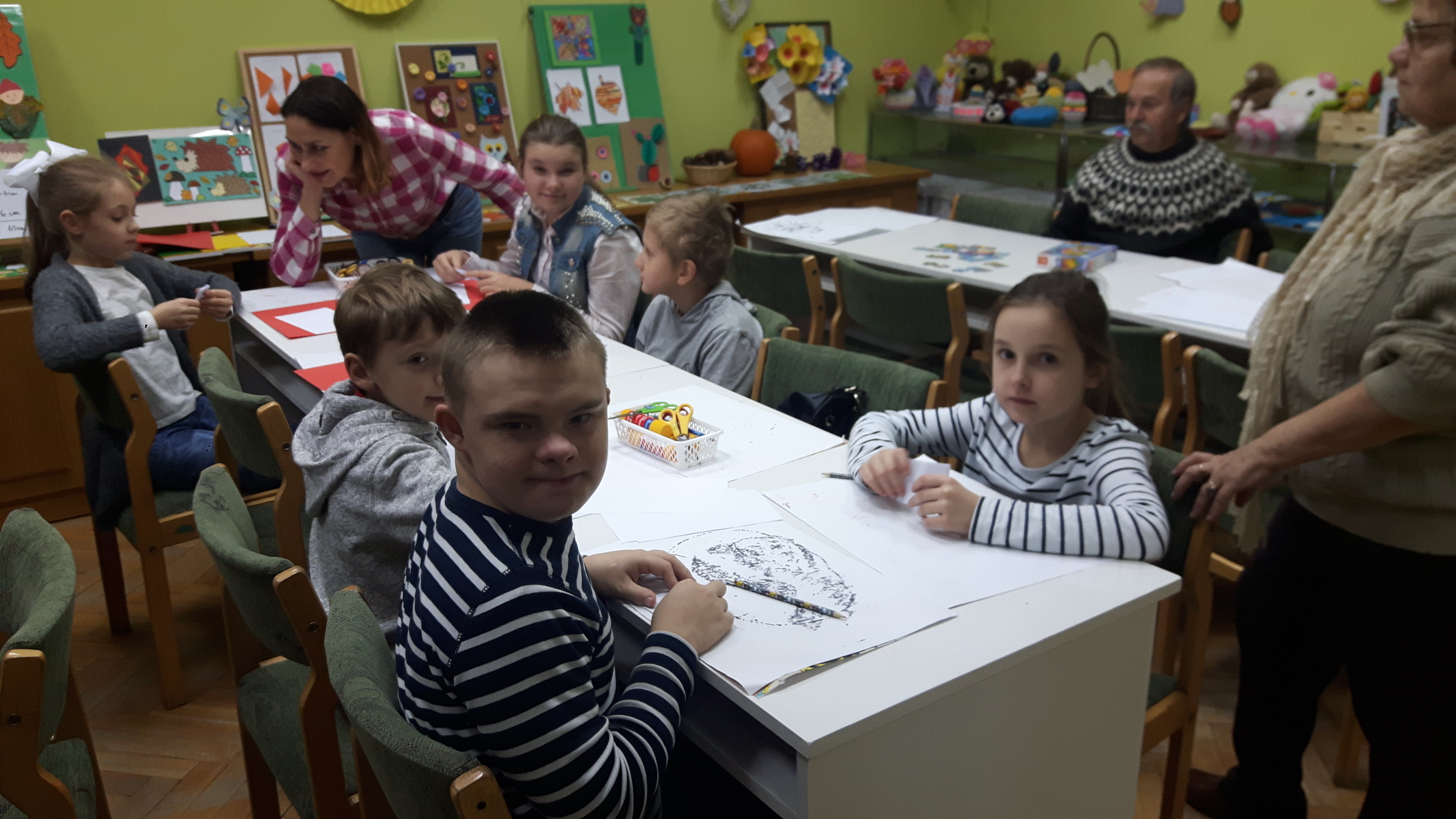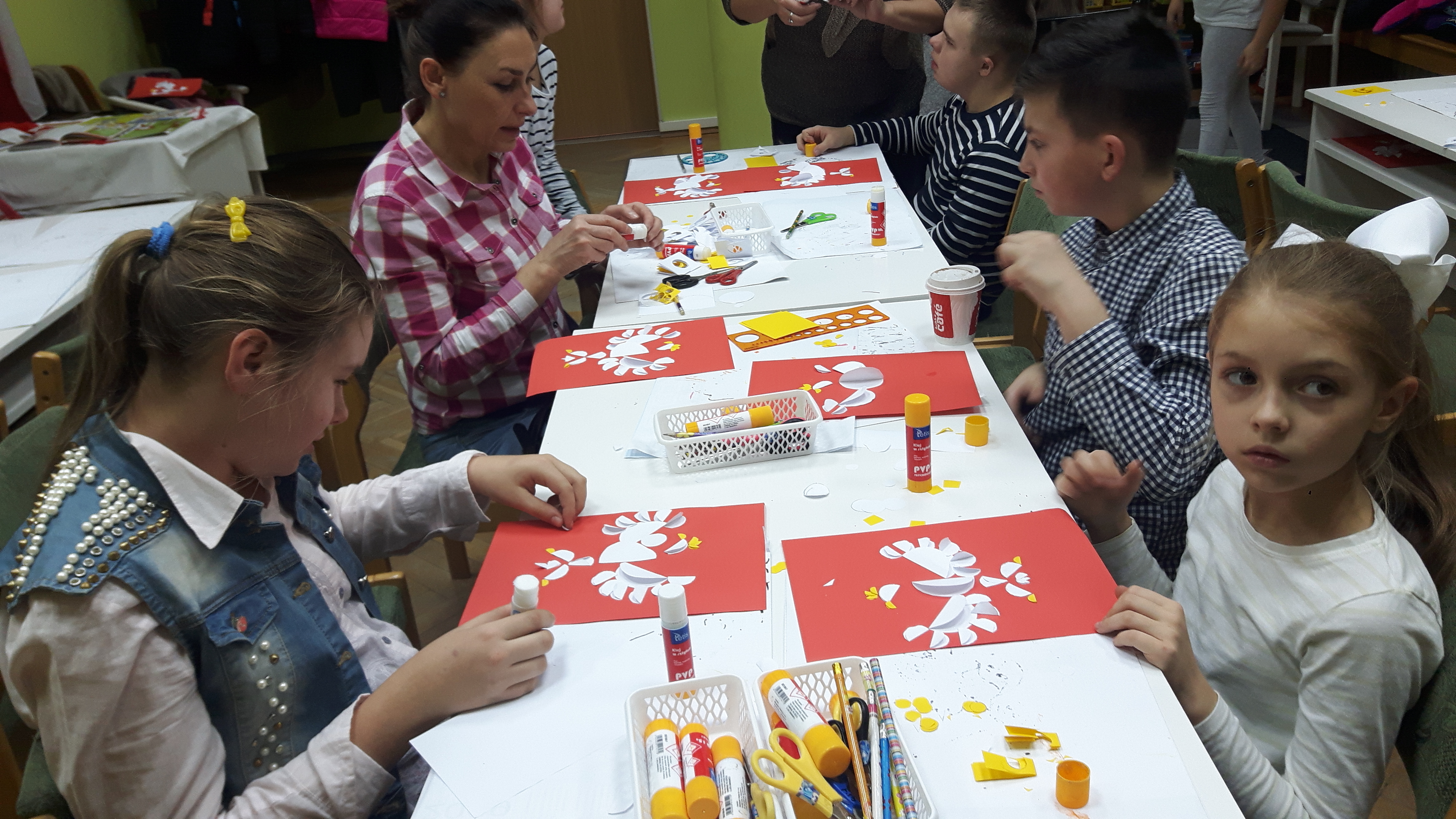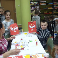 W klimacie zbliżającego się Święta Niepodległości, dnia 7 listopada uczniowie klas: 7 zesp. edukac.-terap. oraz 5/6 d SP uczestniczyli w popołudniowych zajęciach plastyczno-technicznych w Bibliotece Elbląskiej Filia nr 6 w Elblągu przy ul. Słonecznej. W ramach rozwijania zamiłowań artystycznych oraz pogłębiania poczucia tożsamości narodowej opartej na więzi z krajem, uczniowie koncentrowali uwagę na wyglądzie godła Polski, którego symbolikę wyraża Orzeł o szeroko rozpostartych skrzydłach i złotej koronie. Owoce twórczej ekspresji uczniów dowiodły, iż żadnej z owych wymownych cech- przymiotów narodowego godła nie zabrakło na kartach pracy, zresztą sami oceńcie. ..Udział dzieci w zajęciach pozalekcyjnych posłużył jako cenna metoda oglądowa w toku rozmów o genezie państwa polskiego w oparciu o legendę „O Lechu i białym orle”.