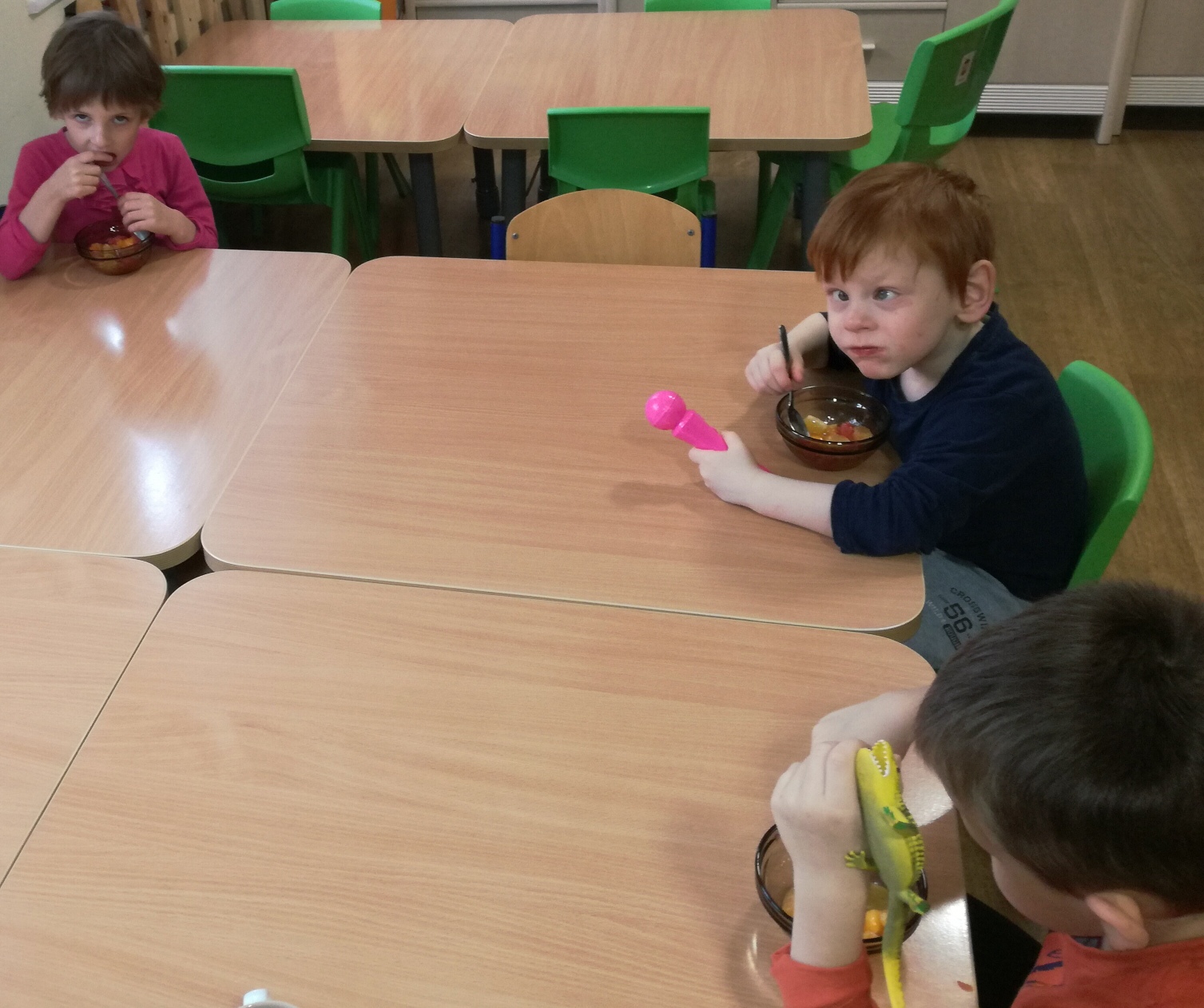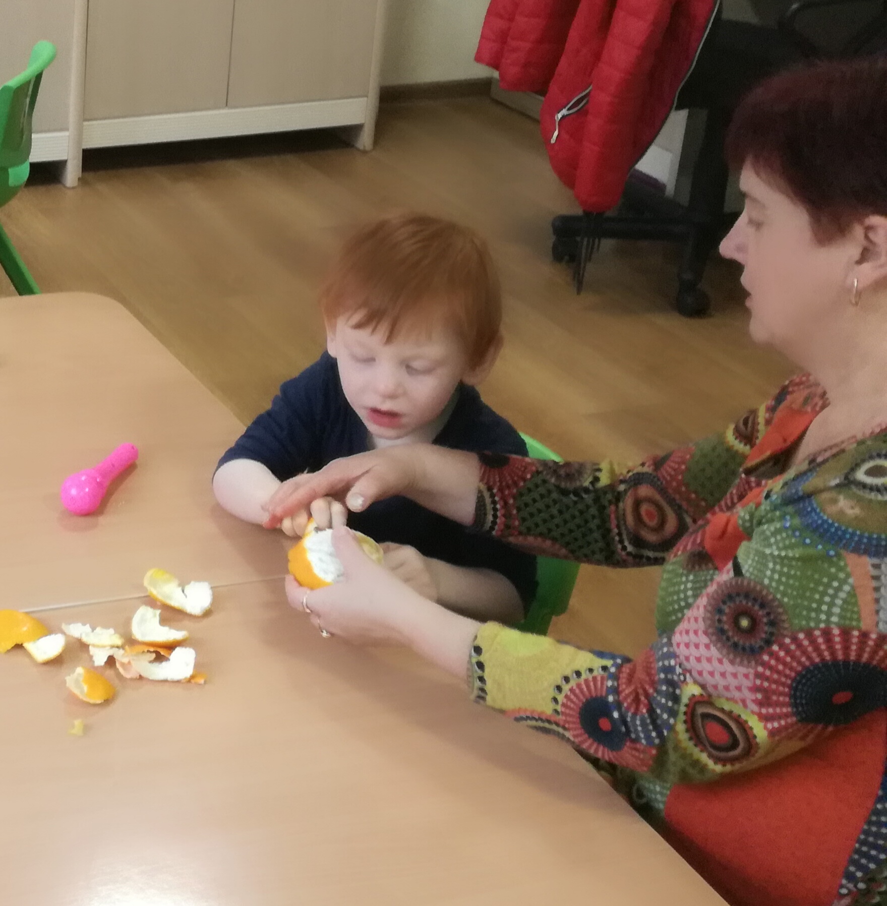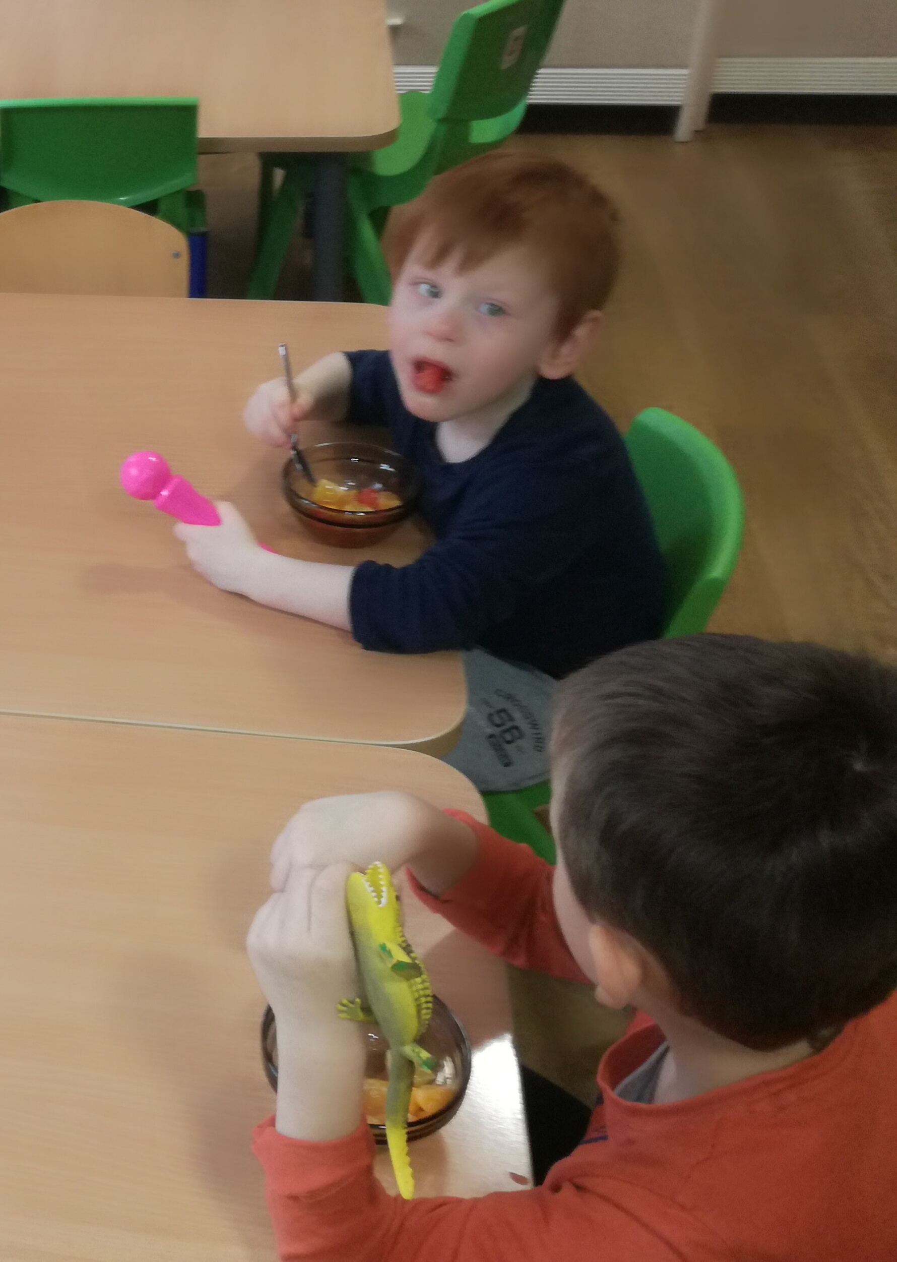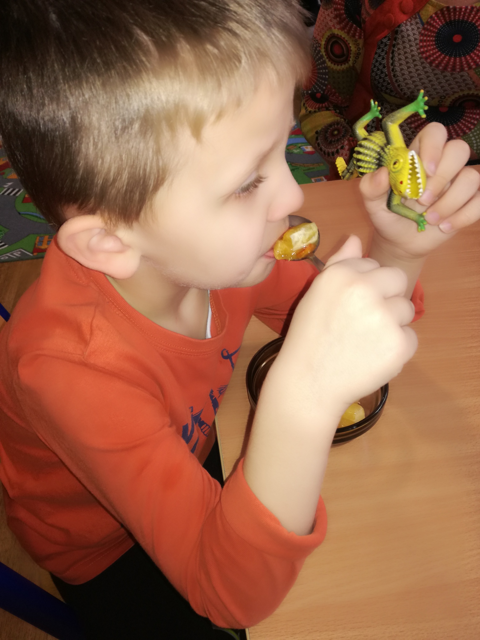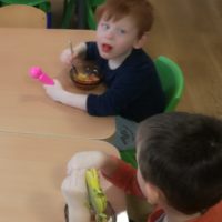 13 listopada było w naszym przedszkolu przesmacznie, a przede wszystkim zdrowo! Dzieci z grupy „Waleczne pszczółki” na zajęciach własnoręcznie przygotowały pyszną, witaminową sałatkę. Dzieci miały do dyspozycji różne pomarańczowe świeże owoce. Były kaki, pomarańcze, mandarynki, brzoskwinie a nawet grejpfrut . Wszyscy mieli soczyste minki na widok tak smakowitych owoców i każdy ochoczo zabrał się do pracy. Dokładnie umyliśmy rączki, a następnie posegregowaliśmy umyte wcześniej przez panią owoce. Każdy dostał swój owoc i tak przystąpiliśmy do obierania. Pani pomogła w krojeniu cząstek owoców. Przyrządzanie sałatki dało dzieciom wiele satysfakcji jednocześnie uświadamiając jak ważną rolę odgrywają witaminy we właściwym funkcjonowaniu organizmu. Sałatka udała się, wyszła wspaniale!