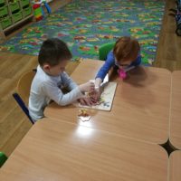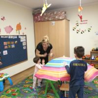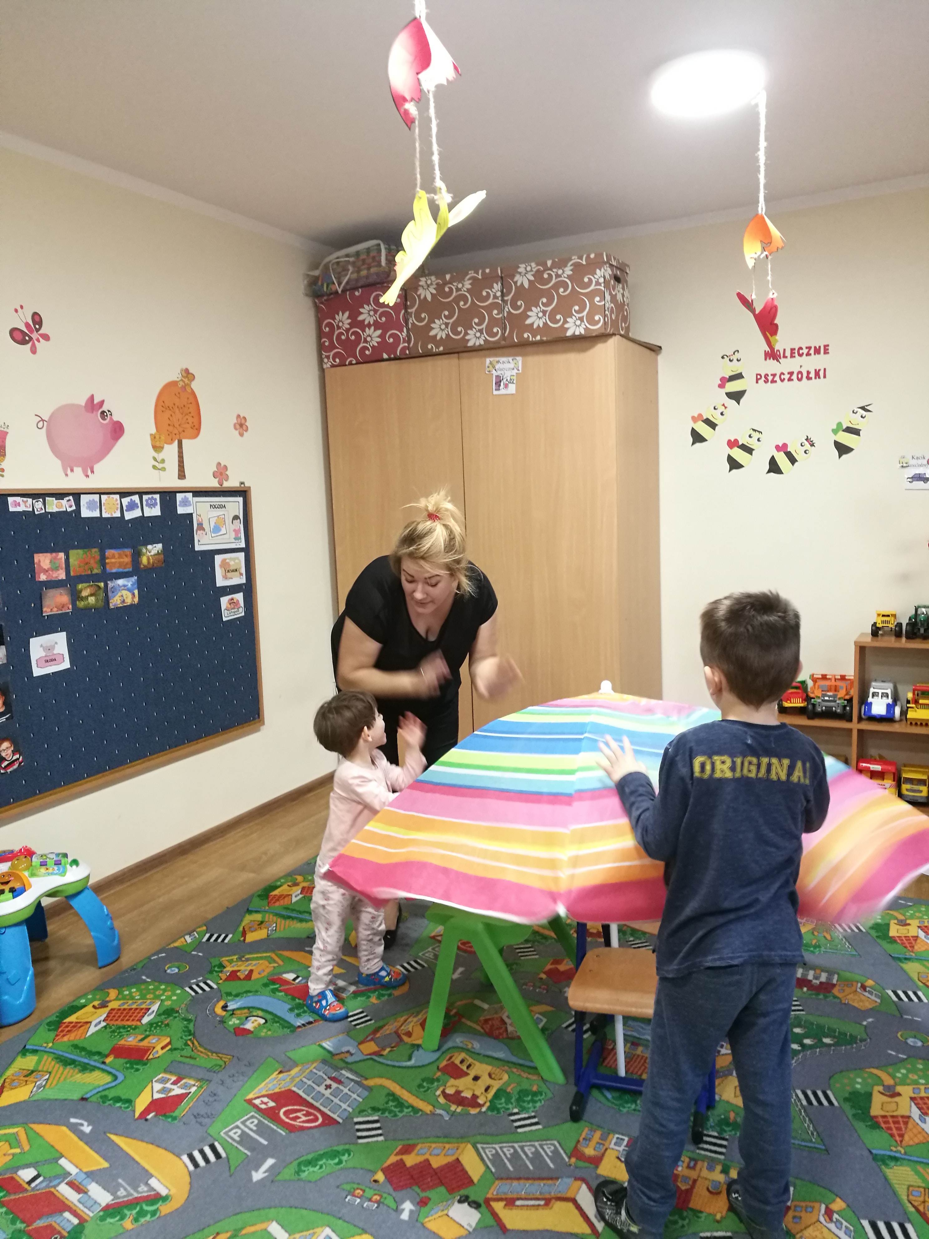 Poprzez zabawę dzieci poznają świat, nabywają nowych doświadczeń, rozwijają wyobraźnię, doskonalą różne zdobyte dotychczas umiejętności. Od konstruowania, tworzenia, lepienia poprzez prawidłowy sposób komunikacji do umiejętności współpracy. Dobra zabawa angażuje całe dziecko, jego rączki, nóżki, oczy, umysł. W grupie Walecznych Pszczółek codziennie staramy się pokonać wszystkie bariery. Prace plastyczne, zajęcia w Sali relaksacyjnej z ogromnym basenem z kolorowymi piłkami i kształtkami, spacery, zabawy klockami, skakanie na piłce i wiele innych to tylko część naszych popołudniowych aktywności. Bawimy się i uczymy bo to lubimy 😉