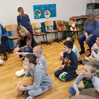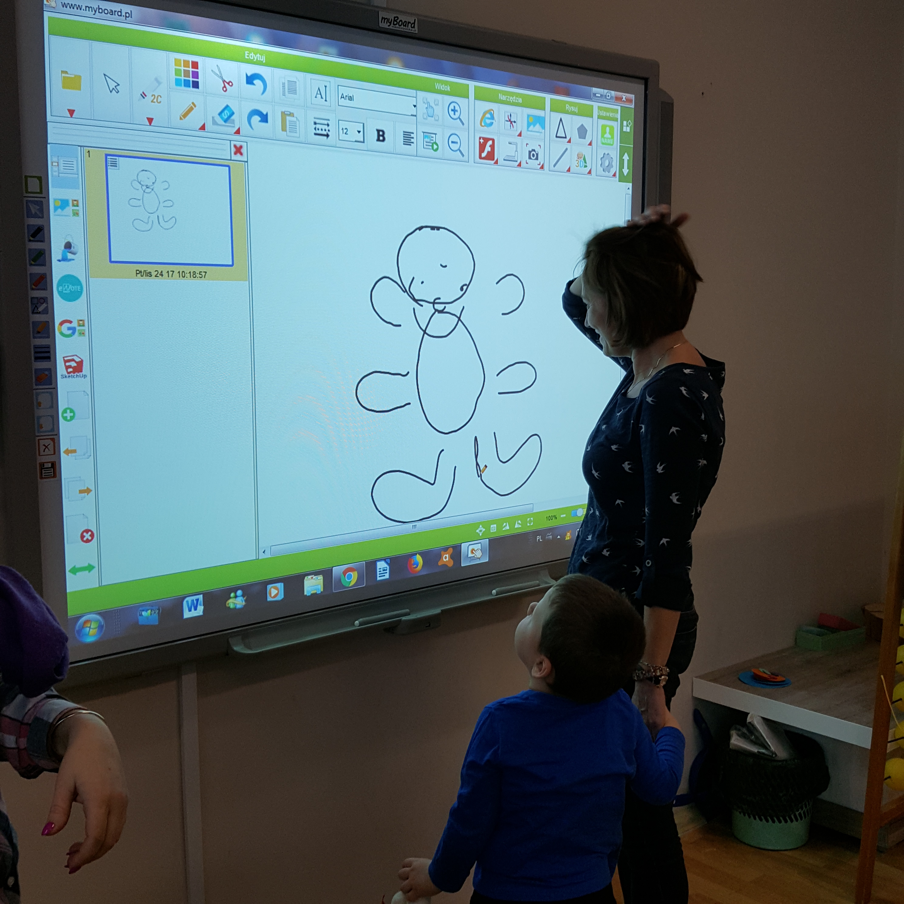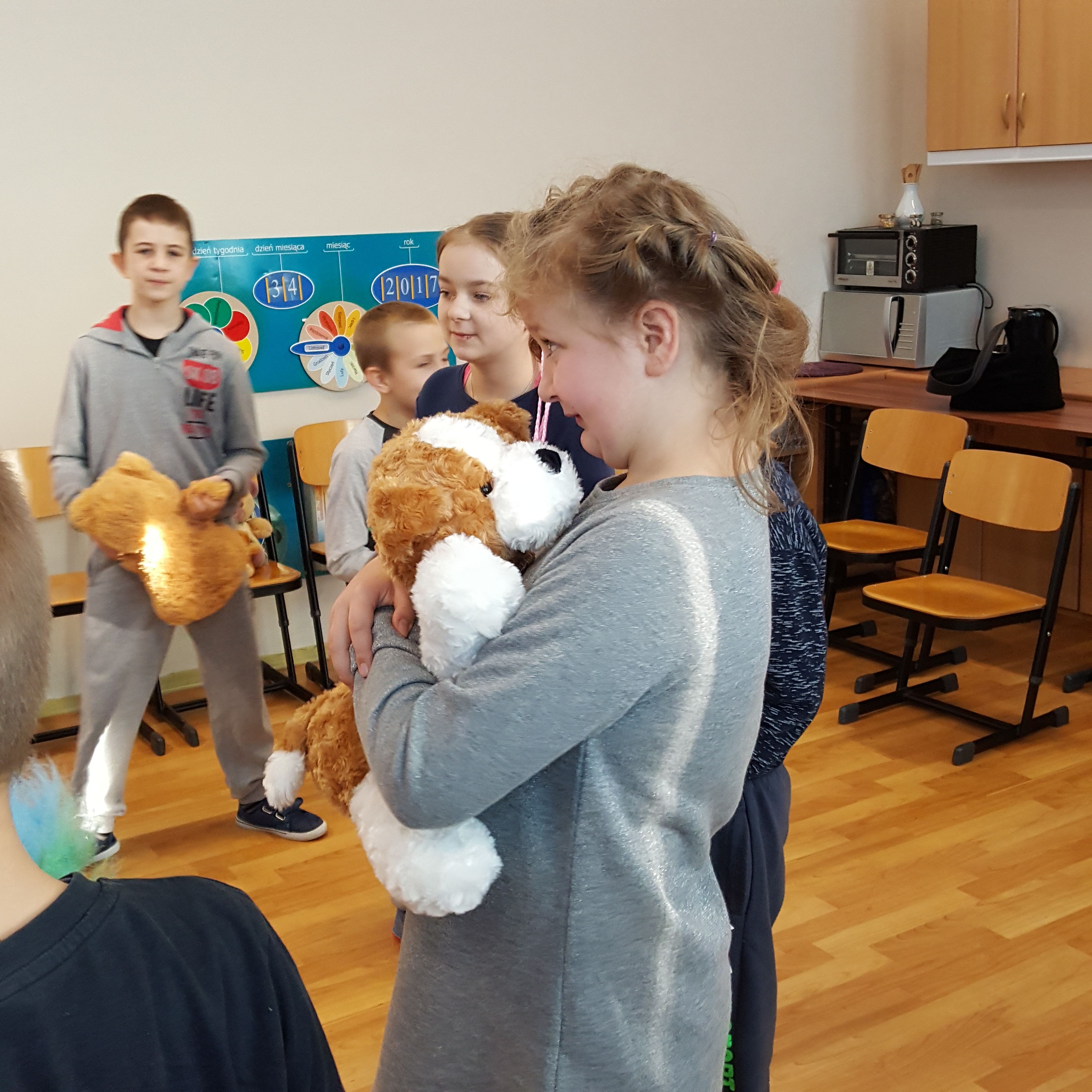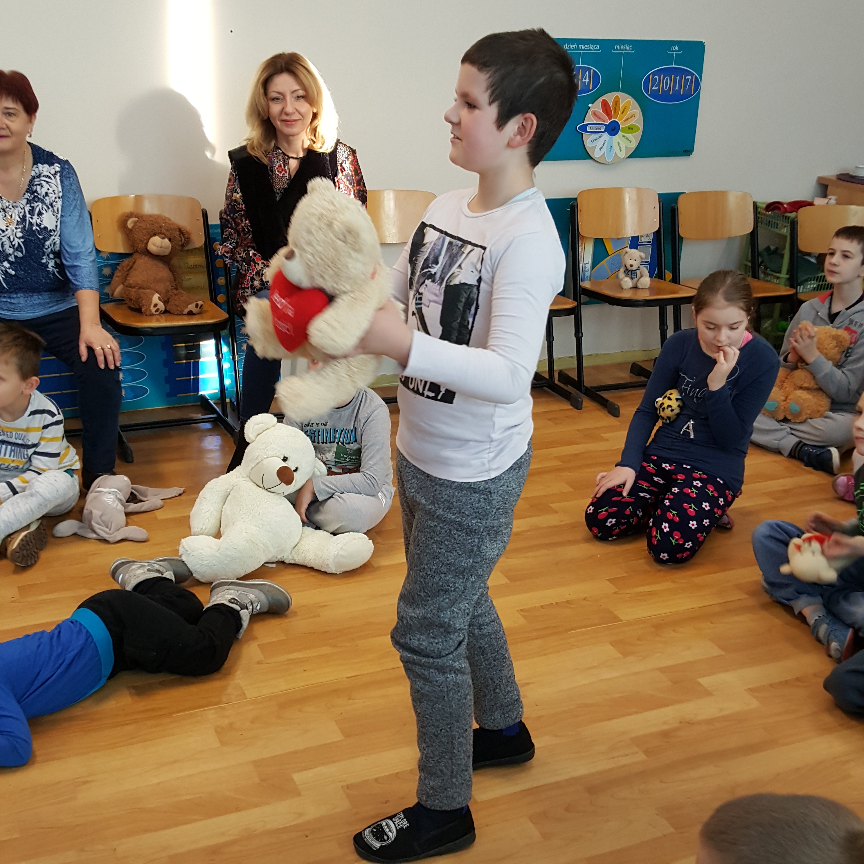 Duże, małe, kolorowe, puchate i mięciutkie. Pluszowe misie opanowały naszą szkołę. „Przybyły” ze swoimi małymi właścicielami, aby bawić się, świętować i uczyć. Dnia 24 listopada dzieci uczestniczyły w obciach Światowego Dnia Pluszowego Misia. Mimo coraz nowocześniejszych i atrakcyjniejszych zabawek, moda na misie nie przemija. Tego dnia każde dziecko przyszło do szkoły ze swoim małym lub dużym przyjacielem – Misiem. Uroczysty dzień rozpoczął się od przywitania swoich pluszaków. Uczniowie zostali zaproszeni do wspólnej zabawy w misiowej krainie. Dla dzieci w tym dniu przygotowano wiele atrakcji: zabawy ruchowe, konkury, śpiewanie piosenek, misiowe tańce, degustacja miodku. Największych wrażeń dostarczyła możliwość wykorzystania tablicy interaktywnej, na której rysowały postaci misia.