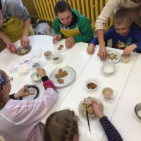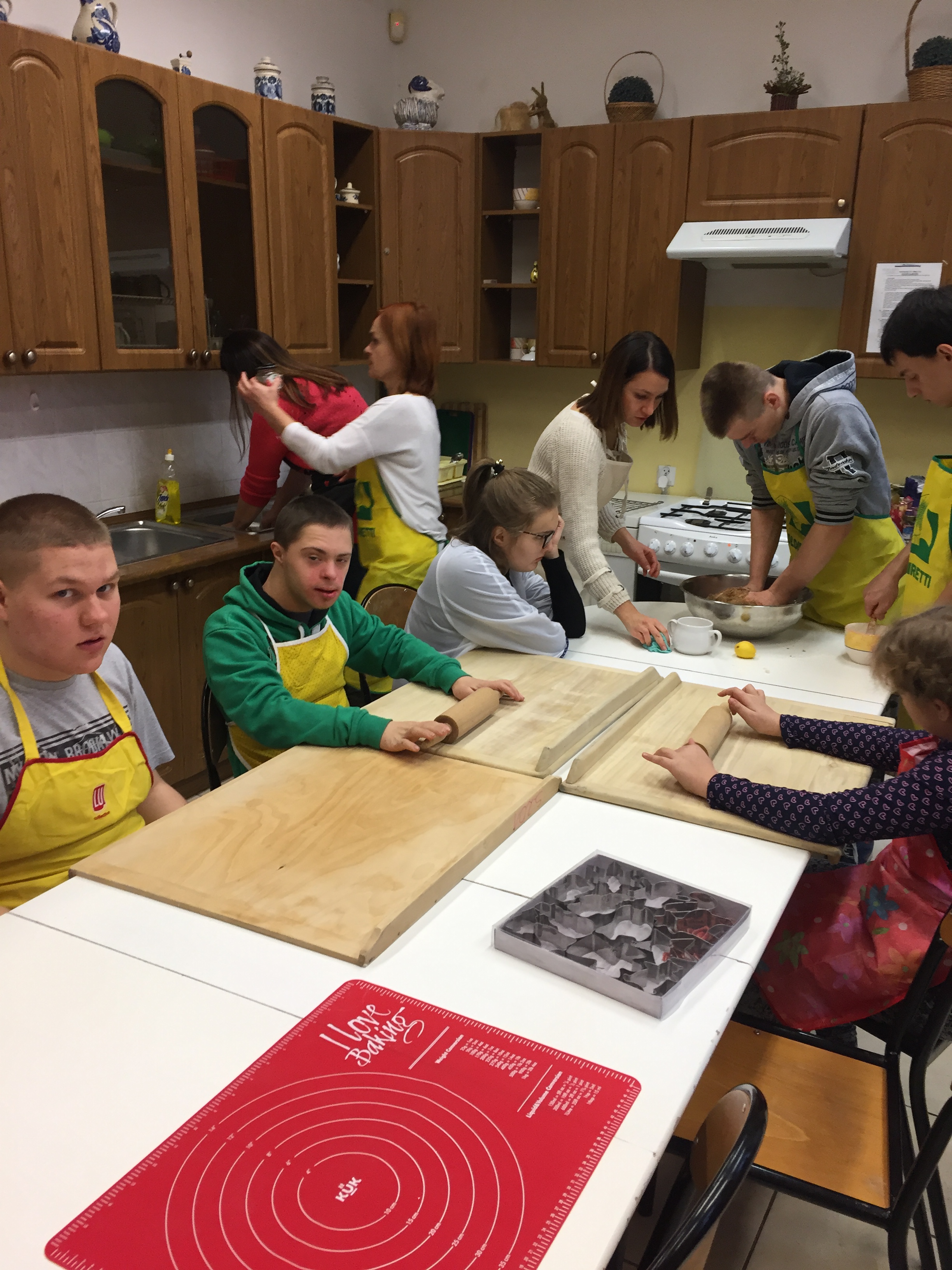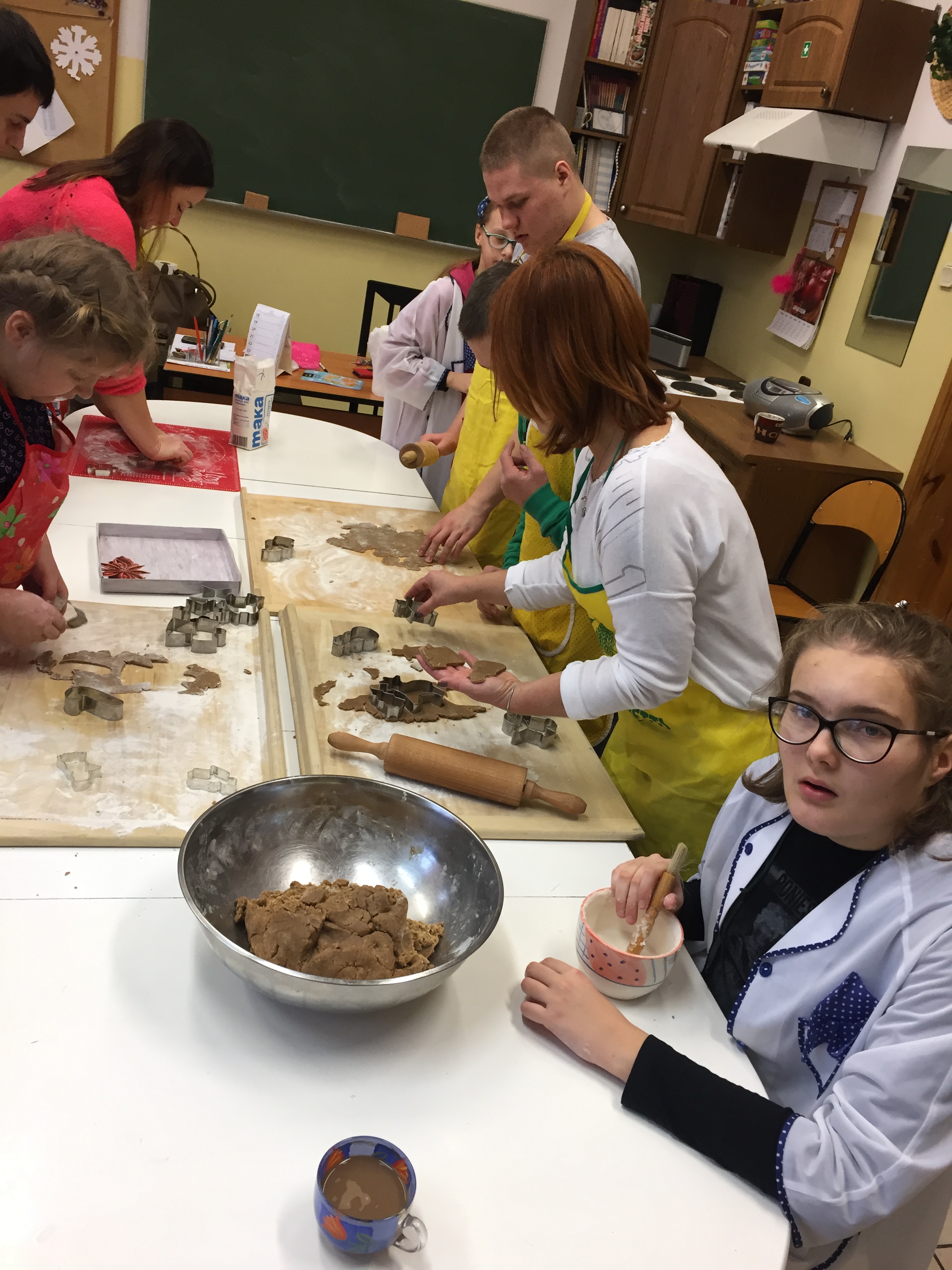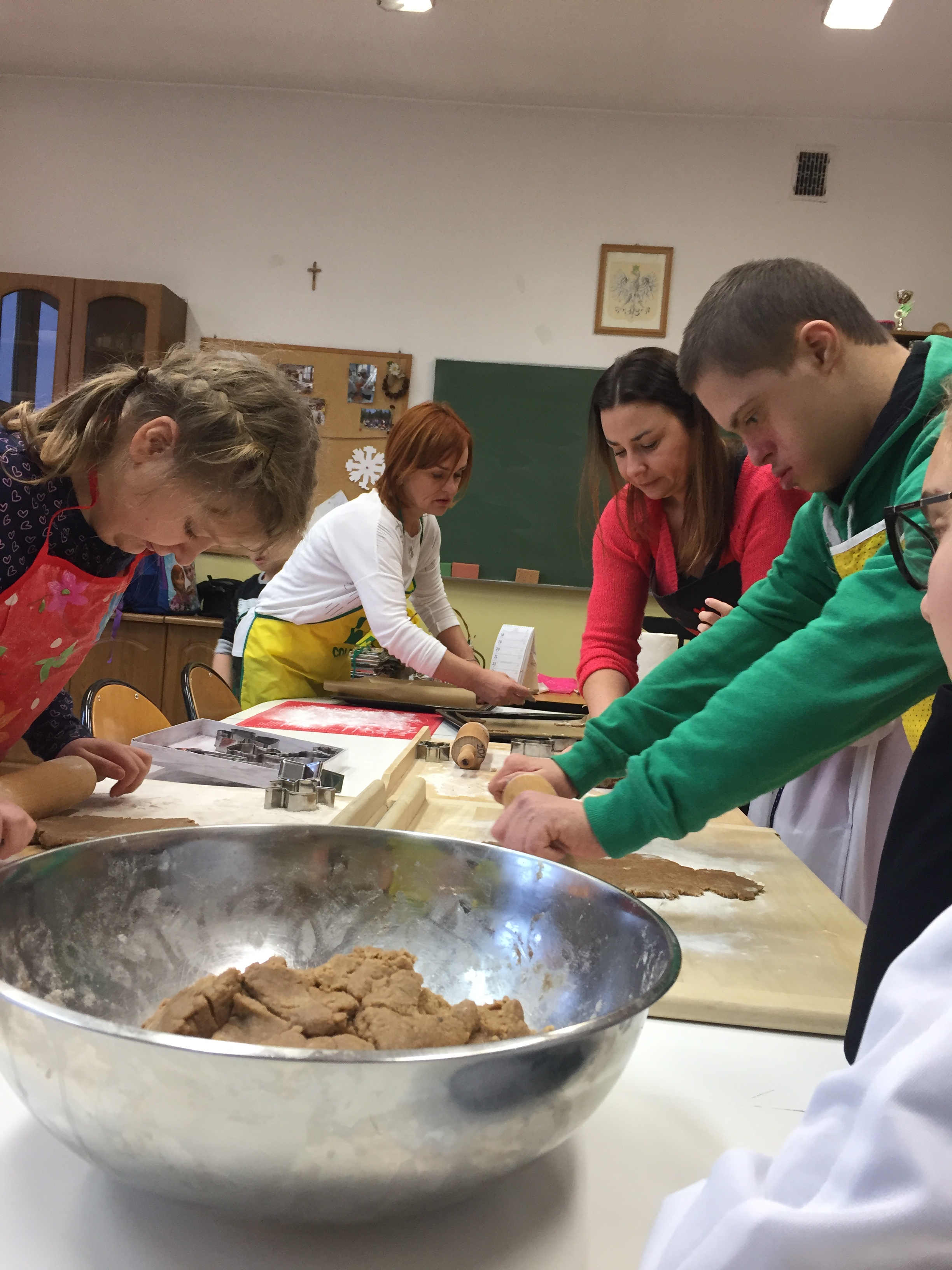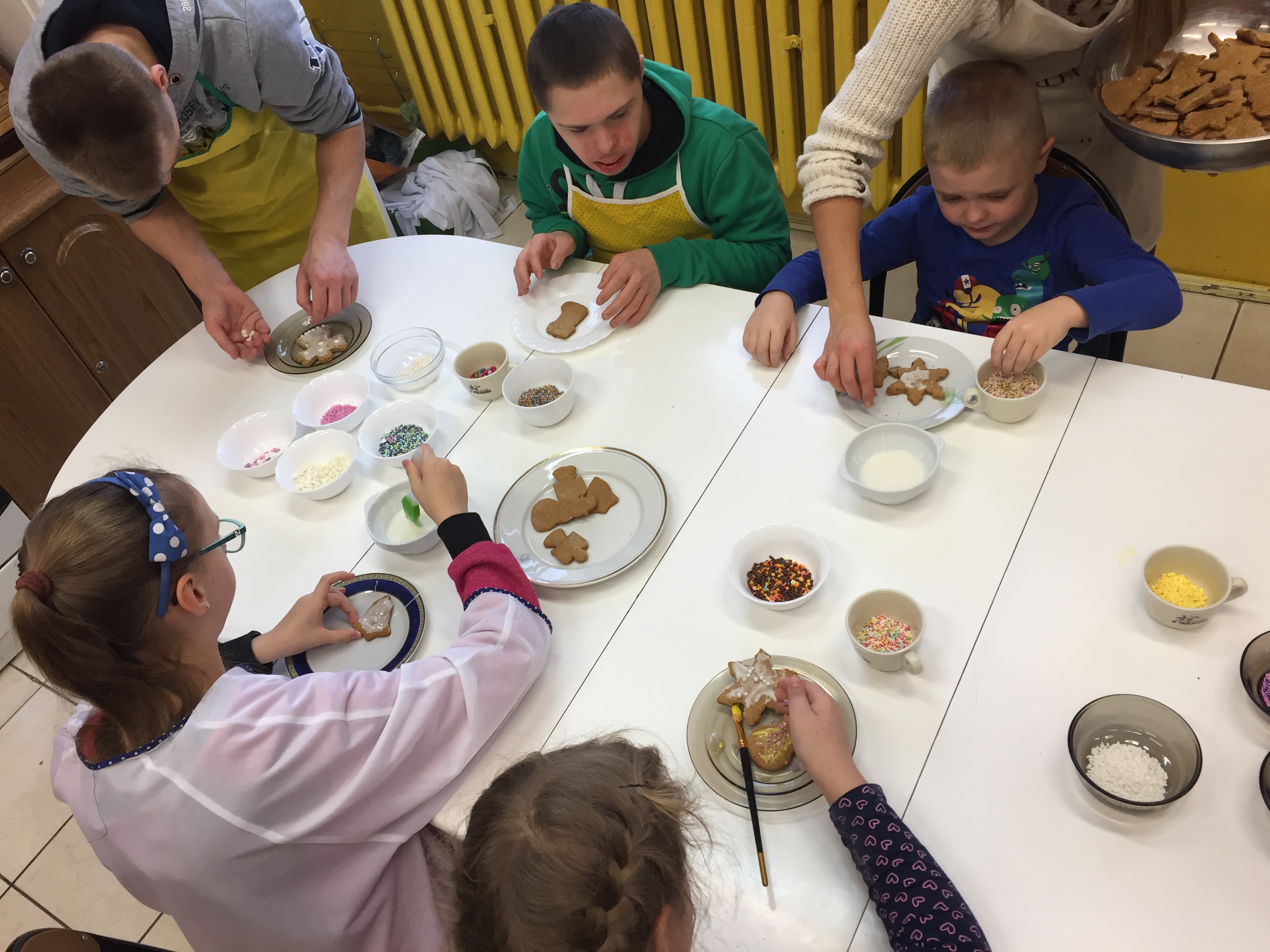 „Poniedziałki nie muszą być nudne”- to cykl zajęć kulinarnych, na których po raz kolejny udowodniliśmy, że to prawda. Tym razem od 8:00 rano w poniedziałek 18 grudnia nasz ośrodek opanowało piernikowe szaleństwo. Wszyscy zakasali rękawy i zabrali się dziarsko za wyrabianie ciasta. Po etapie obróbki termicznej przyszedł czas na uruchomienie wrażliwości estetycznej i strojenie naszych piernikowych wyrobów.