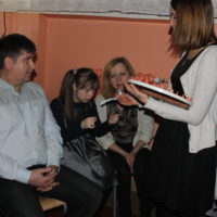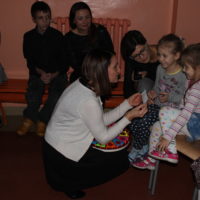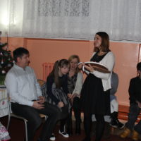 Wspólnym rozmowom nie było końca, gdy jednak usłyszeliśmy dźwięki gitary, pogawędki umilkły, a rozpoczęło się wspólne śpiewanie kolęd. Przy akompaniamencie Pani Kamili Adamczyk swoich sił próbowaliśmy wspólnie, jak również było miejsce na solowe i grupowe popisy.