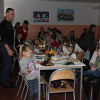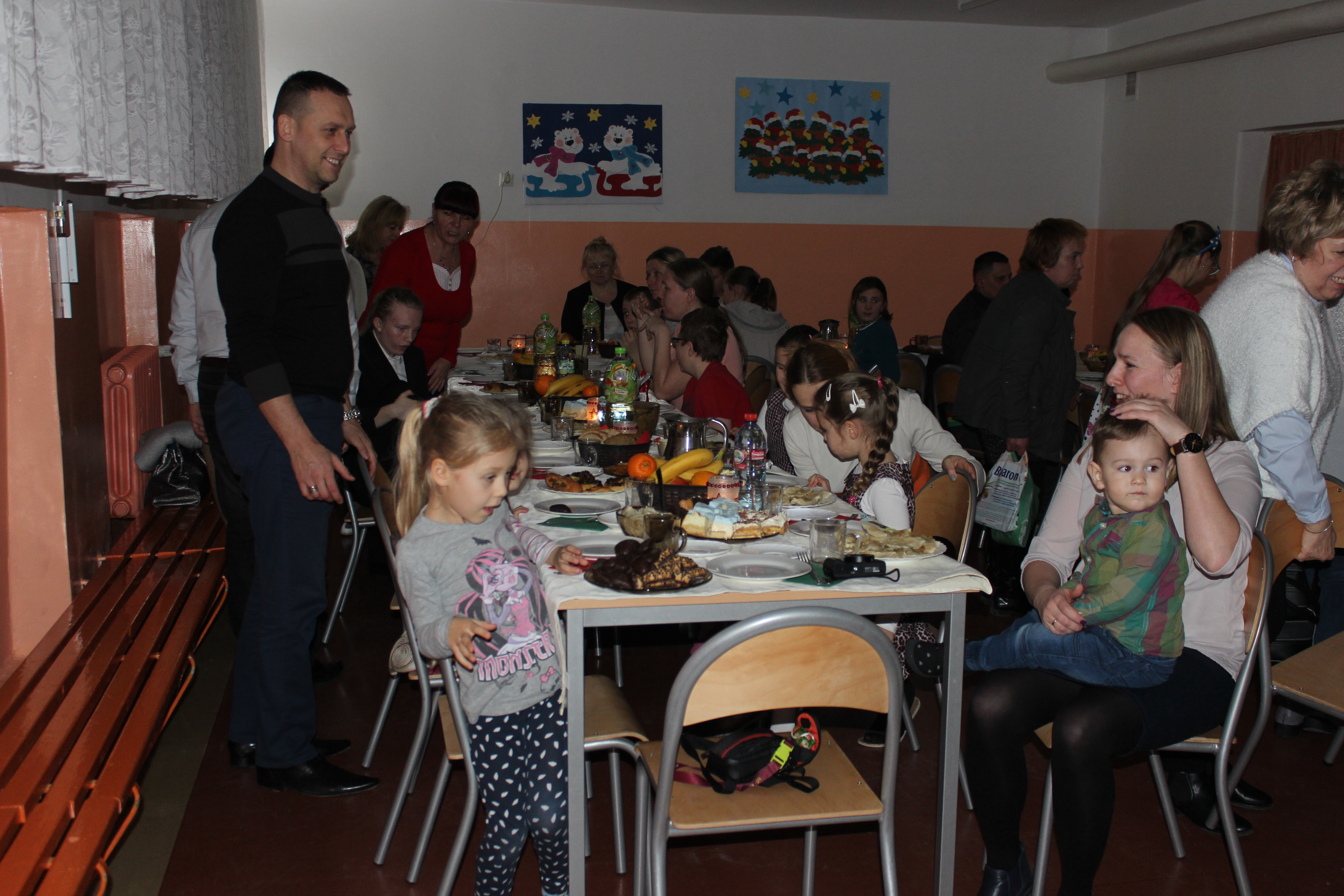 z naszej szkolnej świetlicy. A to wszystko za sprawą przygotowań do wieczornego świątecznego spotkania, które odbyło się w bardzo przyjaznej i wręcz rodzinnej atmosferze. Rozpoczęło się ono od wesołego quizu „Pytanie albo zadanie” o tematyce bożonarodzeniowej. Każdy z uczestników wykazał się dużą kreatywnością wykonując wylosowane zadania i niesamowicie bogatą wiedzą na temat świąt. Nadszedł w końcu czas na uroczystą wigilijną wieczerzę, którą rozpoczęliśmy życzeniami i dzieleniem się opłatkiem. Po nich nastąpiła już radość przebywania razem przy barszczu z uszkami, pierogach, kapuście z grzybami, śledziku i wielu innych z 12 świątecznych potraw.
