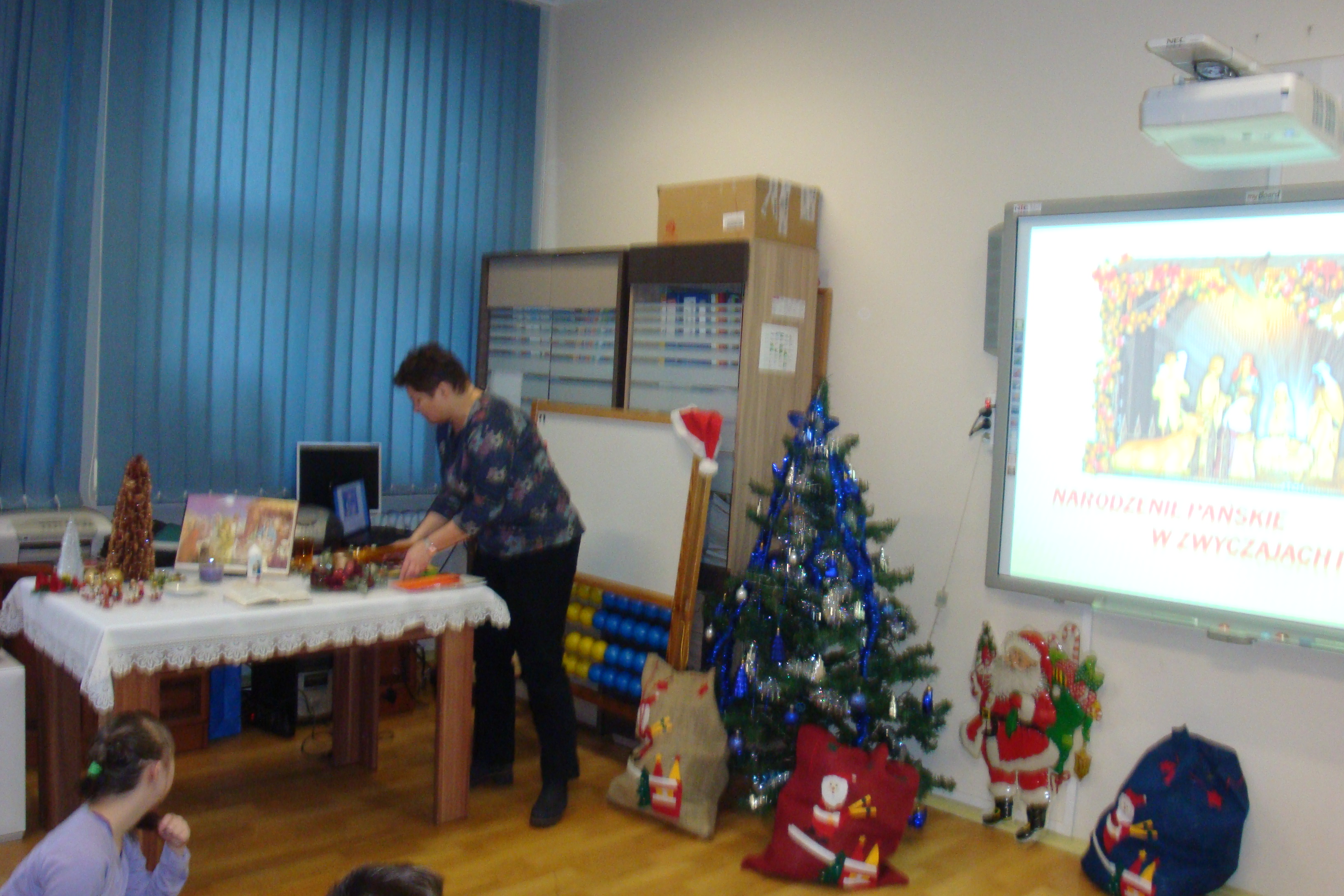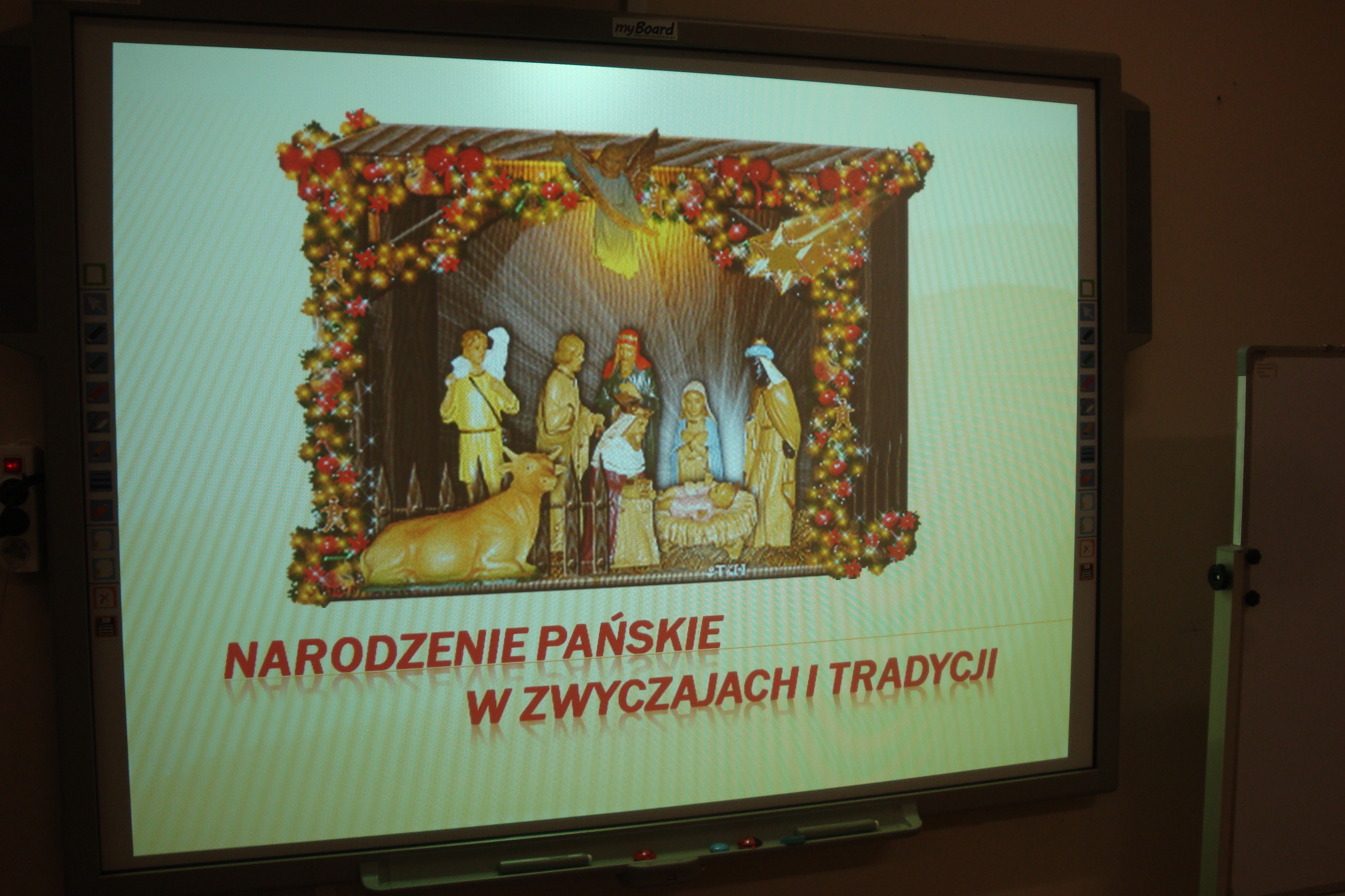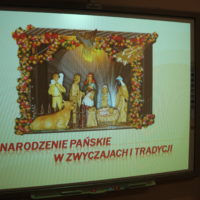 Jak każdego roku uczniowie szkoły podstawowej, gimnazjum i szkoły przysposabiającej do pracy mogli poznać i przypomnieć sobie tradycje oraz zwyczaje Adwentu i świąt Bożego Narodzenia. Dzięki licznie zgromadzonym przedmiotom, prezentacji multimedialnej, wspólnym śpiewom kolęd oraz ciekawemu opowiadaniu pani Ani tradycje religijne, które stały się własnością narodową i zagościły w niejednym polskim domu,wprowadziły słuchaczy w okres ostatnich przygotowań do uroczystego obchodzenia świąt. Spotkanie o tak wyjątkowej tematyce wyzwoliło w uczniach wiele pozytywnych uczuć i emocji. Uśmiechy na twarzach uczniów i nauczycieli zapowiadały świąteczną radość Bożego Narodzenia.