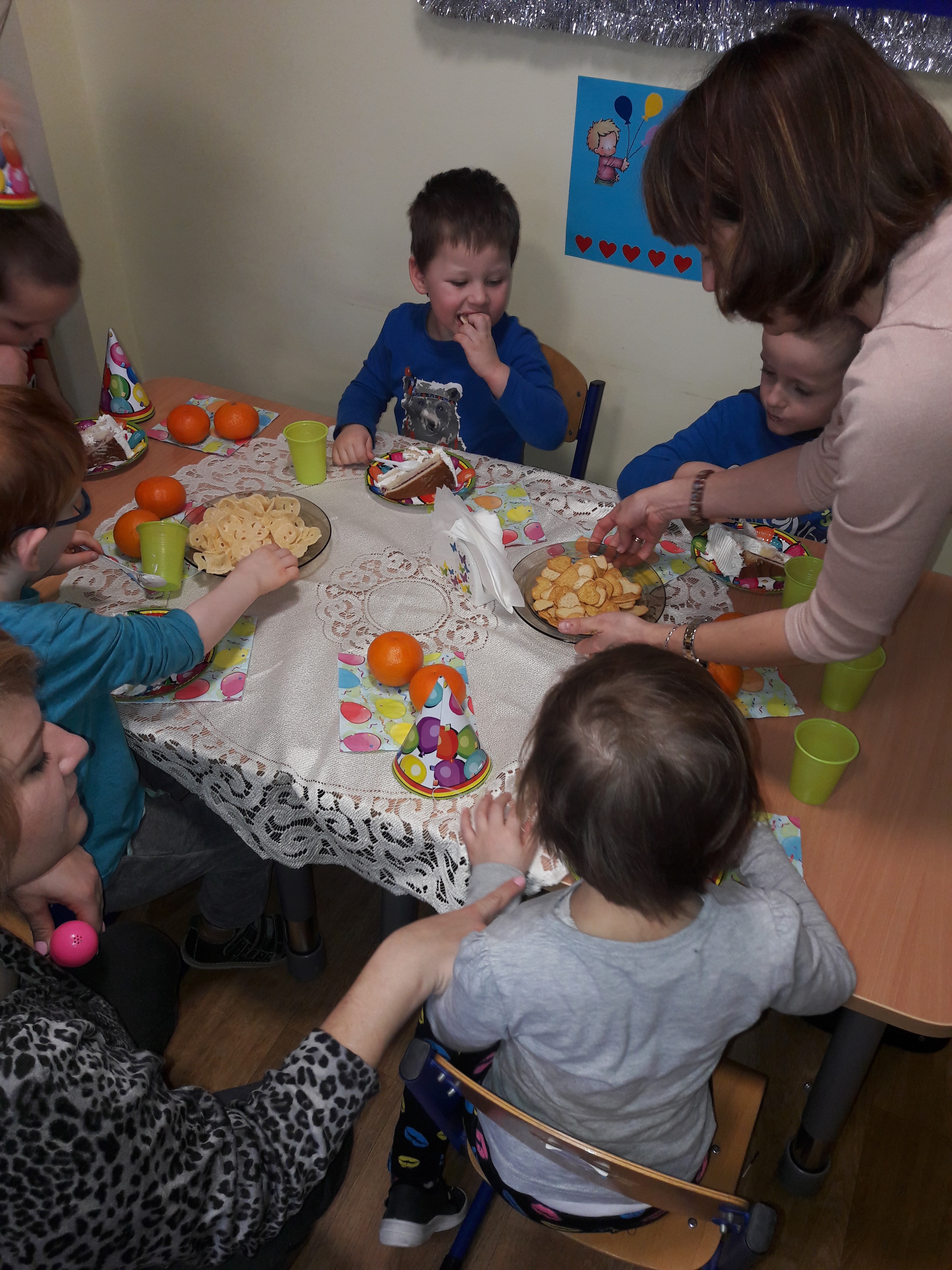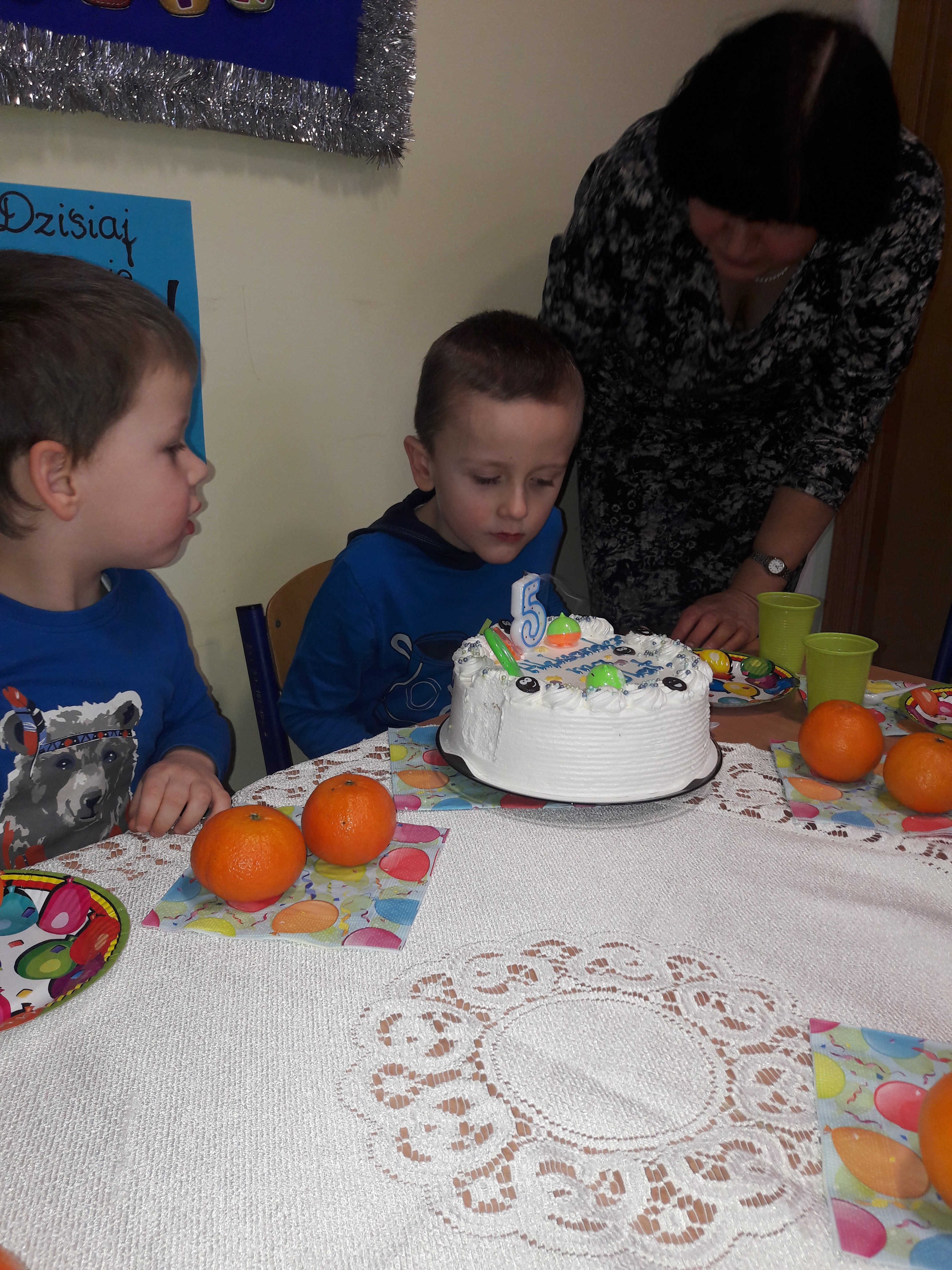 W dniu 3 stycznia 2018 roku w grupie Tygrysków Urwisków odbyły się piąte urodziny Alka. Na tę uroczystość zostały zaproszone dzieci z grupy Walecznych Pszczółek. Jubilat przyjmował od wszystkich życzenia i gratulacje, nie zabrakło również uroczystego „Sto lat”. Po wspólnych zabawach i tańcach oraz wręczeniu prezentu, Alek zdmuchnął świeczkę na urodzinowym torcie. Następnie zaprosił dzieci na słodki poczęstunek przygotowany przez jego Mamę.