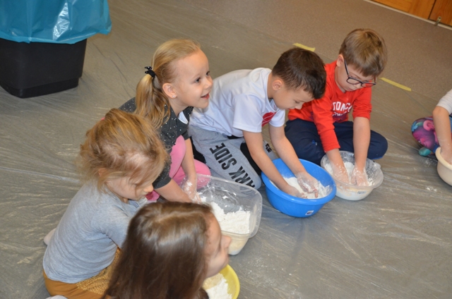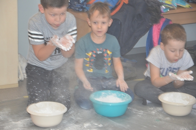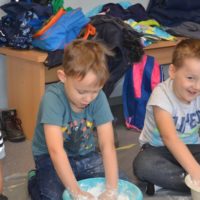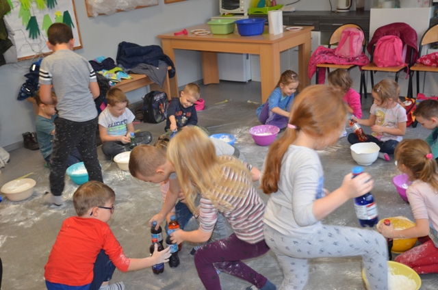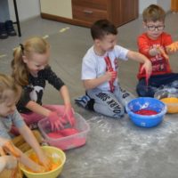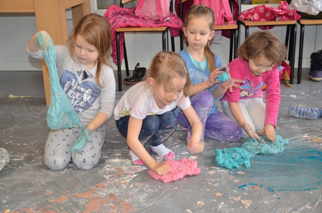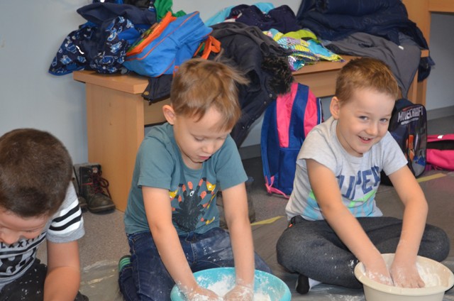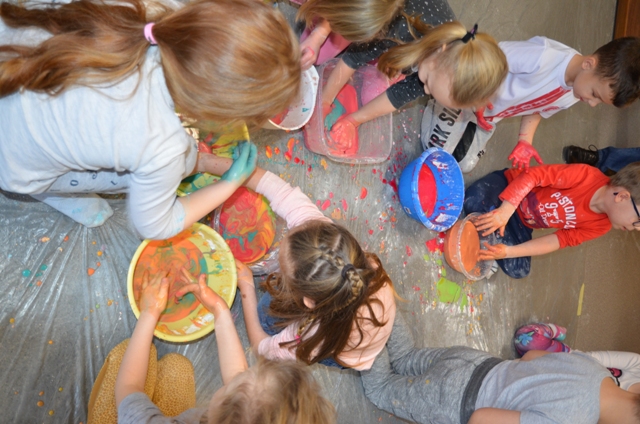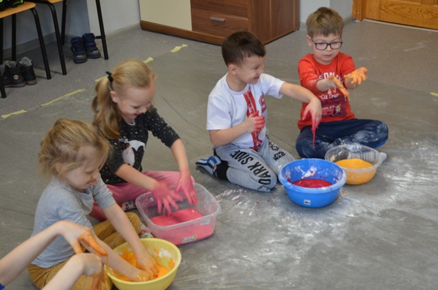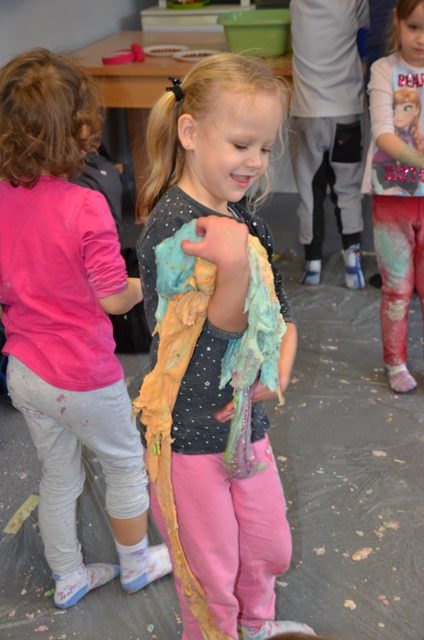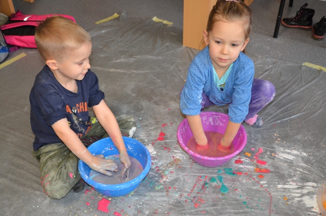 Dziś gościły w naszym Ośrodku 5-latki z Przedszkola nr 4 w Elblągu. Dzieci mogły po raz pierwszy doświadczyć zupełnie czegoś nowego o czym świadczą ich uśmiechnięte twarze. Stymulowaliśmy się polisensorycznie: fakturami, zapachami, kolorami. Legalne brudzenie się przyniosło dzieciom dużo frajdy . Każdy z uczestników przekonał się, że potrafi wyczarować z różnych naturalnych produktów ciekawe i niepowtarzalne masy. Przedszkolaki poznały przepis na magiczną masę, która jest płynna, ale czasem stała, którą da się złapać, ale zaraz ucieka, w którą można uderzyć, a nie pochlapie. To była super zabawa!!!