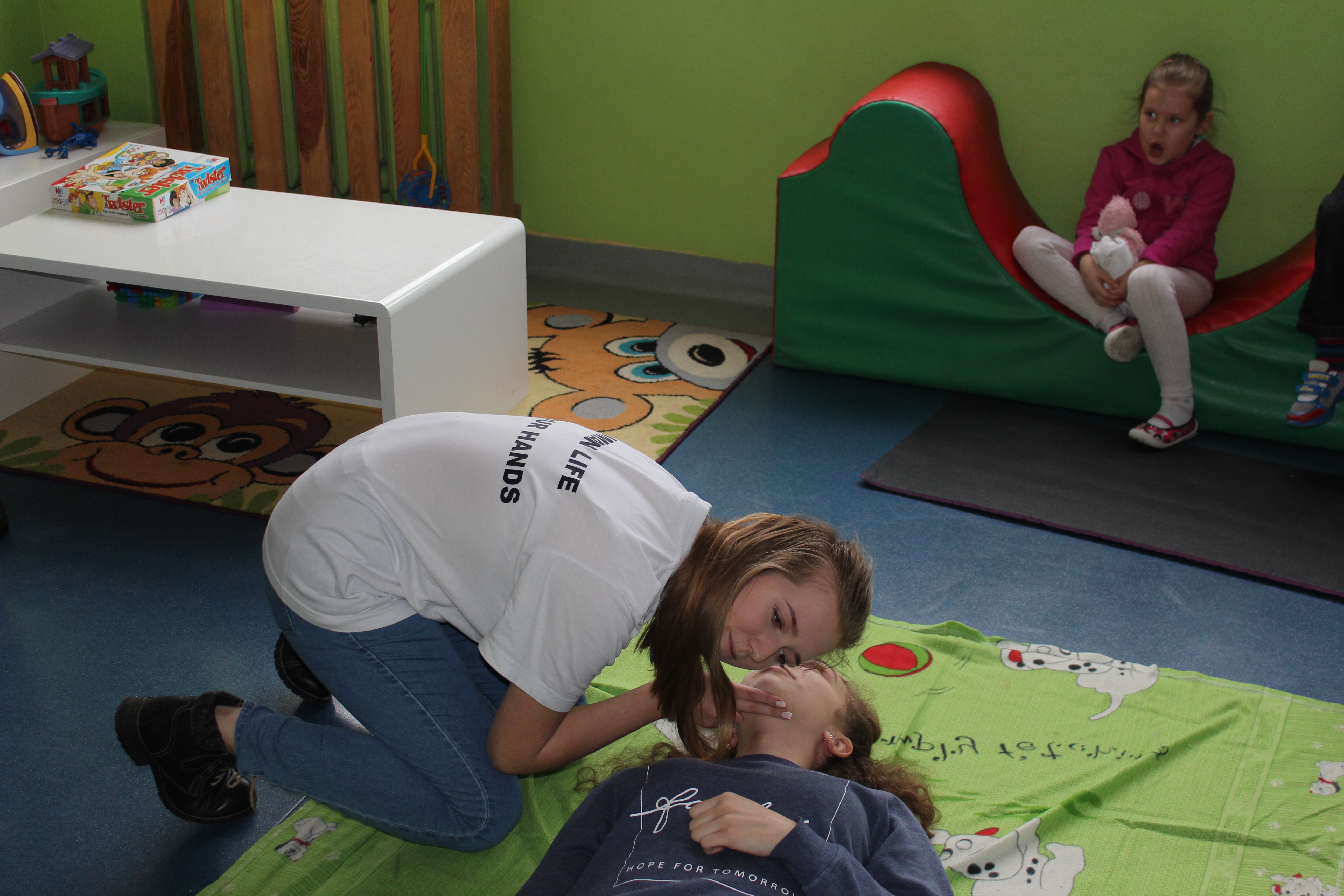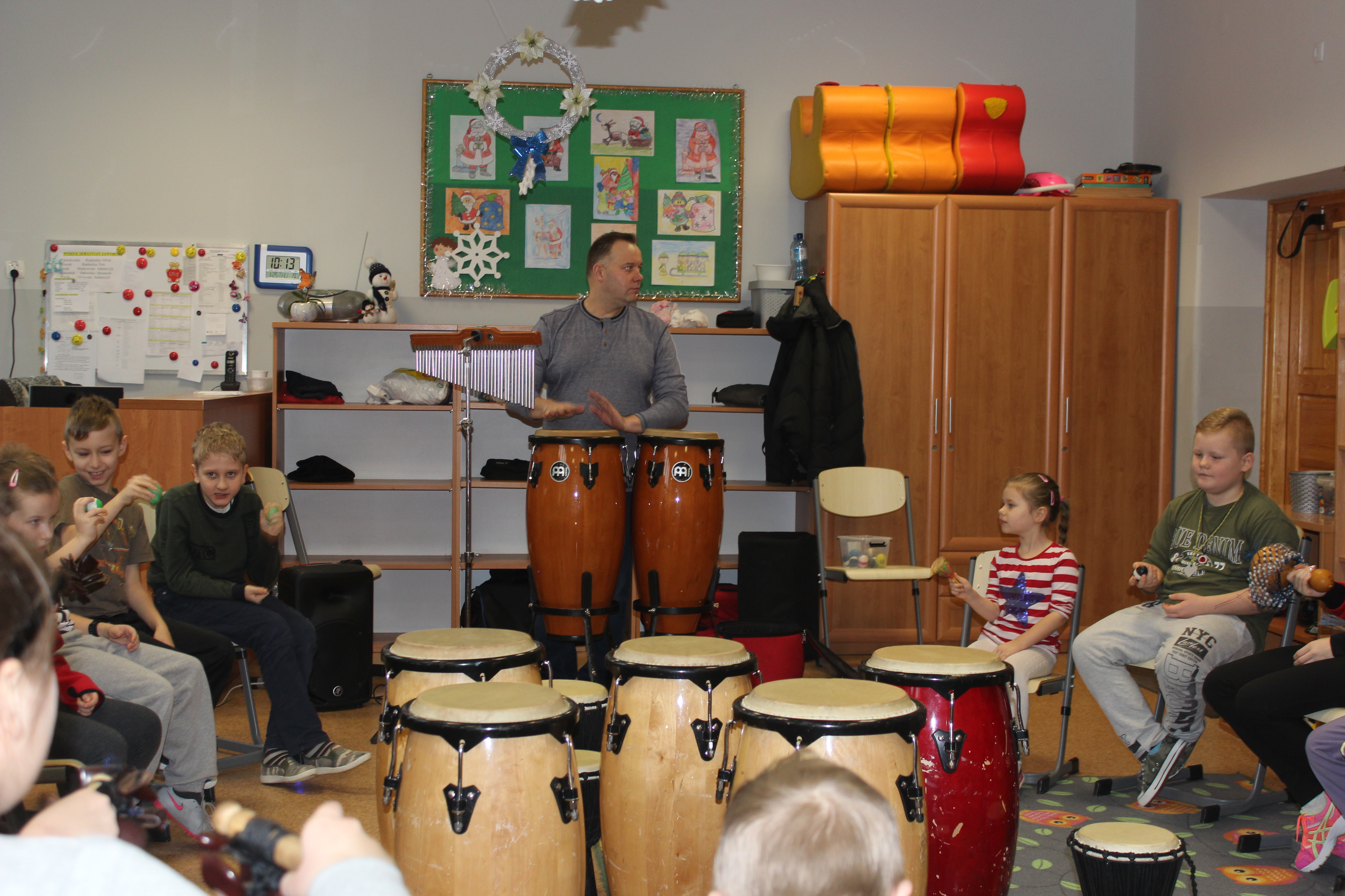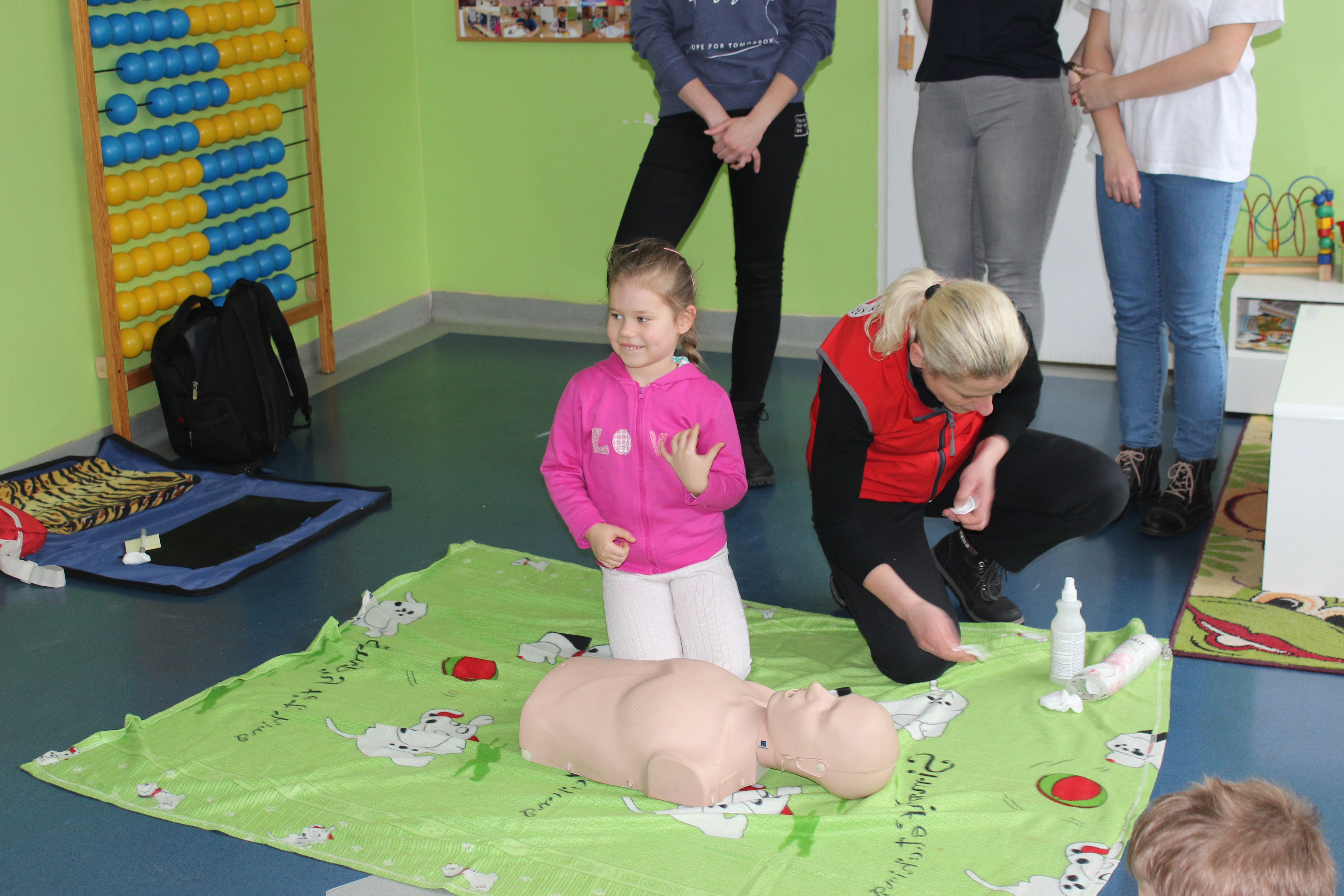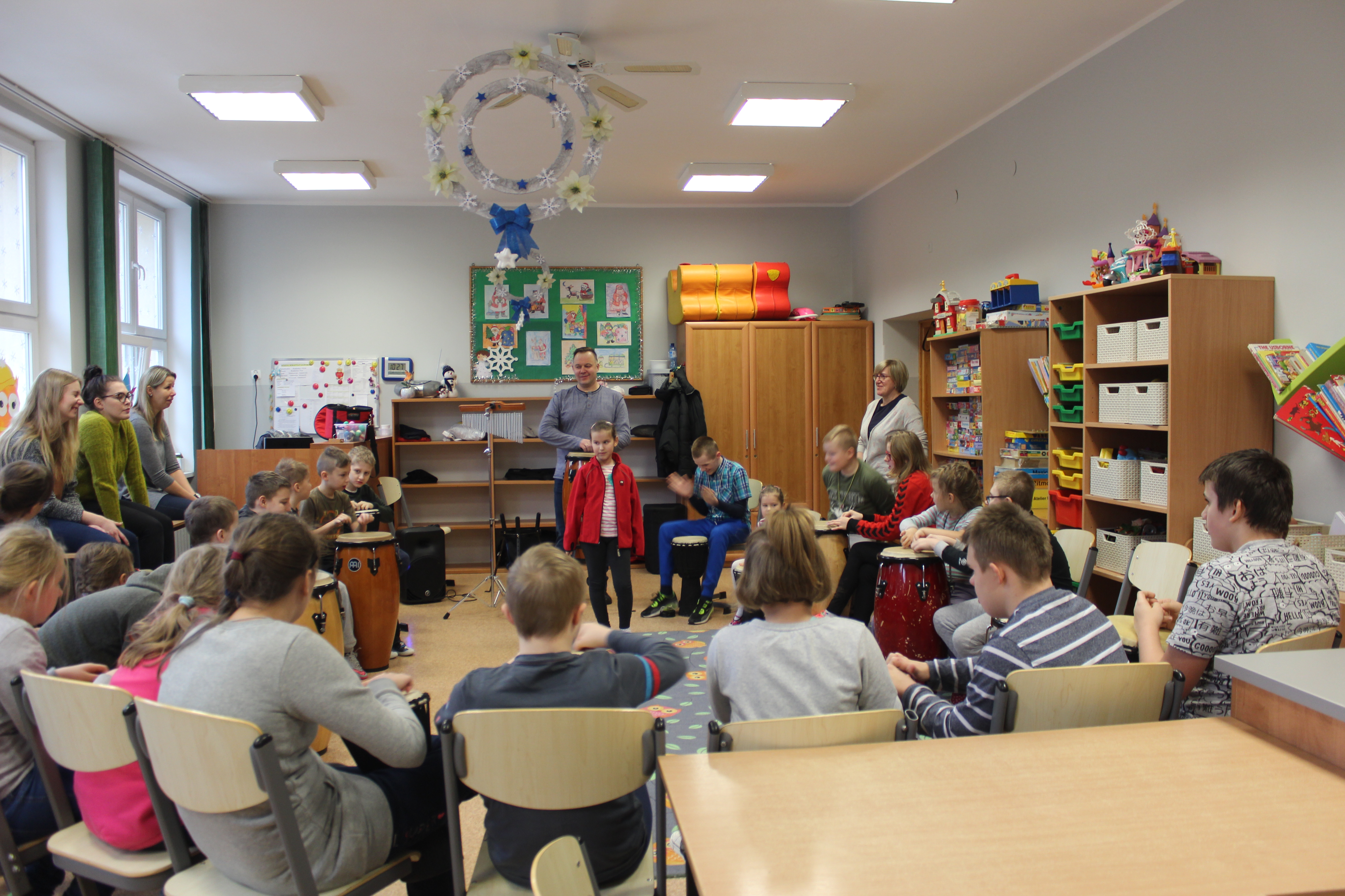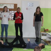 Dzisiejszy dzień obfitował wieloma atrakcjami. Odbyły się warsztaty bębniarskie, podczas których każde dziecko mogło wykazać się muzyczną inwencją twórczą. Następnie, dzięki uprzejmości Ratowniczki Medycznej, p. Angeliki i jej żeńskiej ekipie specjalistek, uczestniczyliśmy w praktycznych zajęciach z wykorzystaniem fantomów. Każdy uczestnik nabywał umiejętność udzielania I pomocy przedmedycznej. Po ogromnym skupieniu na tak ważnej i odpowiedzialnej sprawności, nasi podopieczni dali się ponownie ponieść muzyce. Tym razem, podczas aktywności tanecznej -Sumba Kids.
