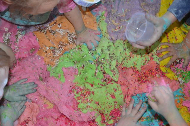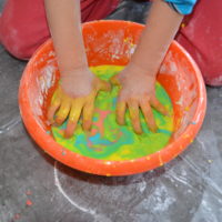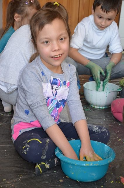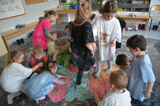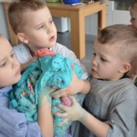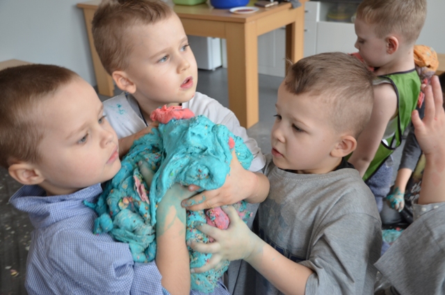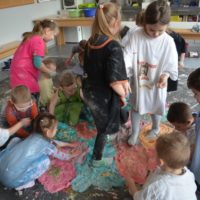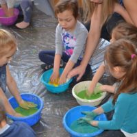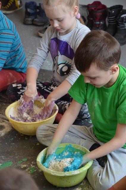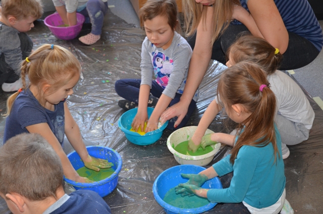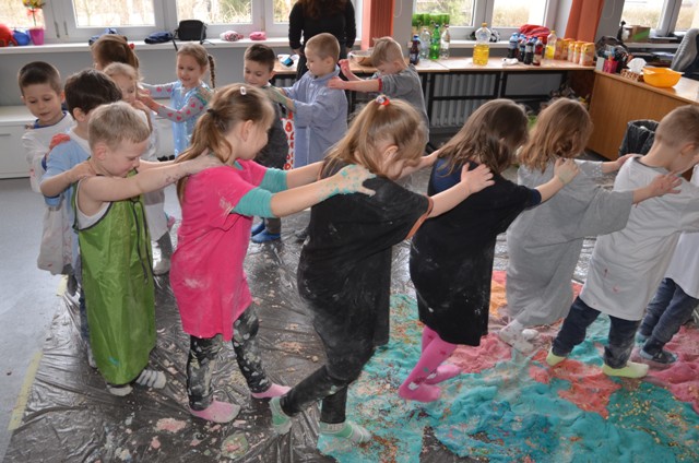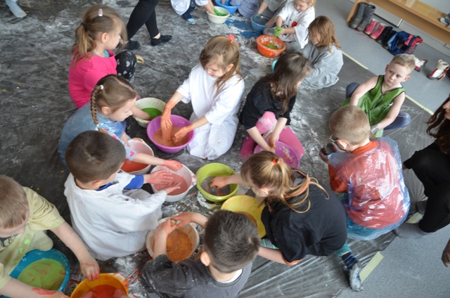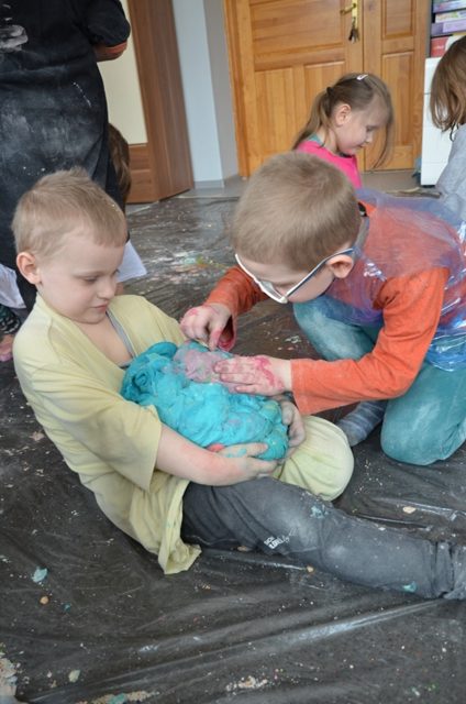 Misiaki i Tygryski to dwie grupy przedszkolaków z Przedszkola nr 14 przy ul. Bałuckiego, które odwiedziły nasz Ośrodek i spotkały się na zajęciach sensoplastycznych®. Dzieci sypały, mieszały, lepiły, smakowały, wąchały a przede wszystkim kreatywnie się brudziły. Uśmiech na twarzach naszych gości to najlepsze podsumowanie kolorowego.