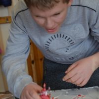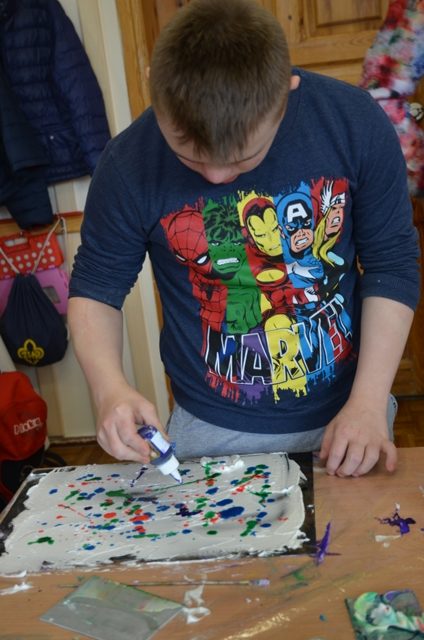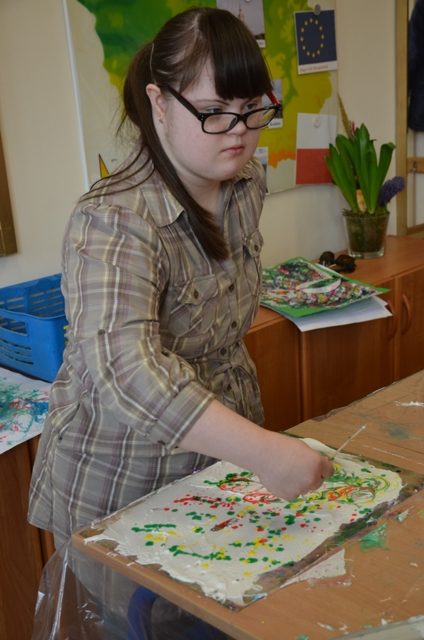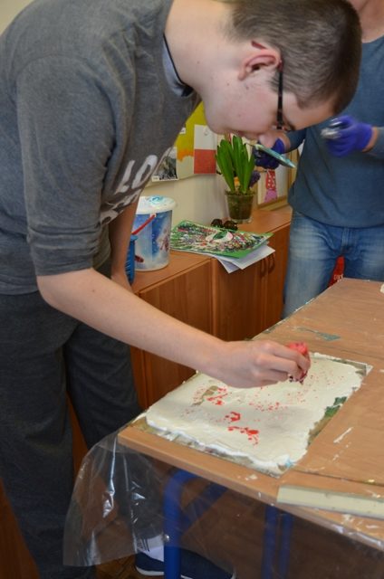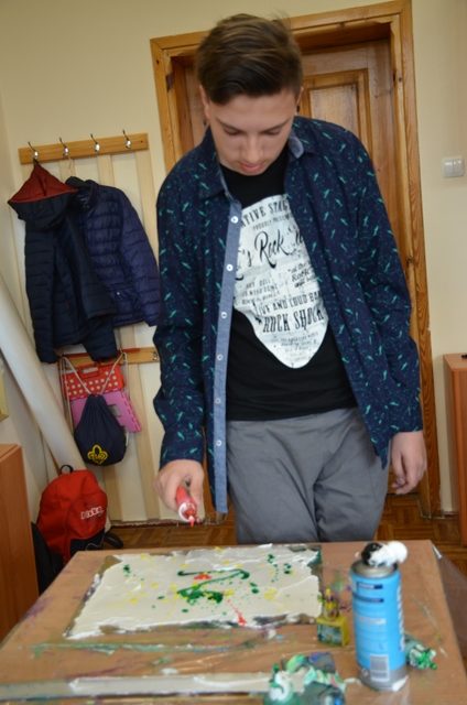 Do czego może służyć pianka do golenia – przekonali się dziś uczniowie zespołów edukacyjno- terapeutycznych VII a SP oraz II b i III a Gimnazjum na zajęciach plastycznych prowadzonych przez Pana Bogdana Kilińskiego. Ciekawe kwiaty wiosenne, które powstały na barwionej kolorowym tuszem piance, to niecodzienna technika plastyczna, którą posłużyli się młodzi adepci sztuki, tworząc swoje dzieła.