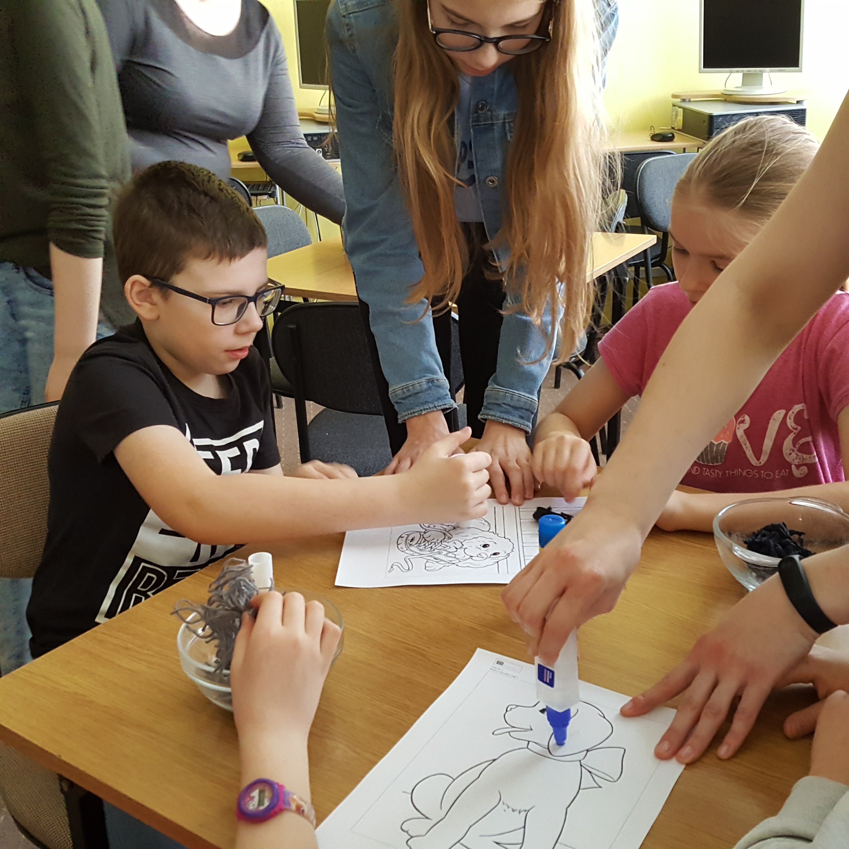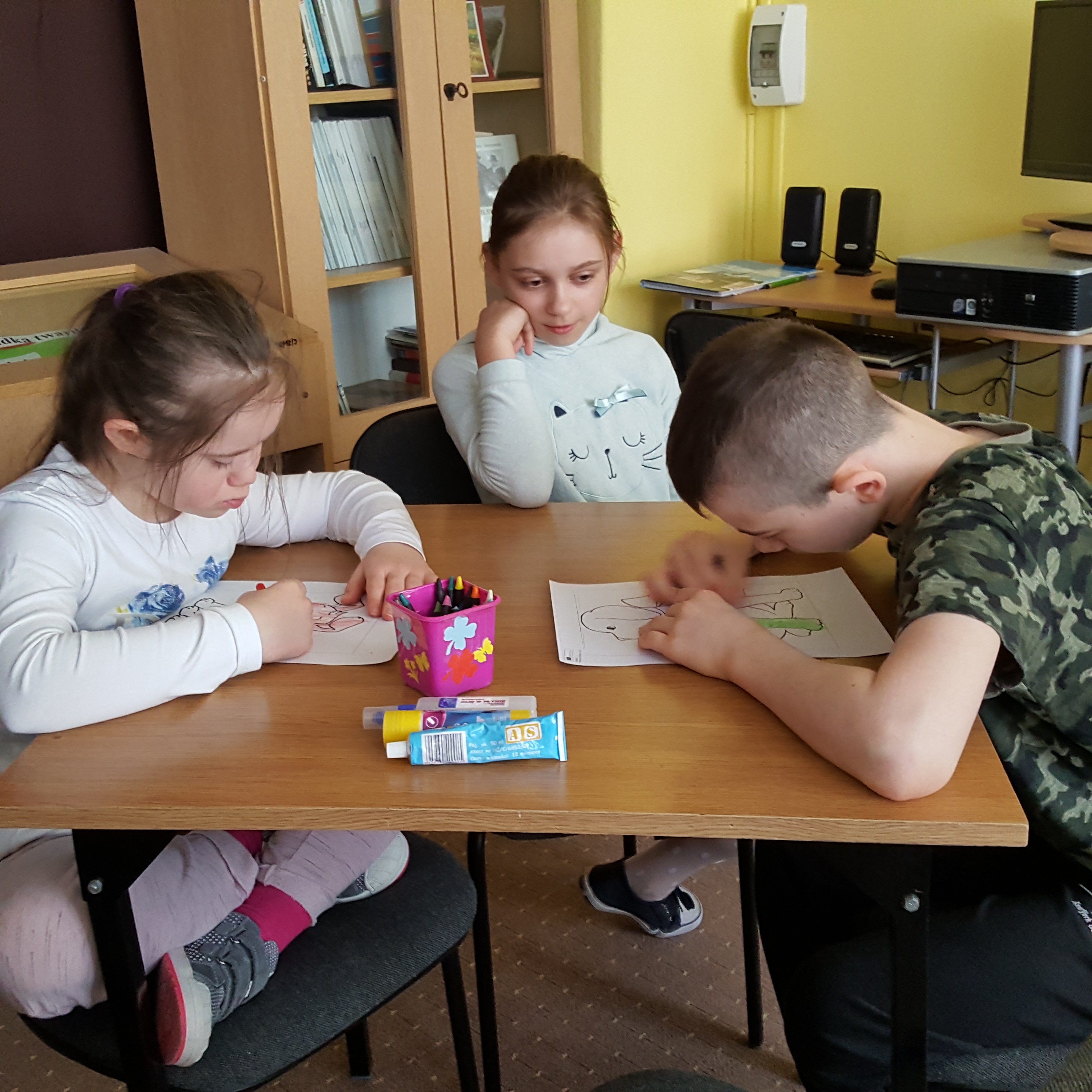 W dniu 12.04.2018 r. odbyły się kolejne zajęcia, będące realizacją innowacji pedagogicznej „Słucham, rozumiem, mówię”. Tym razem to nasi uczniowie (klasa III a i III b) udali się do Szkoły Podstawowej Nr 9. Poznali wiersz „Pięciopsiaczki”, w sposób zabawny – wykorzystując drewniane sztućce – przedstawili głównych bohaterów.