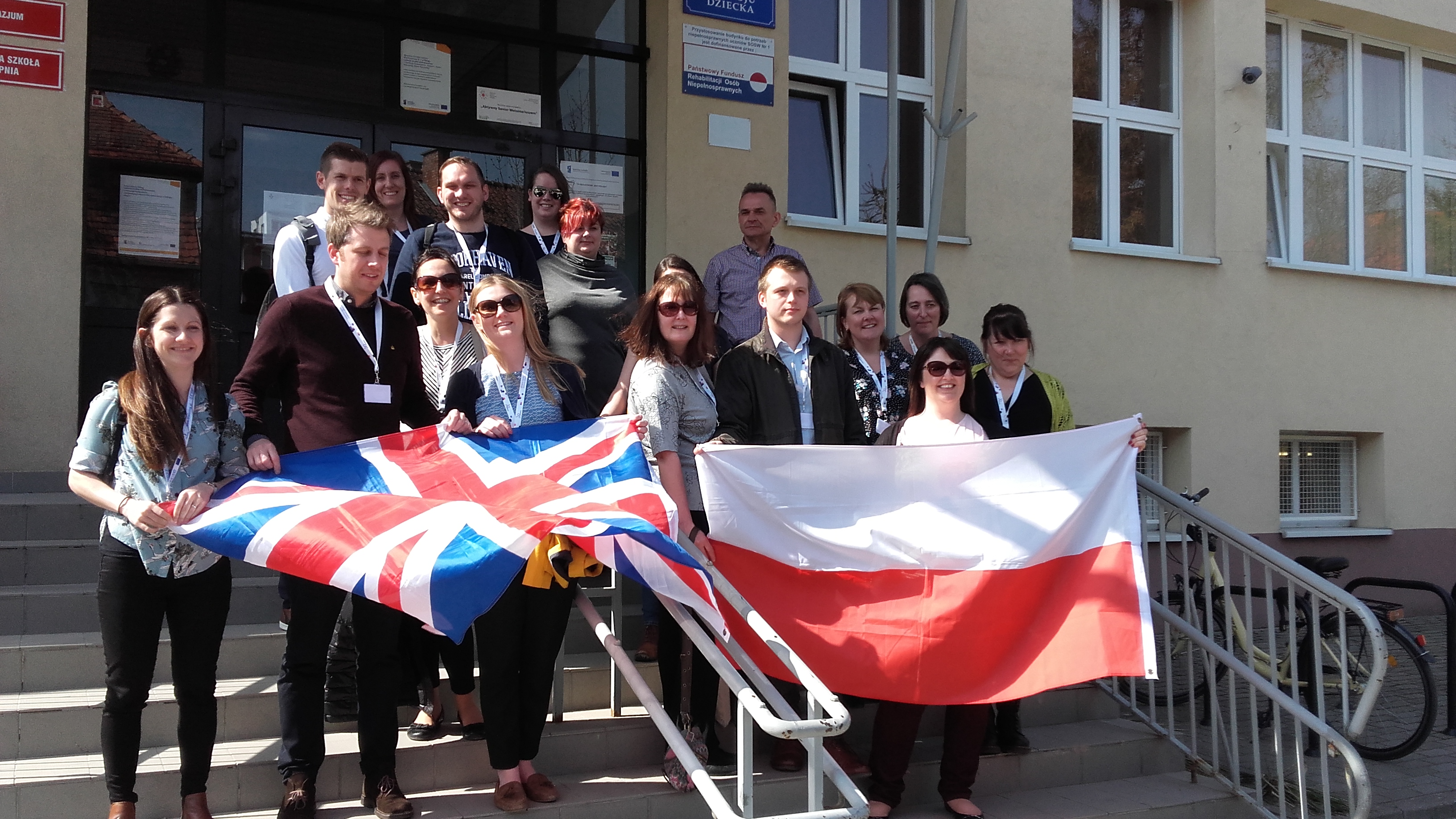 W dniu 13.04.2018 naszą szkołę odwiedzili nauczyciele z różnych szkół w Anglii w ramach programu Erasmus +. 15 nauczycieli na czele z koordynatorką projektu P. Mariolą Chodakowską mieli okazję przyjrzeć się pracy szkoły oraz wizytować lekcje i zajęcia rewalidacyjne, na których nauczyciele naszej placówki pracowali w oparciu o indywidualizację pracy z uczniem, jak również przy wykorzystaniu różnych technik i metod. Lekcje urozmaicone przy pomocy ciekawych metod dostosowanych do indywidualnych możliwości i potrzeb uczniów bardzo podobały się naszym gościom. Z ogromnym zainteresowaniem angielscy nauczyciele przyglądali się zajęciom z integracji sensorycznej, stymulacji polisensorycznej, gimnastyki korekcyjnej, ceramiki, gospodarstwa domowego, funkcjonowania osobistego i społecznego, zajęć kształtujących kreatywność. Nasi uczniowie byli bardzo zainteresowani całą wizytą, śmiało zaczepiali naszych gości i próbowali wymieniać proste zwroty w języku angielskim. Wizyta naszych gości zakończyła się wspólnym obiadem oraz zdjęciem. Anglicy zapewniali nas, że do swoich szkół wracają z bagażem nowych doświadczeń, a poznane techniki pracy z uczniami będą chcieli zastosować w pracy ze swoimi uczniami.