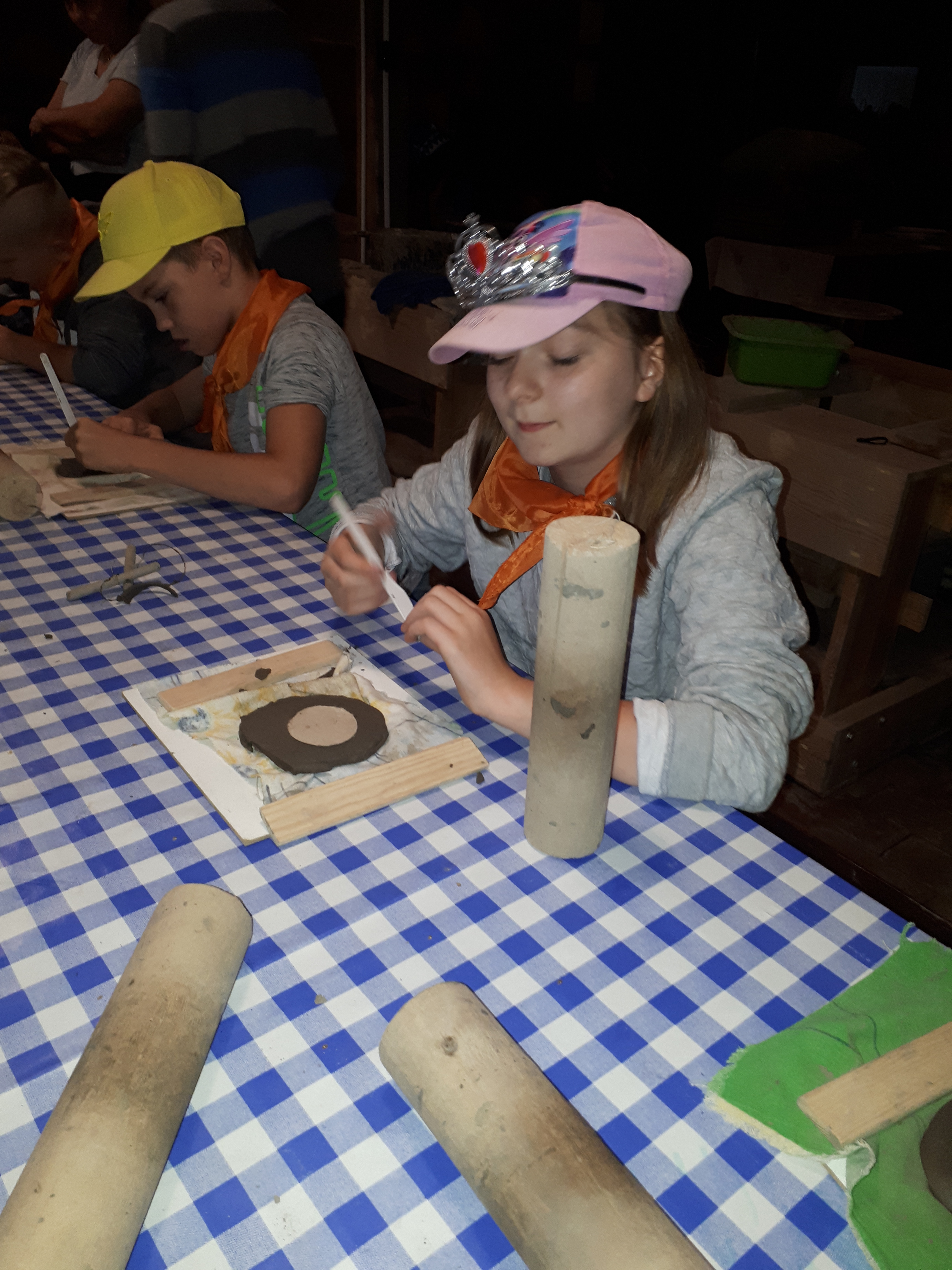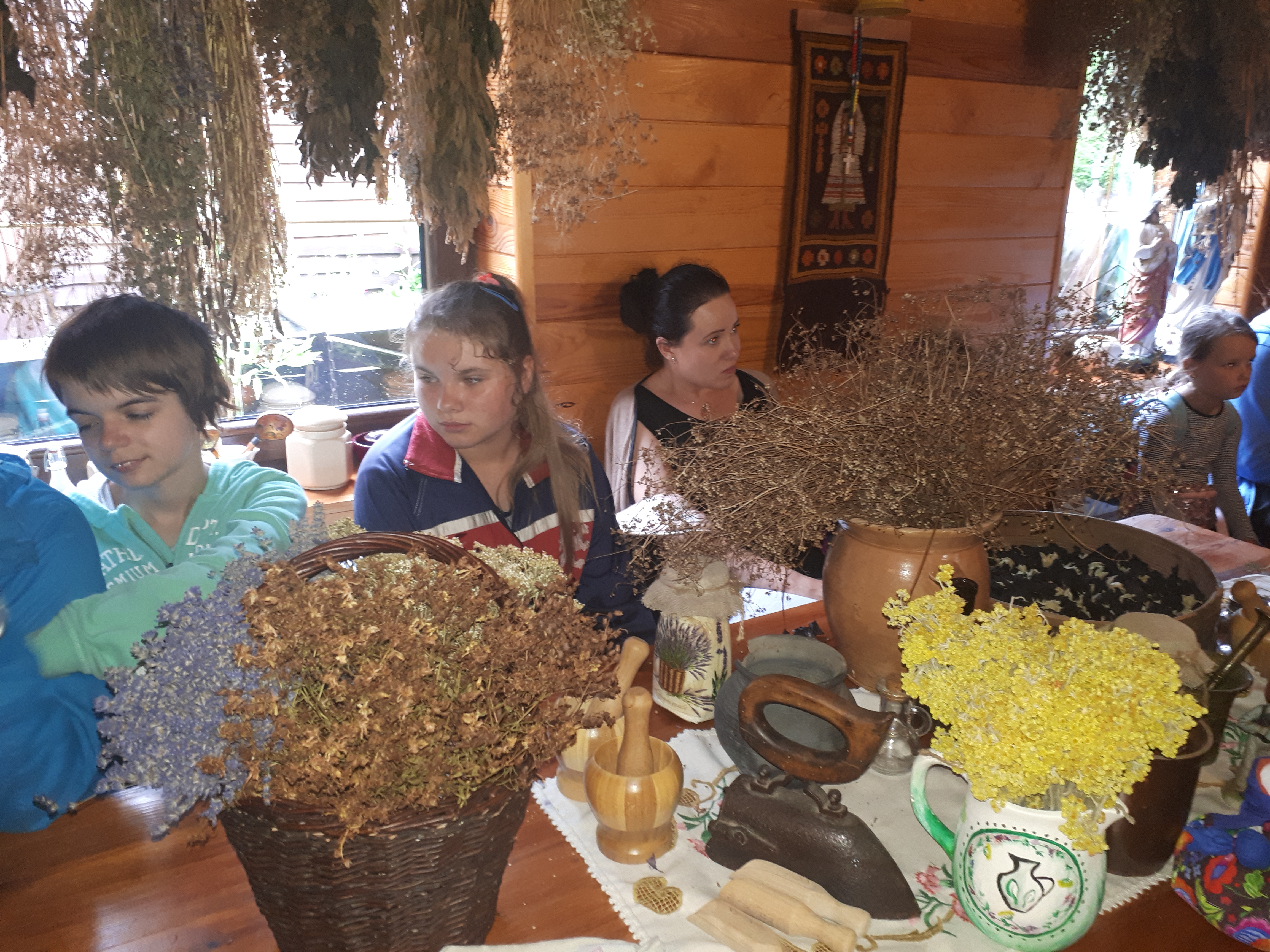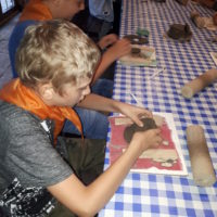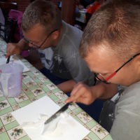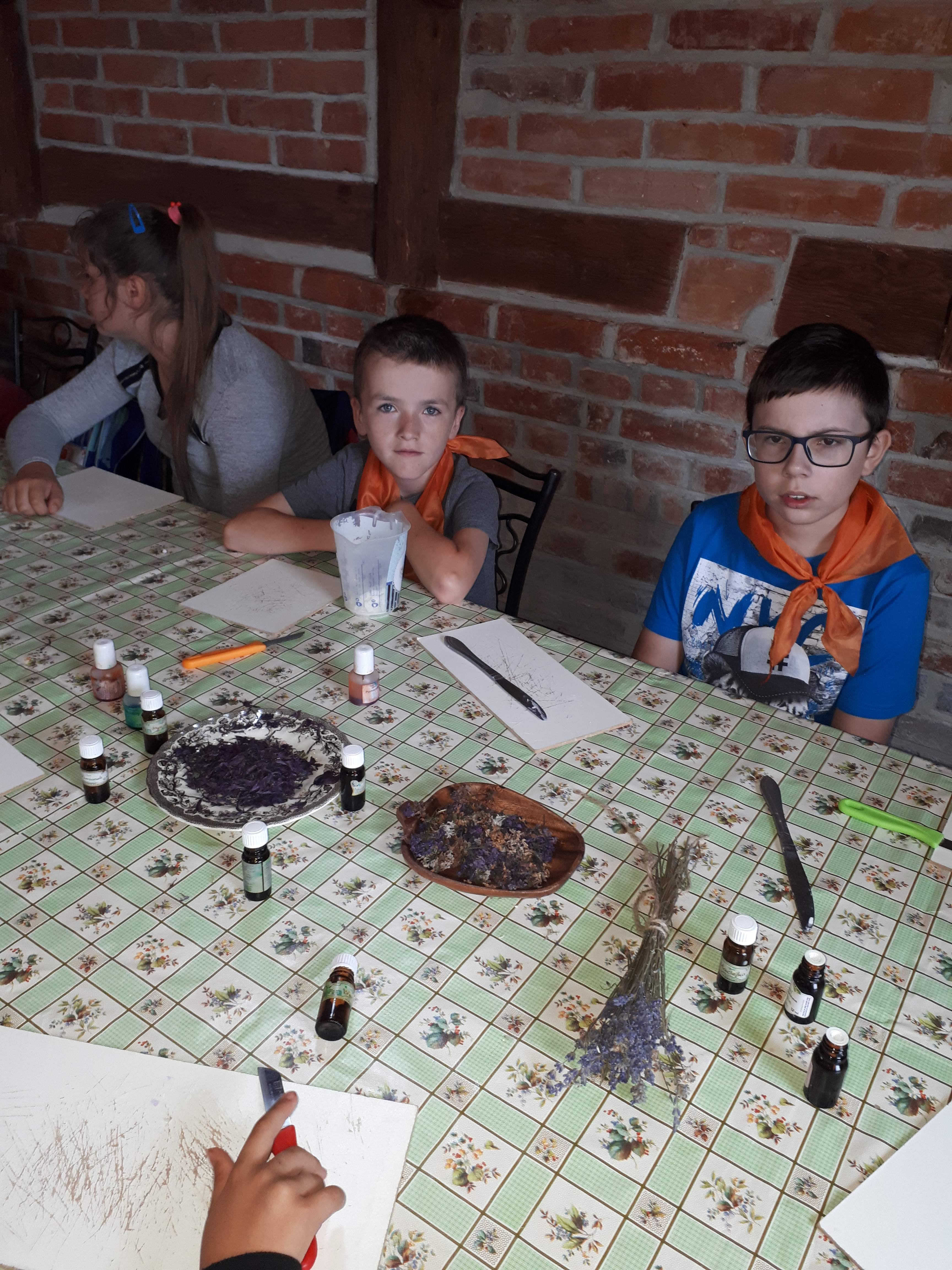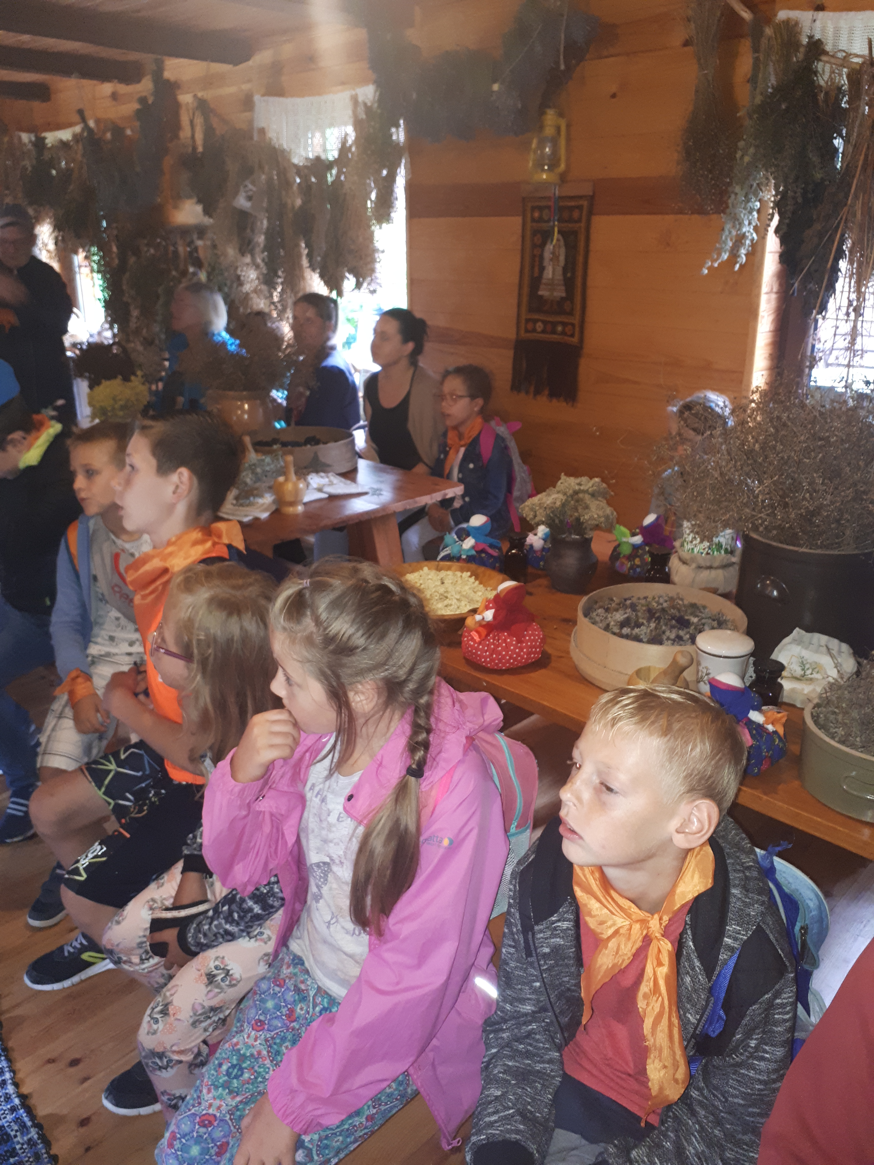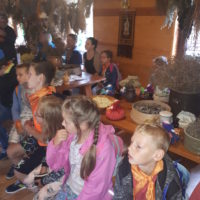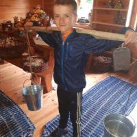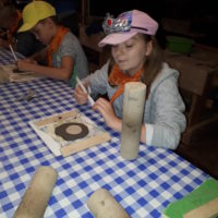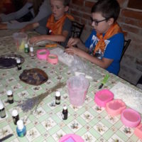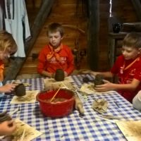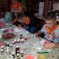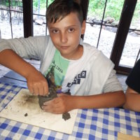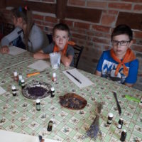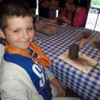 W drugim tygodniu półkolonijnych zmagań postanowiliśmy być bliżej natury. Kultywowaniu tradycji dawnych rzemiosł służyła wycieczka do Zagrody Edukacyjnej, gdzie wiata garncarska, chata zielarska, ogród ziołowy zachęcały, by sprawdzić się w roli garncarza, zielarza czy ogrodnika. Wielką frajdą okazało się dla wielu z nas operowanie tworzywem bezkształtnym- gliną, produkowanie ziołowych mydełek czy układanie florystycznych kompozycji ziołowo-kwiatowych. I, choć niektórym przychodziła na myśl chata Baby Jagi 🙁 , eksperymentującej wątpliwej zdrowotności herbatkami :), udział w zajęciach warsztatowych uświadomił specyfikę ginących zawodów, będąc cenną lekcją rękodzieła. Przysłowiową wisienką na torcie były odwiedziny w mini zoo. Tu czekały na nas zniecierpliwione kozy: Różyczka i Tofik w doborowym towarzystwie świnek, królików, kaczek i kucyka.