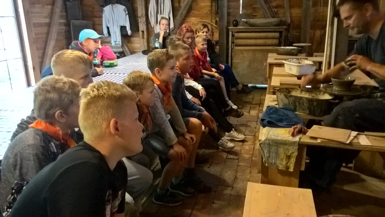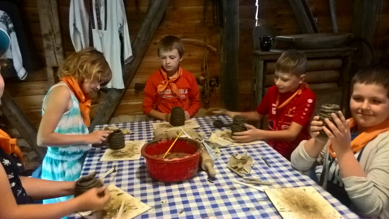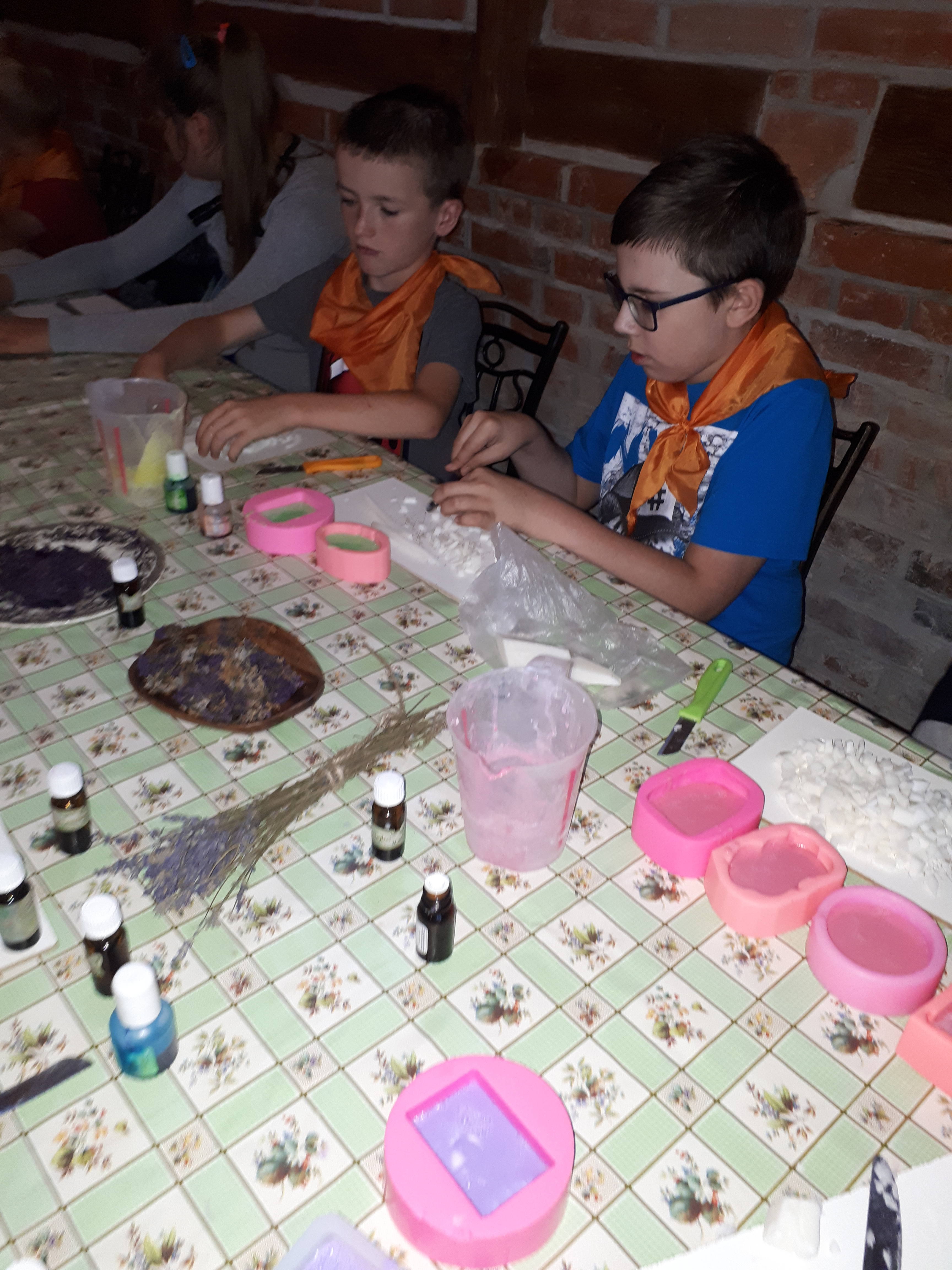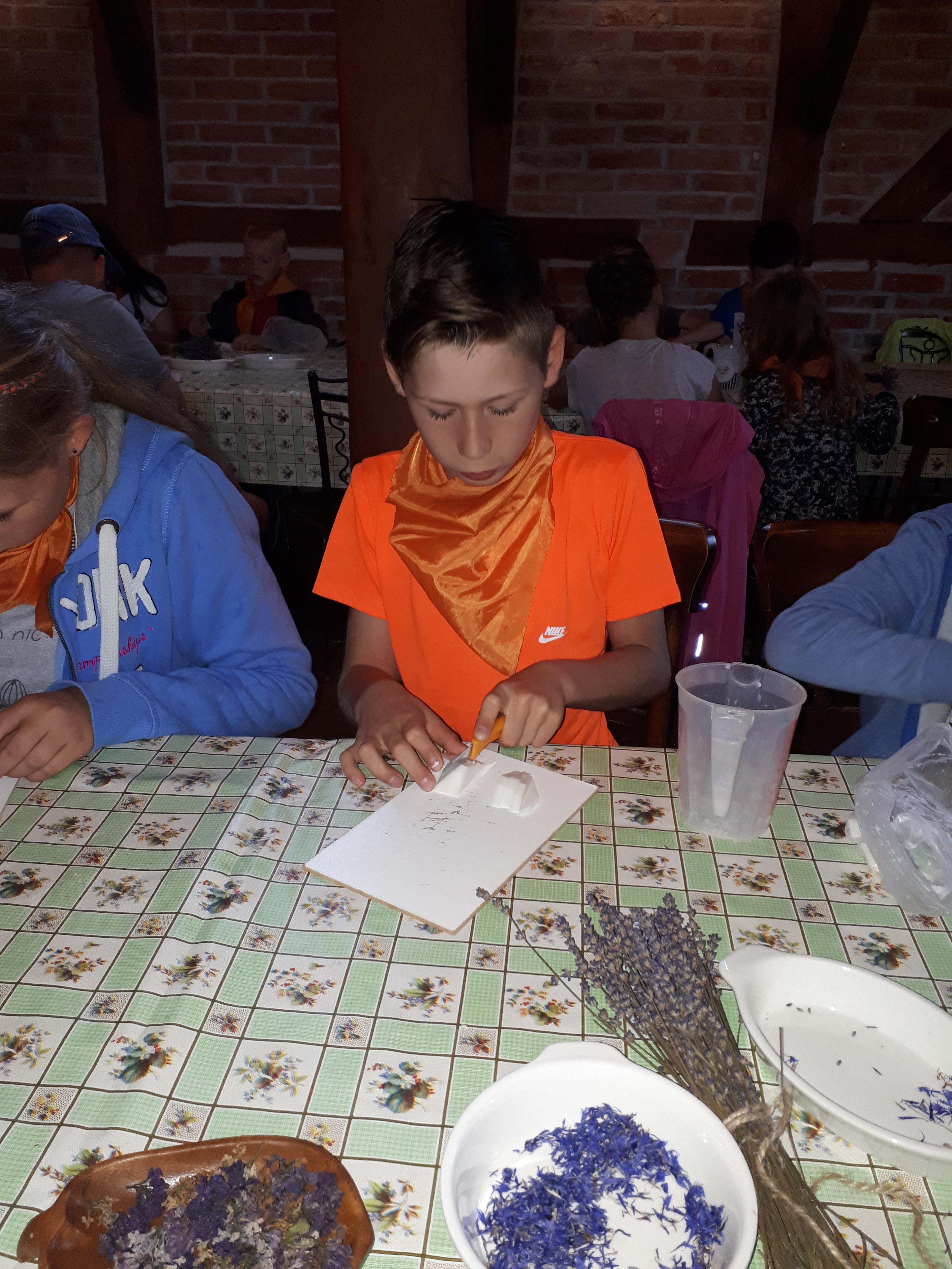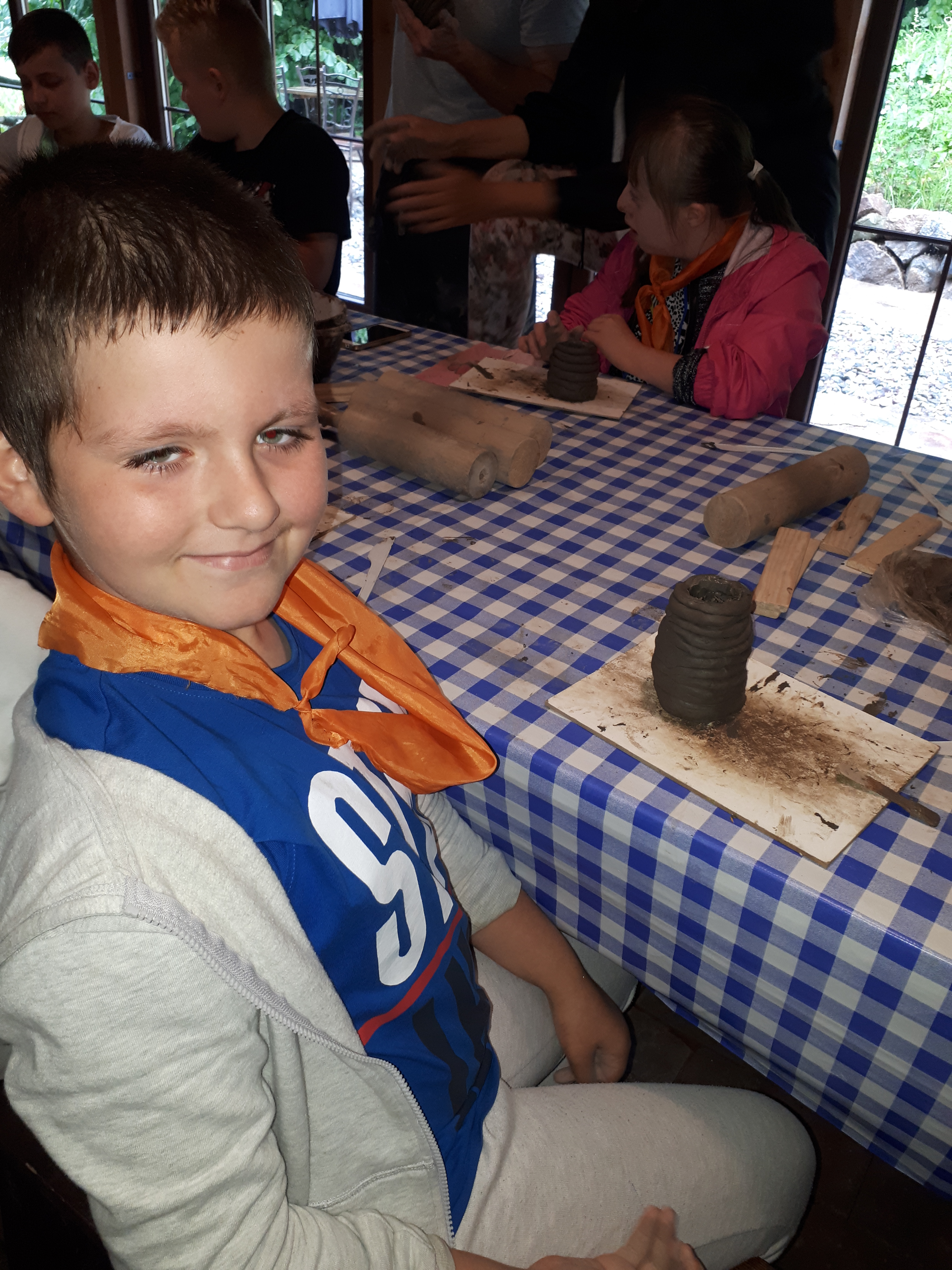 W drugim tygodniu półkolonijnych zmagań postanowiliśmy być bliżej natury. Kultywowaniu tradycji dawnych rzemiosł służyła wycieczka do Zagrody Edukacyjnej, gdzie wiata garncarska, chata zielarska, ogród ziołowy zachęcały, by sprawdzić się w roli garncarza, zielarza czy ogrodnika. Wielką frajdą okazało się dla wielu z nas operowanie tworzywem bezkształtnym- gliną, produkowanie ziołowych mydełek czy układanie florystycznych kompozycji ziołowo-kwiatowych. I, choć niektórym przychodziła na myśl chata Baby Jagi 🙁 , eksperymentującej wątpliwej zdrowotności herbatkami :), udział w zajęciach warsztatowych uświadomił specyfikę ginących zawodów, będąc cenną lekcją rękodzieła. Przysłowiową wisienką na torcie były odwiedziny w mini zoo. Tu czekały na nas zniecierpliwione kozy: Różyczka i Tofik w doborowym towarzystwie świnek, królików, kaczek i kucyka.