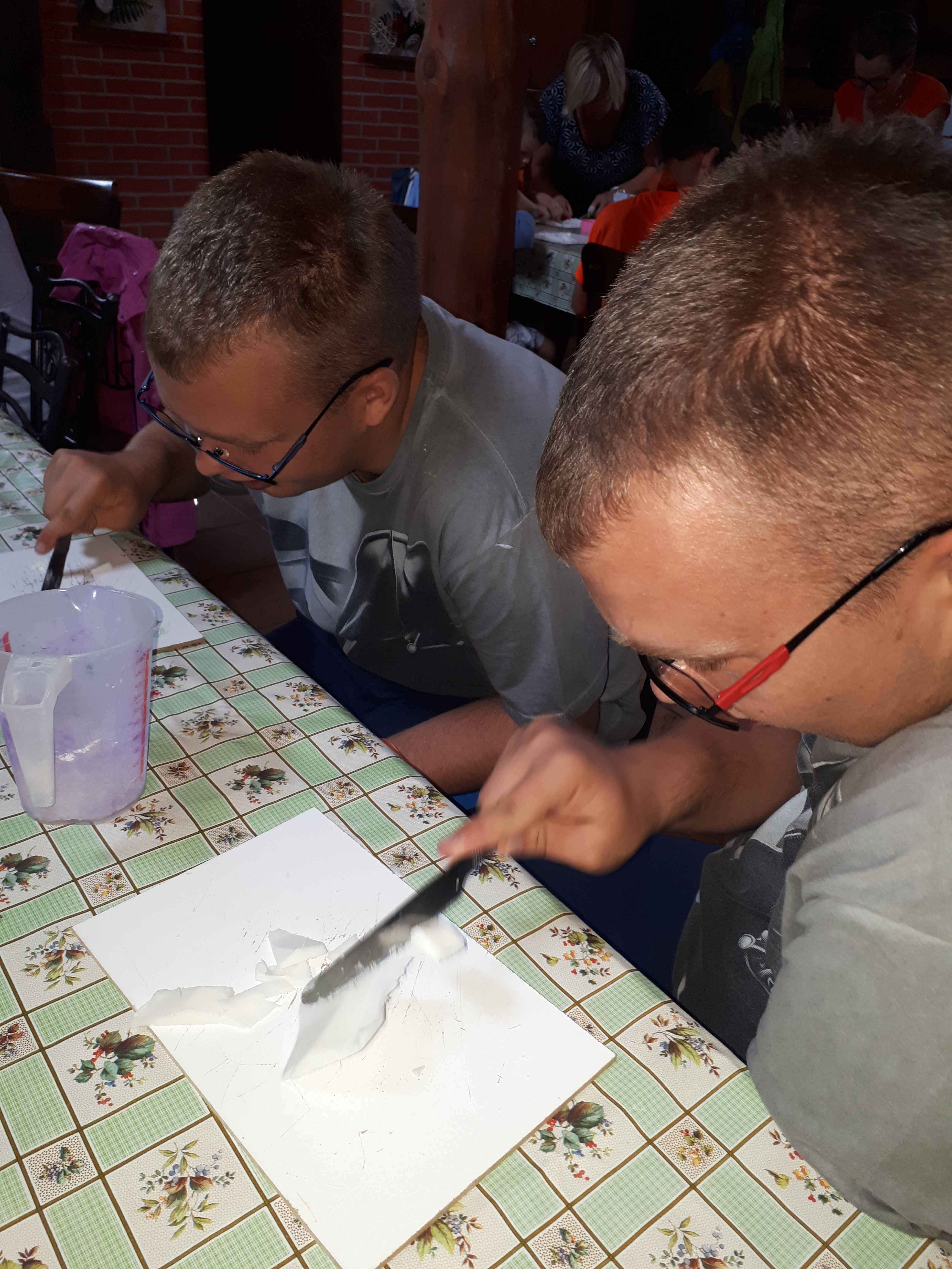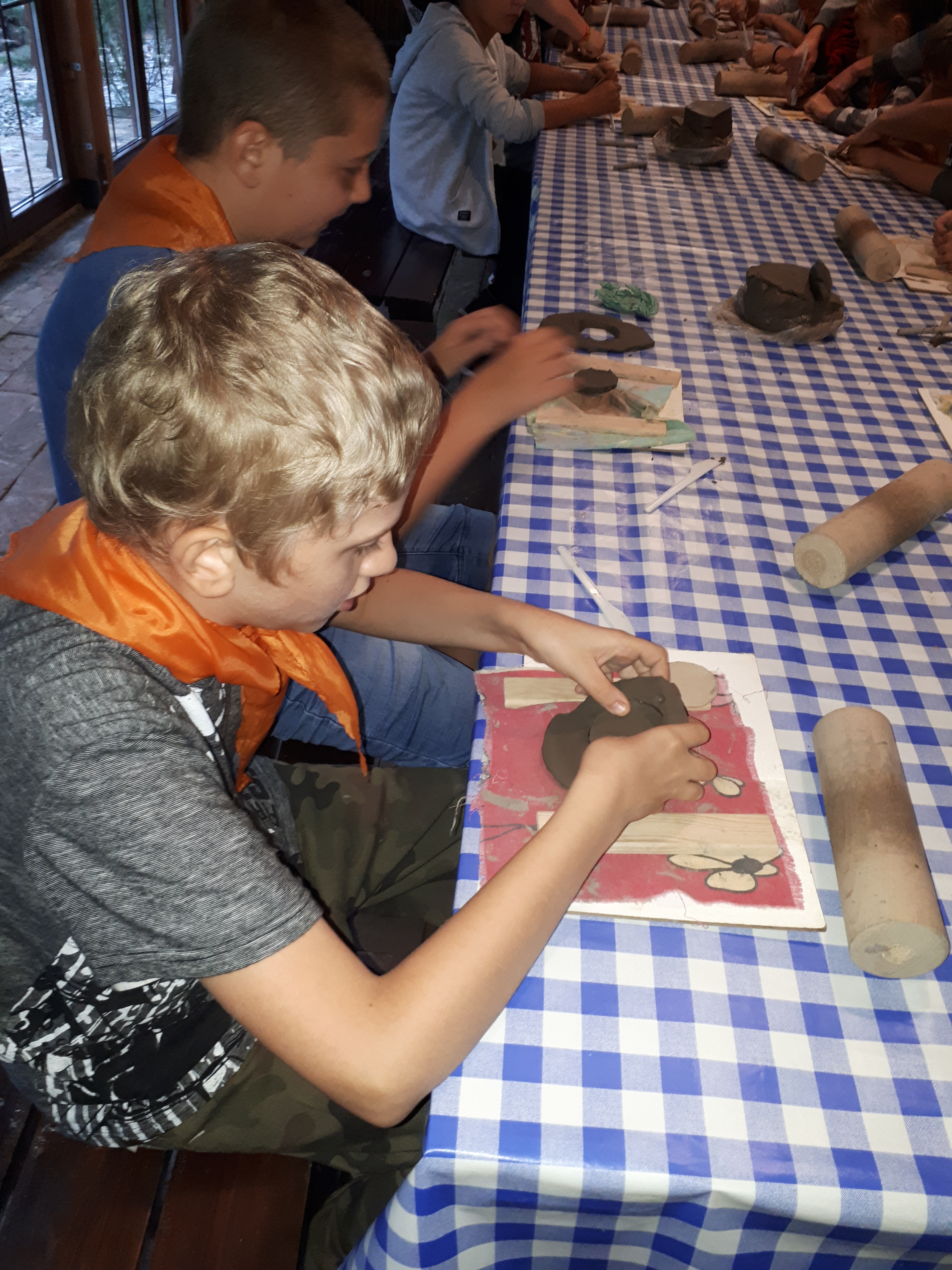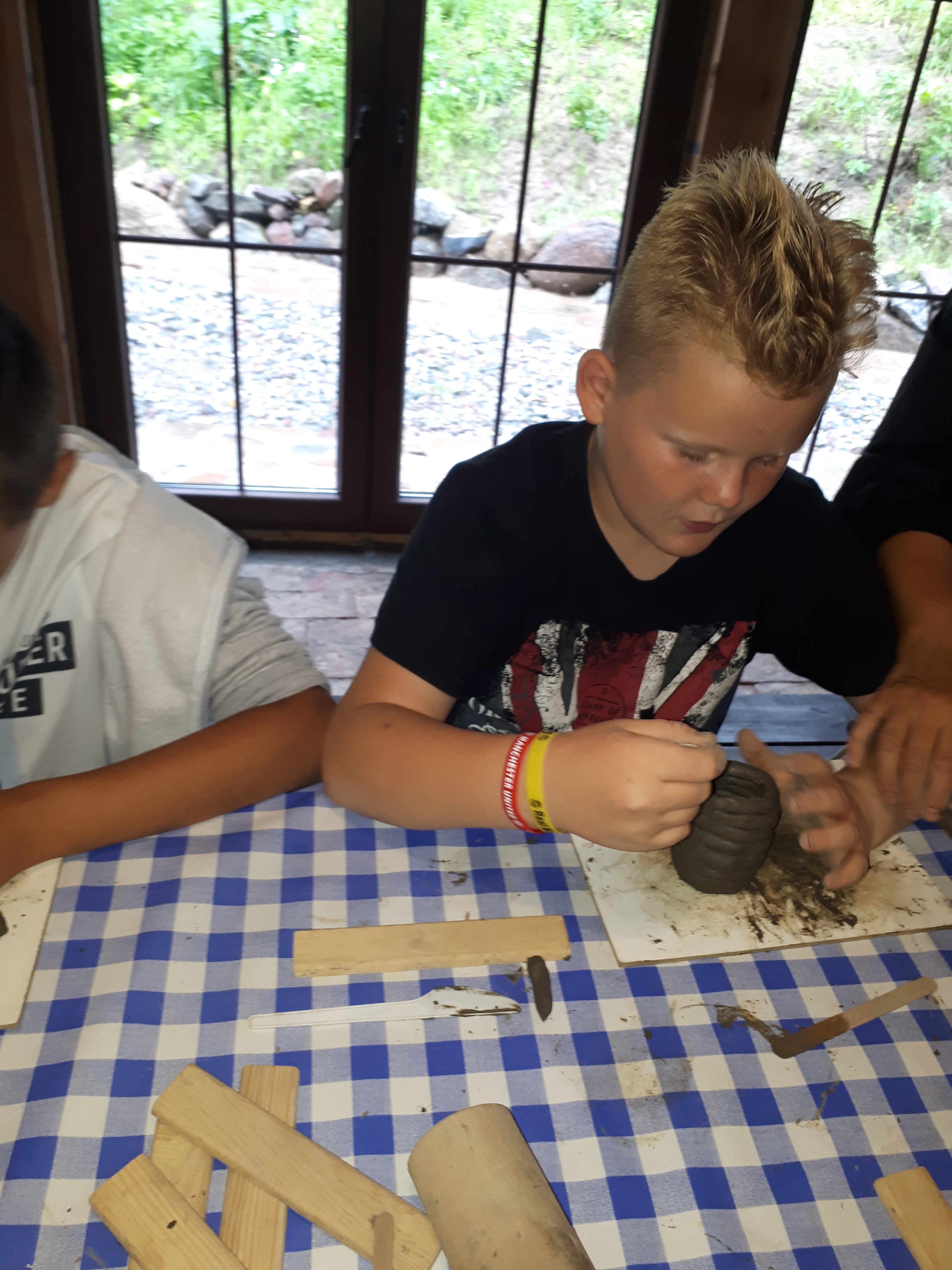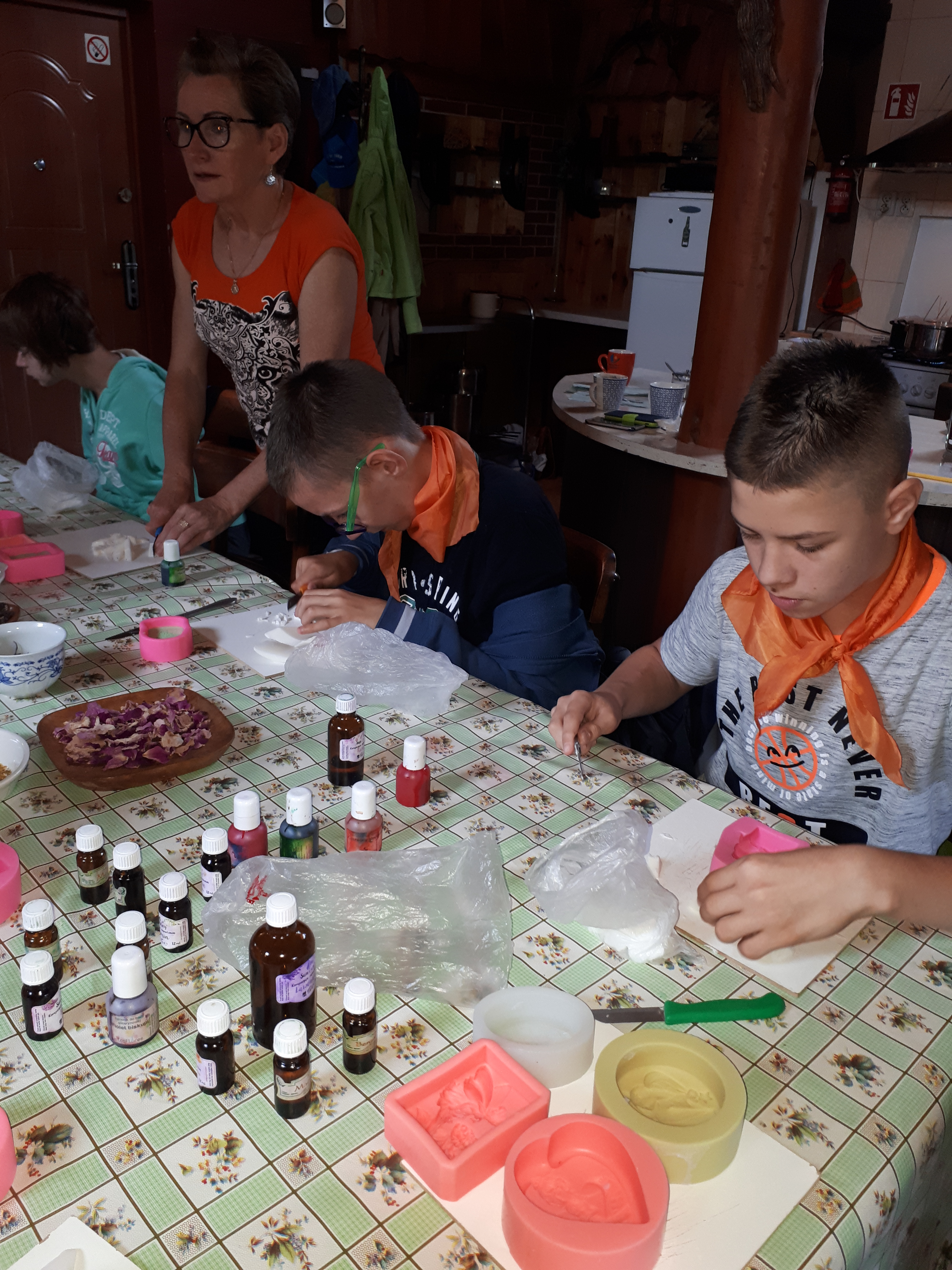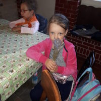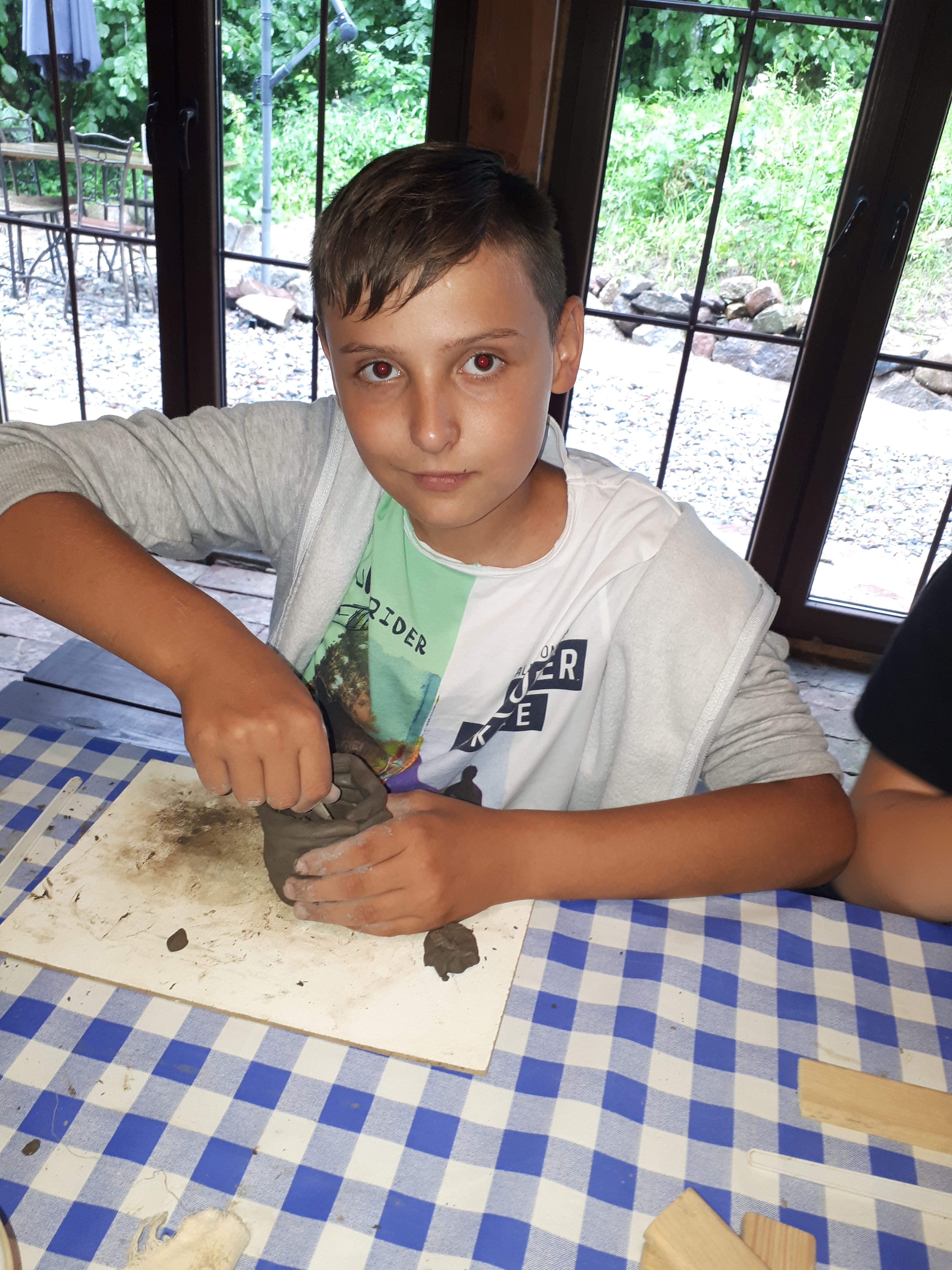 W drugim tygodniu półkolonijnych zmagań postanowiliśmy być bliżej natury. Kultywowaniu tradycji dawnych rzemiosł służyła wycieczka do Zagrody Edukacyjnej, gdzie wiata garncarska, chata zielarska, ogród ziołowy zachęcały, by sprawdzić się w roli garncarza, zielarza czy ogrodnika. Wielką frajdą okazało się dla wielu z nas operowanie tworzywem bezkształtnym- gliną, produkowanie ziołowych mydełek czy układanie florystycznych kompozycji ziołowo-kwiatowych. I, choć niektórym przychodziła na myśl chata Baby Jagi 🙁 , eksperymentującej wątpliwej zdrowotności herbatkami :), udział w zajęciach warsztatowych uświadomił specyfikę ginących zawodów, będąc cenną lekcją rękodzieła. Przysłowiową wisienką na torcie były odwiedziny w mini zoo. Tu czekały na nas zniecierpliwione kozy: Różyczka i Tofik w doborowym towarzystwie świnek, królików, kaczek i kucyka.