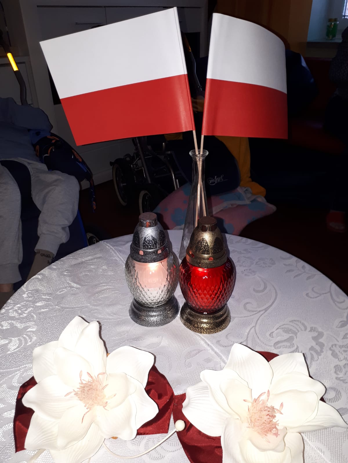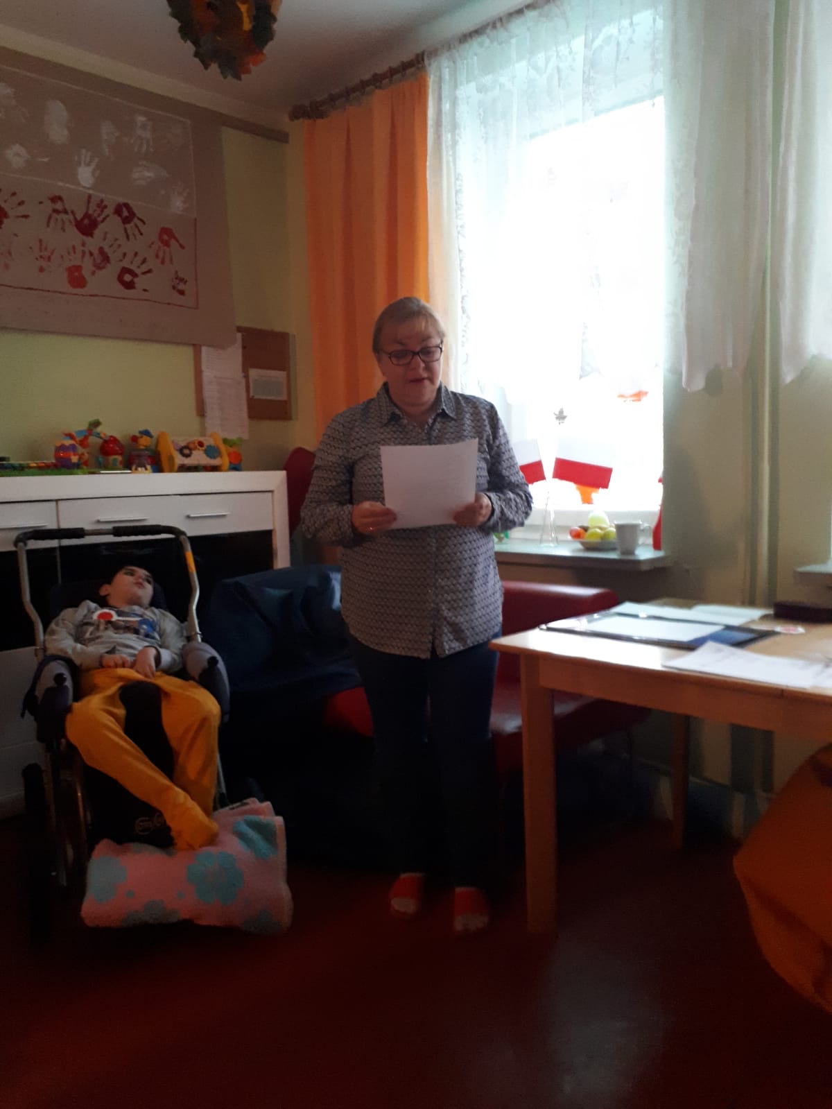 13 listopada 2018r obchodziliśmy w DPS 100. rocznicę odzyskania niepodległości przez Polskę. Została przygotowana okolicznościowa dekoracja klasy oraz montaż słowno-muzyczny. Nauczyciele recytowali wiersze i śpiewali pieśni patriotyczne. Wszyscy oglądali zdjęcia dawnego i współczesnego Elbląga. Uroczystość zakończyła się wspólnym poczęstunkiem.