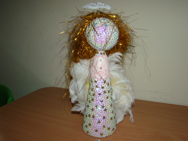 I miejsce – Błażej S. z mamą (z grupy „Walecznych Pszczółek”) wykonali anioła z cekinów na styropianowym stożku,