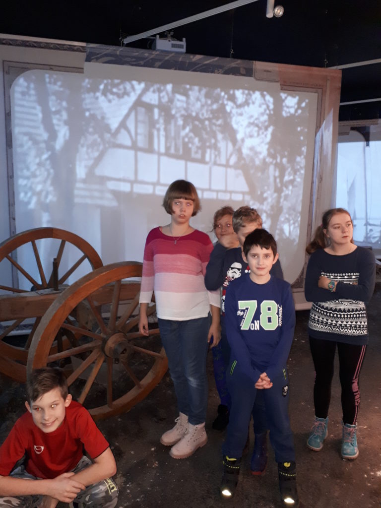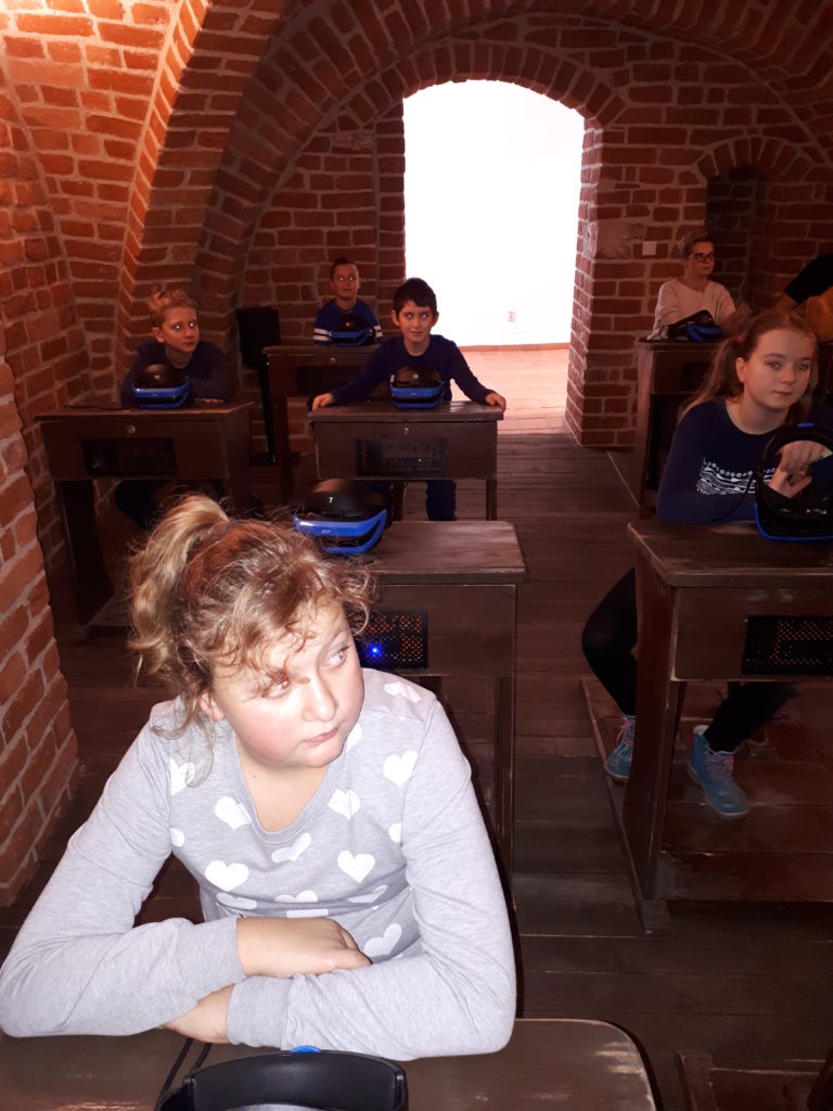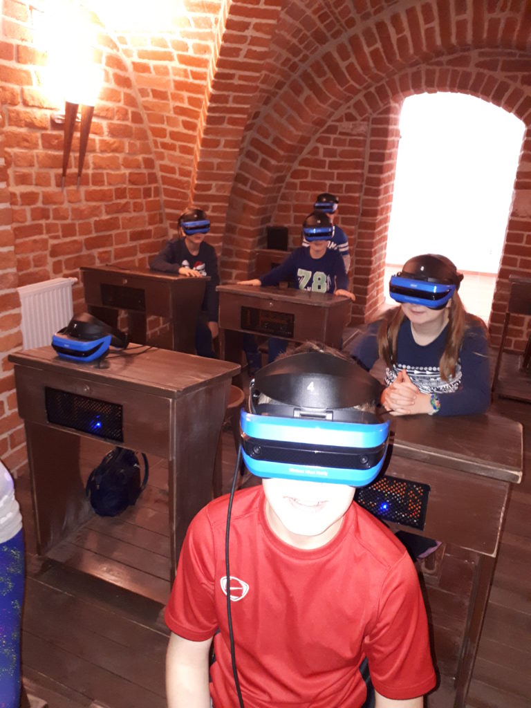 „Wirtualna rzeczywistość- tu i teraz”, to była prawdziwa rewelacja! Idąc z duchem postępu technologicznego, uczniowie klas: IV b, IV/V c oraz VI c SP odbyli wirtualną podróż w czasie i przestrzeni, doświadczając, jak muzeum wkracza w XXI wiek. A wszystko to za sprawą czterech niezwykłych aplikacji, za pomocą których ujrzeliśmy zeskanowane zabytki przedwojennej elbląskiej Starówki. Mało tego, zasiadając przed drewnianym pulpitem dawnej klasy, zakładając gogle, przenieśliśmy się do świata,rodem z czasów Harrego Pottera. Przejazd ulicami za pomocą auta Komnicka przybliżył architekturę rodzimego miasta, zajęcia  i stroje dawnych mieszkańców. Niezwykle emocjonująca okazała się też wizyta w wirtualnej osadzie „Truso”, ale o tym przekonacie się sami, przekraczając próg elbląskiego muzeum…